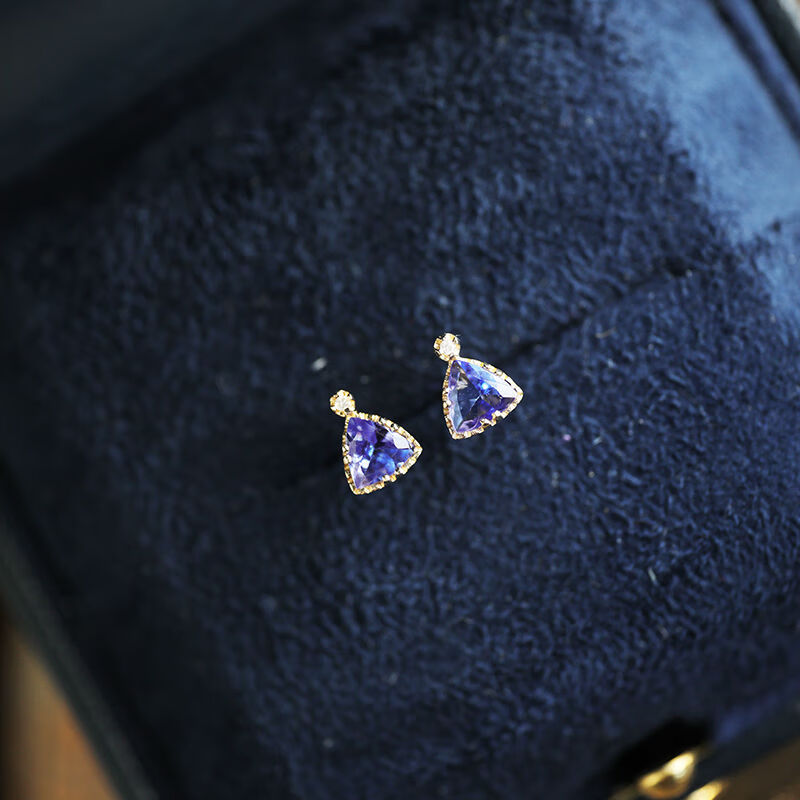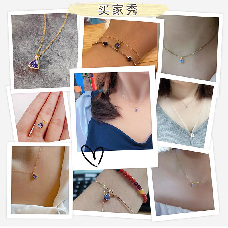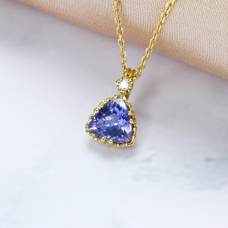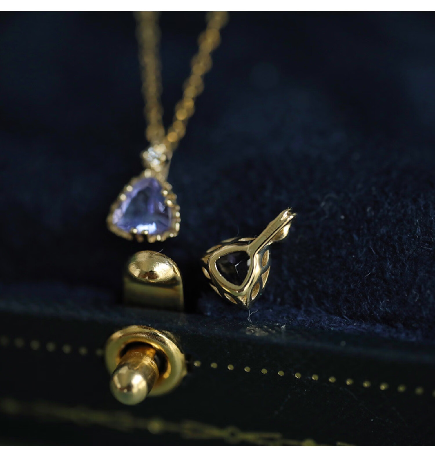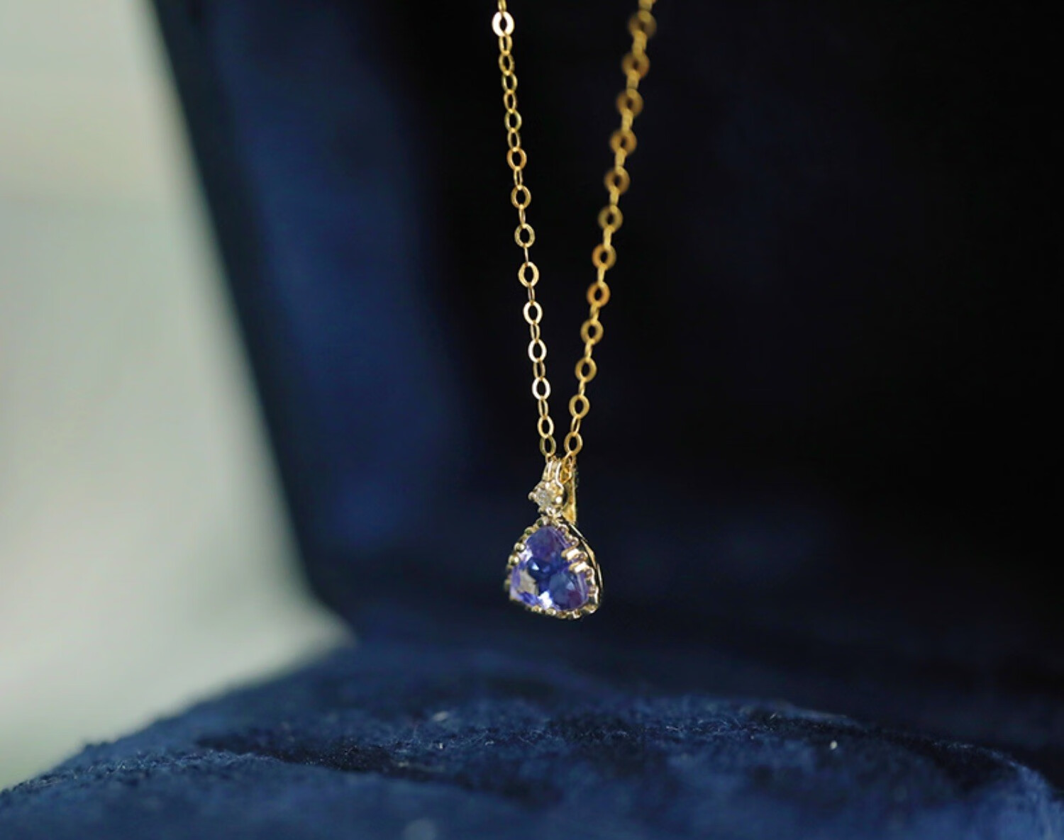 Rui Luo tanzanite triangle necklace women's diamond inlaid jewelry Japanese simple pendant + chain