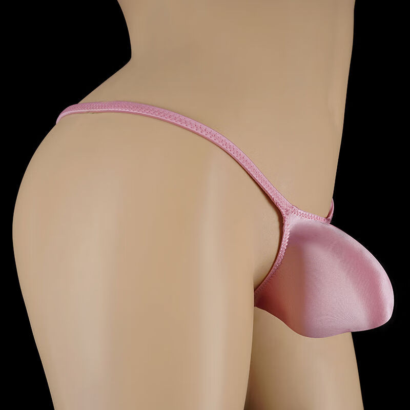 Men's thong with bulging bags, tight and sexy T-pants, low-waisted underwear, glossy, silky and pure lust men's underwear, pearlescent white M M