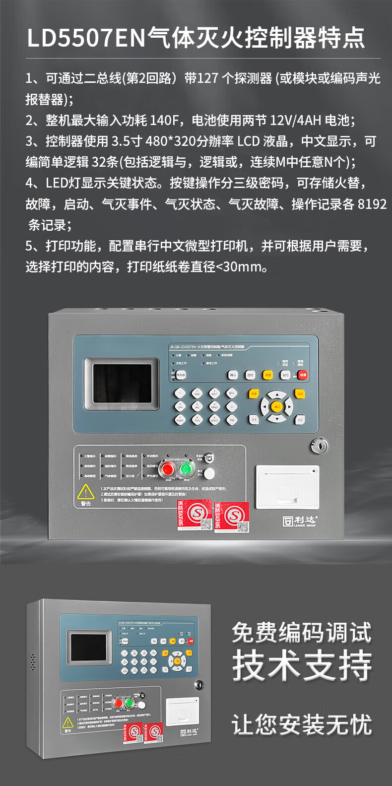Beijing Lida Huaxin wall-mounted JB-QB-LD5507EN fire alarm controller gas fire extinguishing controller LD5507EN (including backup power)