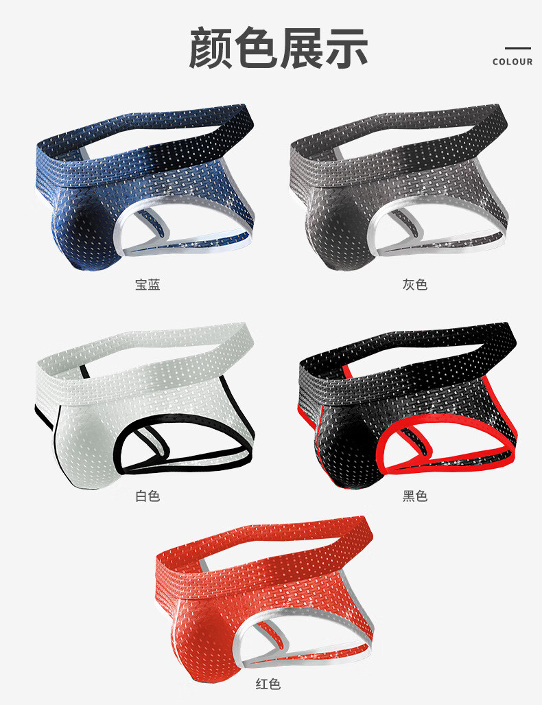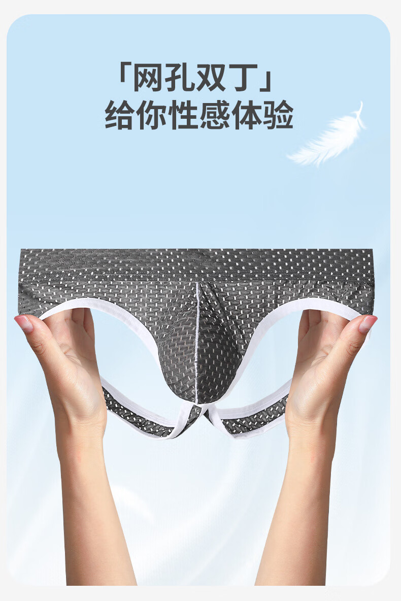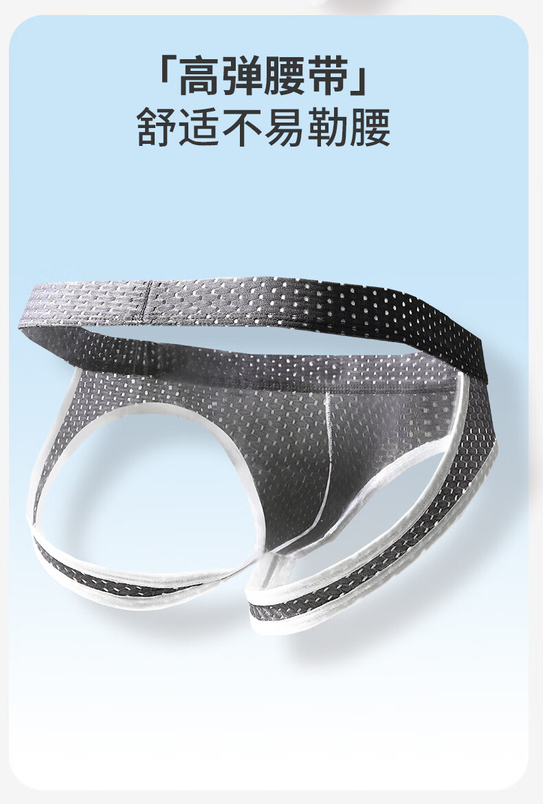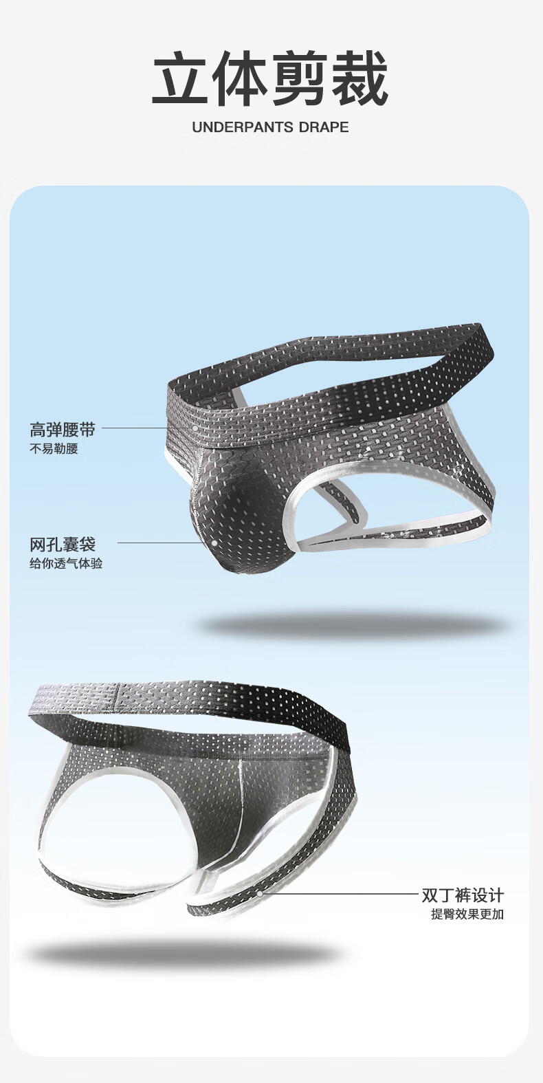 Austrian element hollow double-butt underwear men's low-waist ice silk T-pants elastic tight sexy pants comfortable thong men's black L