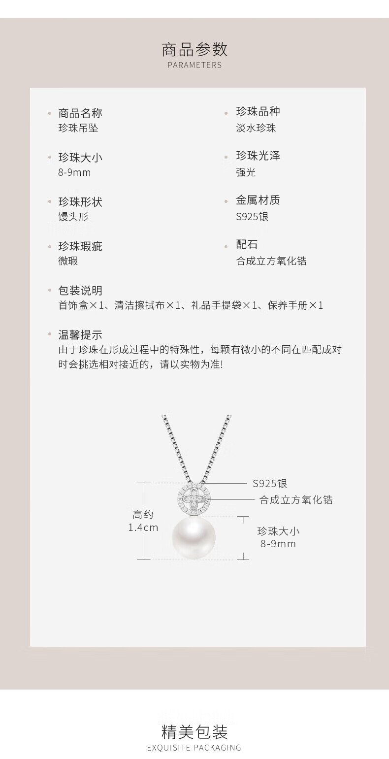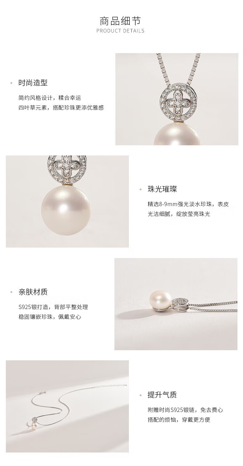 Nimolai Yanyu 925 silver freshwater pearl pendant 8-9mm white steamed bun-shaped simple fashion jewelry for girlfriend 8-9mm free S925 silver chain
