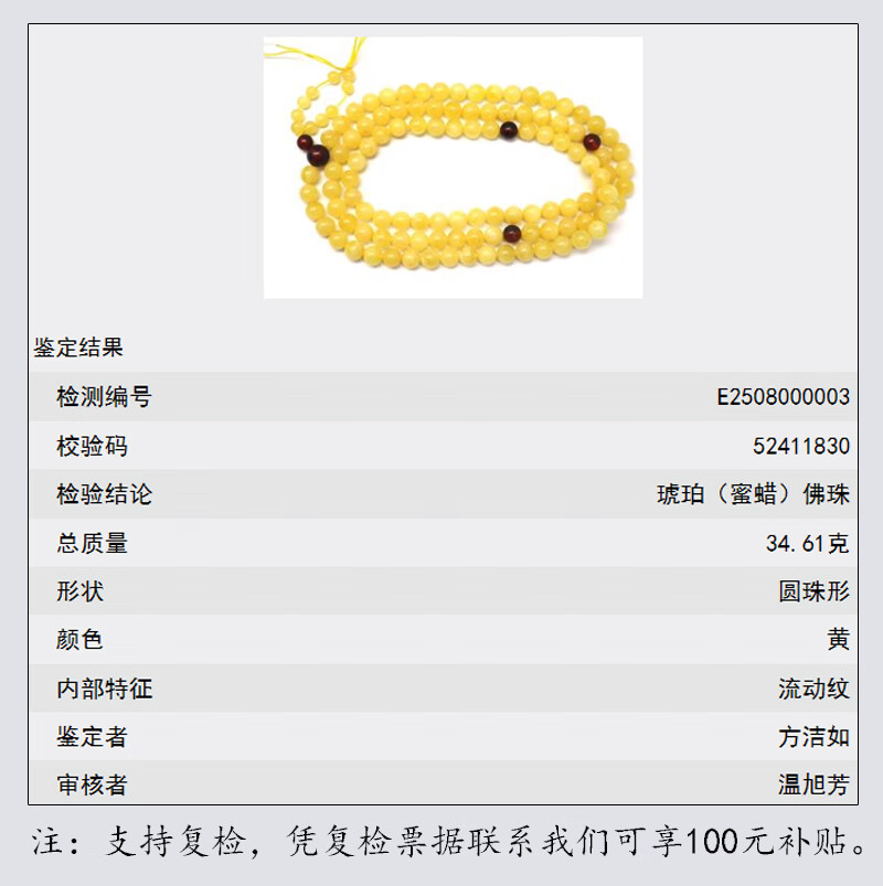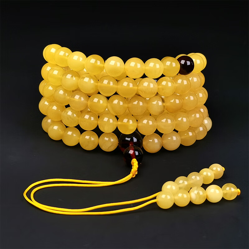 Amber style, one thing, one picture, one certificate, beeswax beads string, 108 pieces, natural amber bracelet, prayer beads, rosary, no cracks, beads string, 34.61g, 8mm