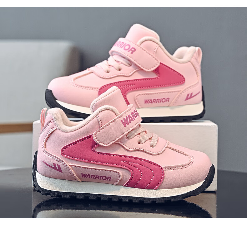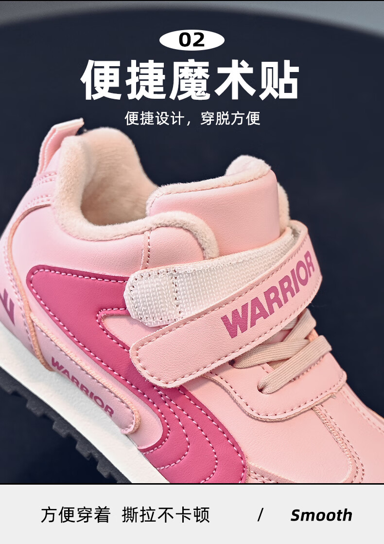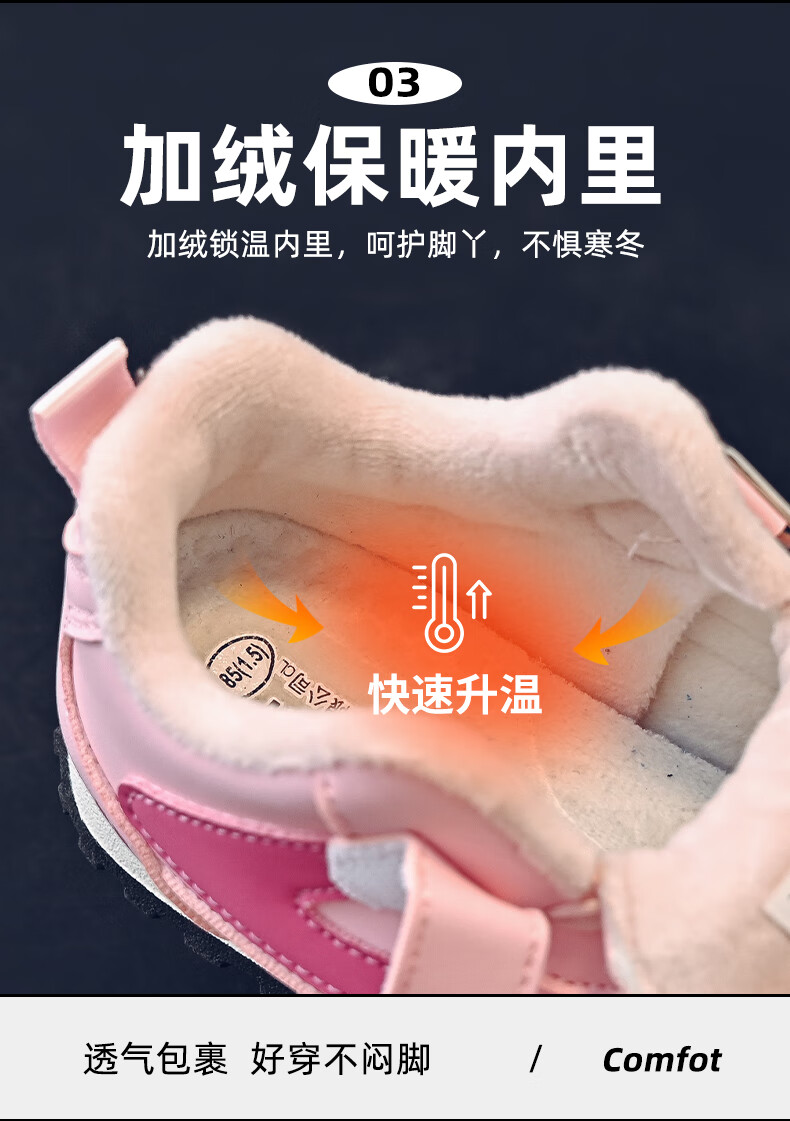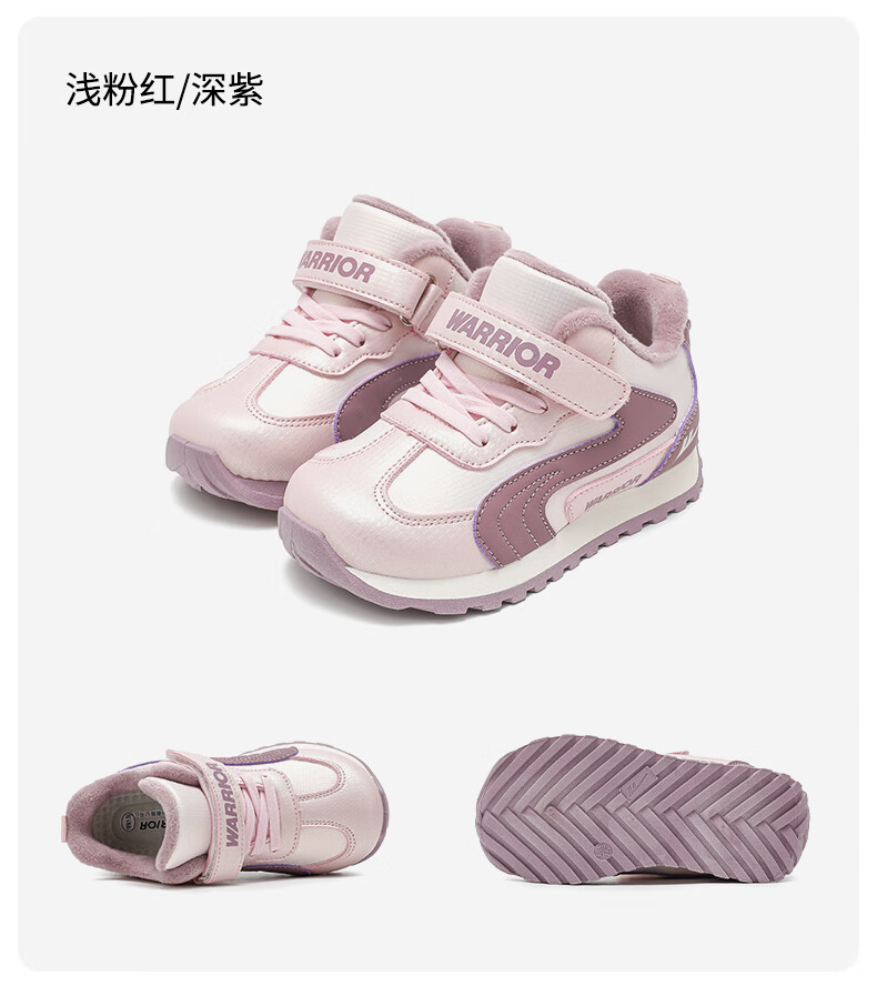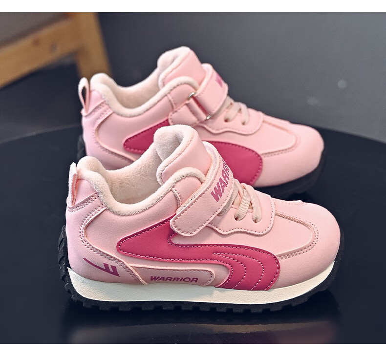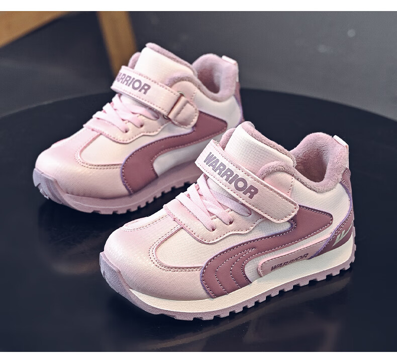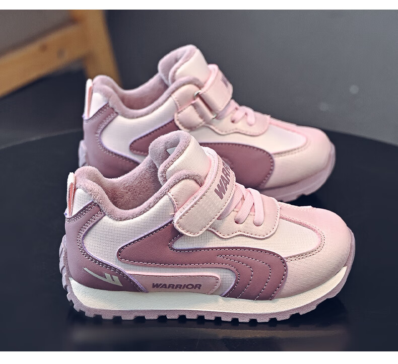 Pull-back children's shoes, girls' cotton shoes, children's shoes, autumn and winter 2026 new winter velvet elementary school children's sports shoes, light pink/dark purple 32, inner length 20.7/foot length 19.7