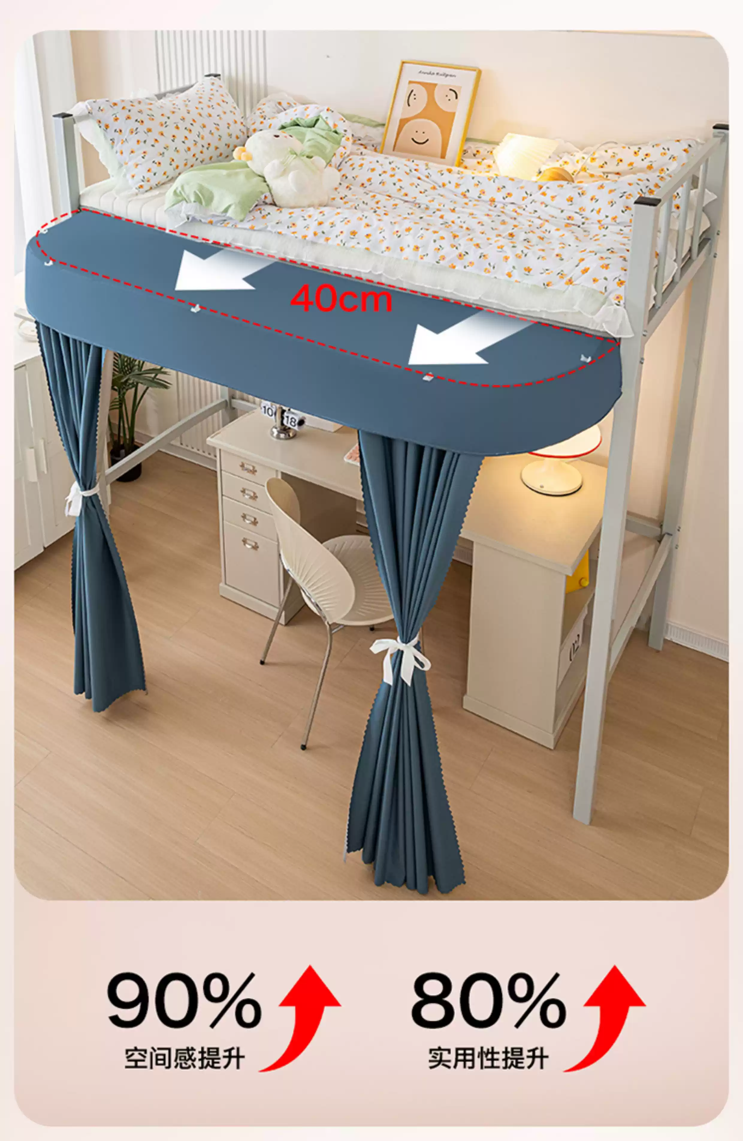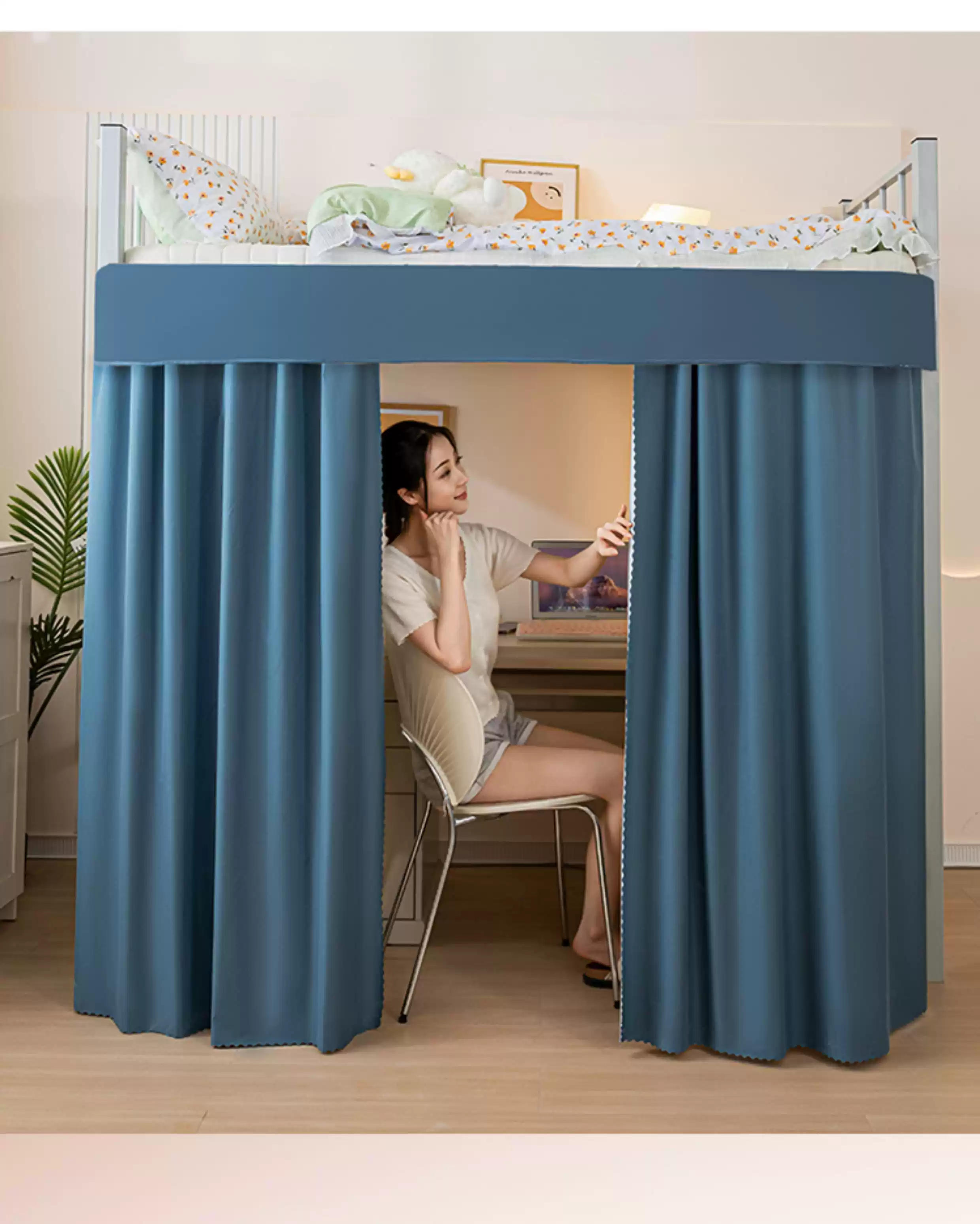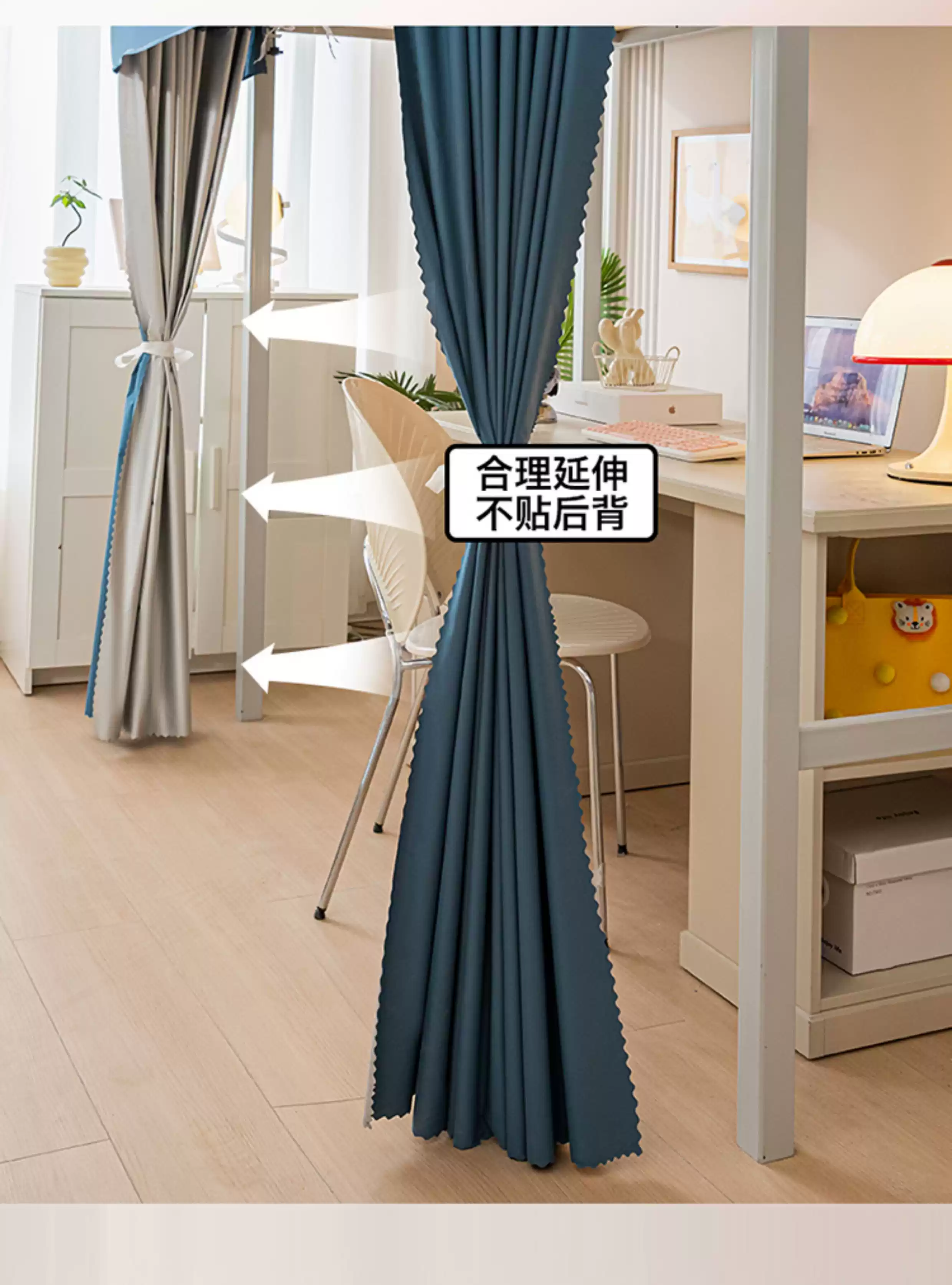 Wing Fantasy's new student dormitory type extended table curtain blackout bed curtain for lower bunk dormitory special bed and table blocking curtain blue 2 two-piece curtain + one top length 140*width 30*height 160cm without support rod
