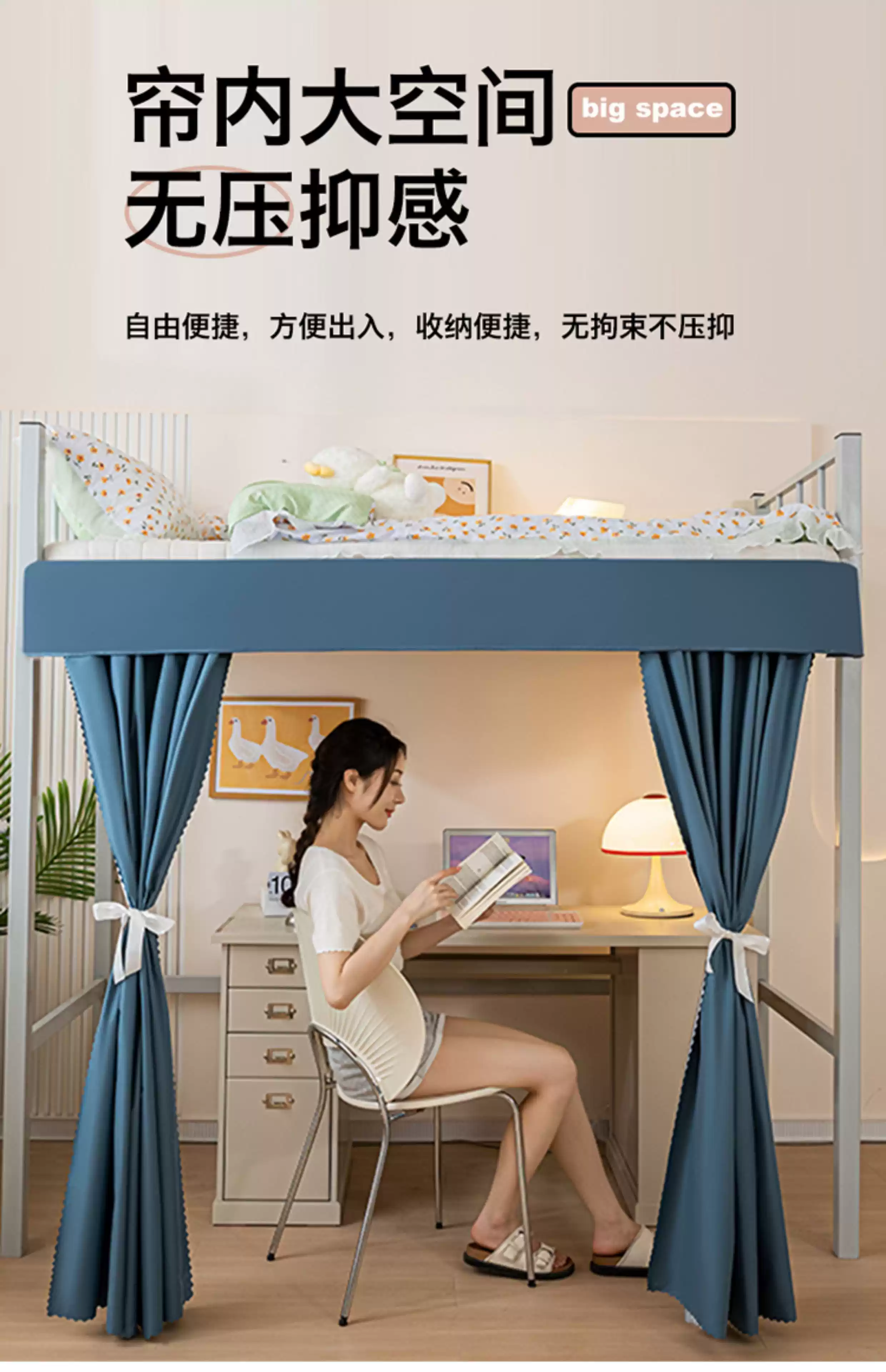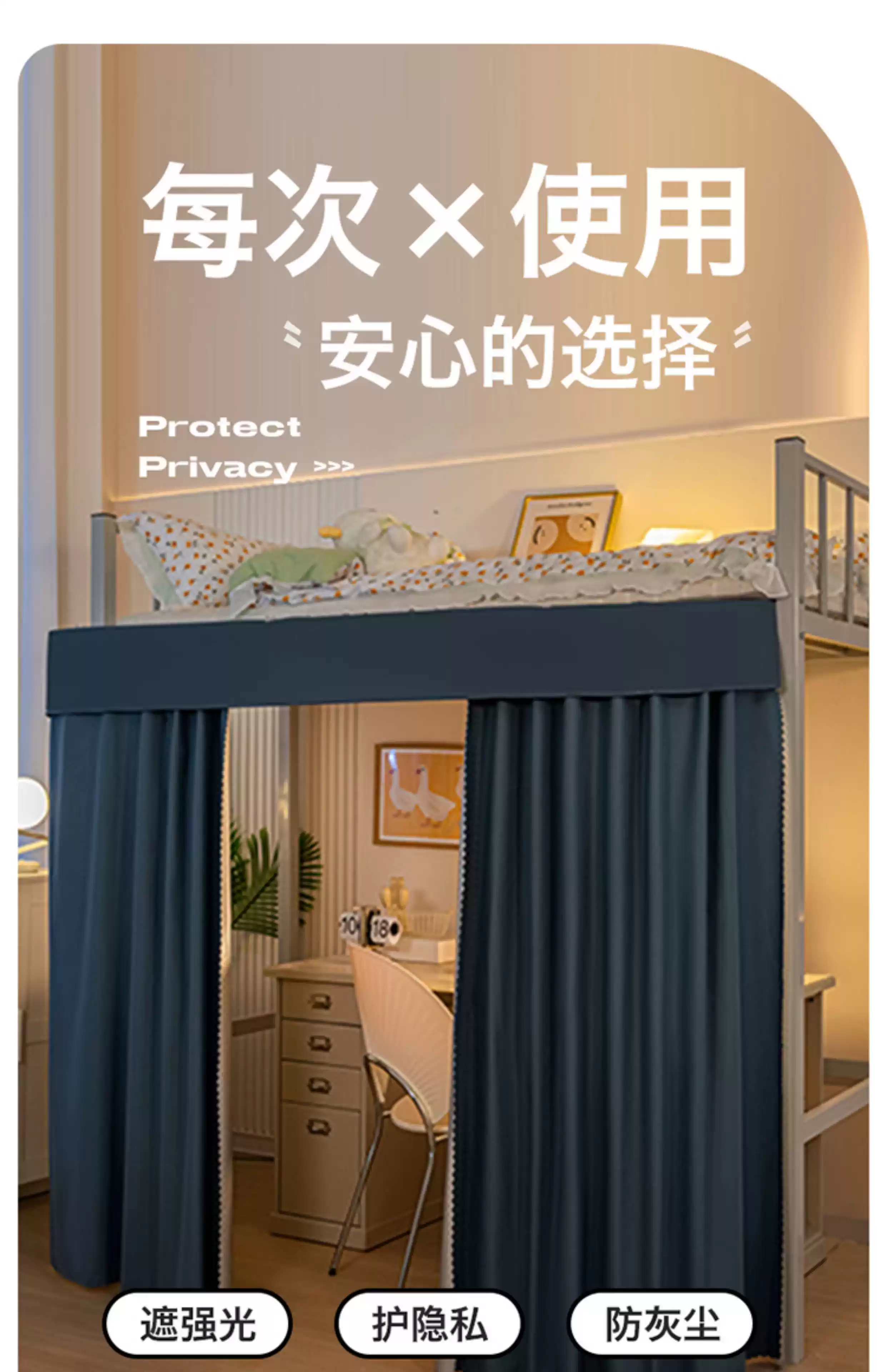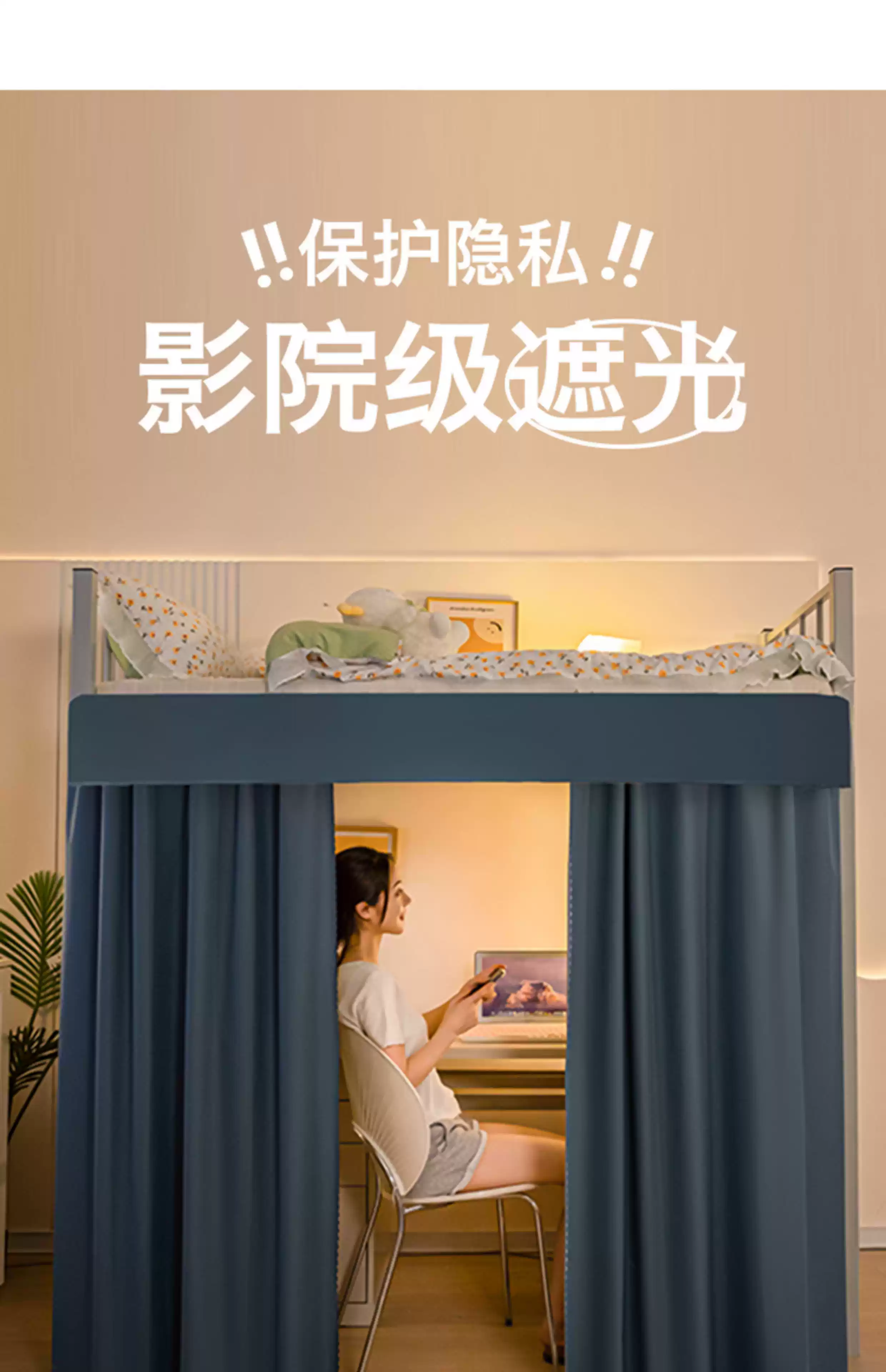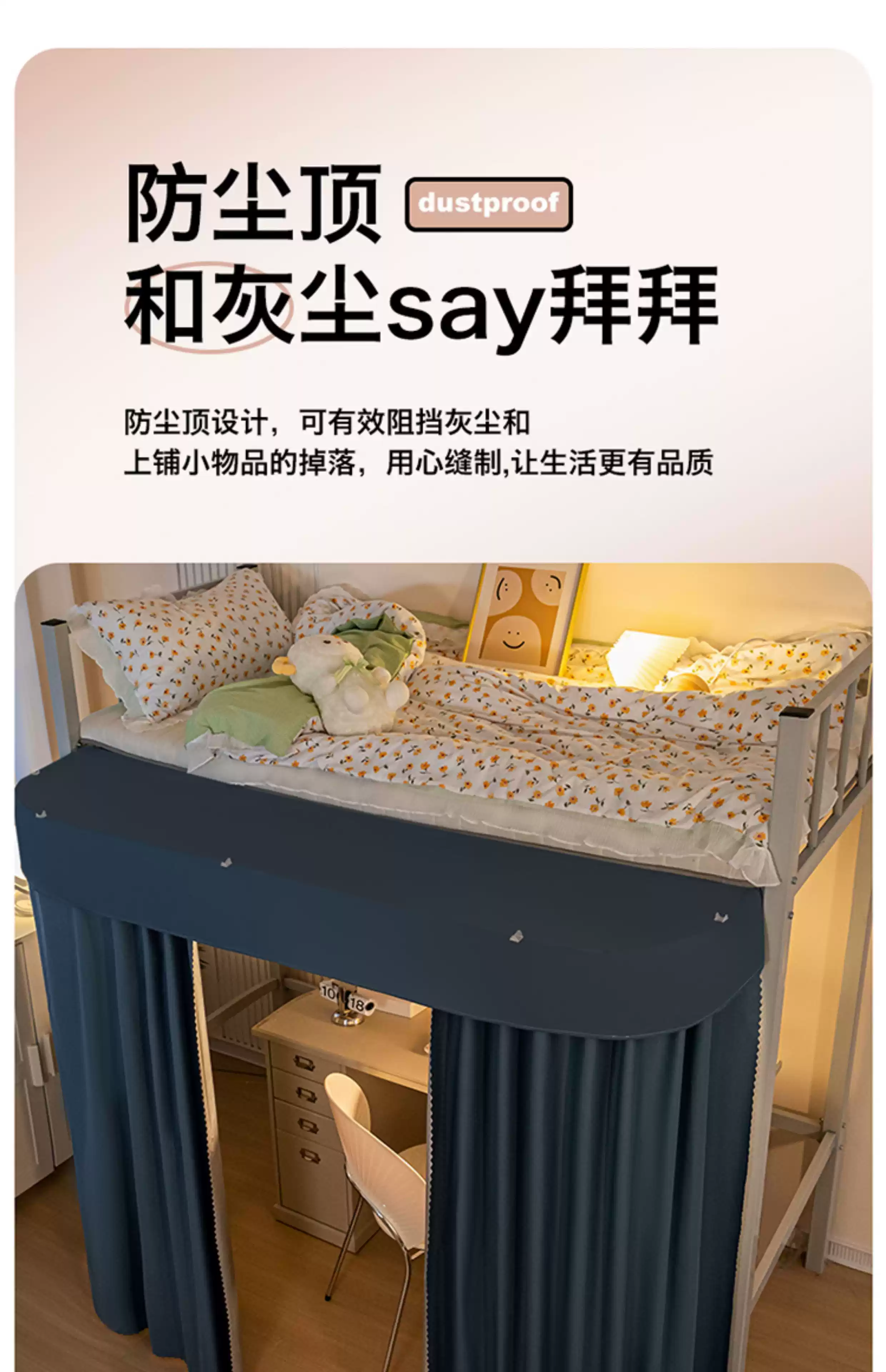 Wing Fantasy's new student dormitory type extended table curtain blackout bed curtain for lower bunk dormitory special bed and table blocking curtain blue 2 two-piece curtain + one top length 140*width 30*height 160cm without support rod