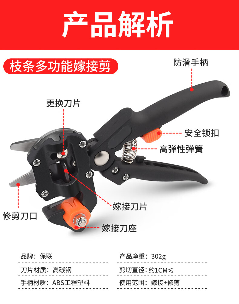 Baolian grafting knife multi-functional two-in-one bud grafting artifact seedlings and fruit tree grafting tools pruning grafting machine scissors grafting shears jammed