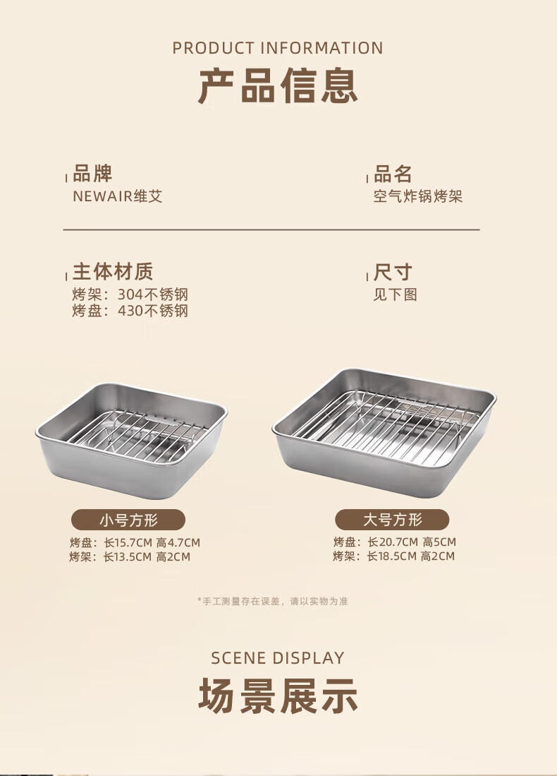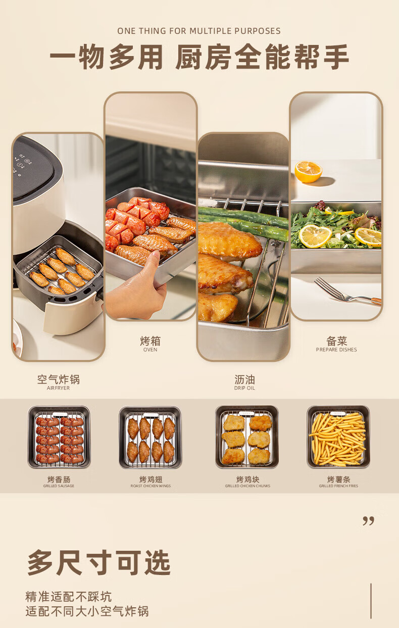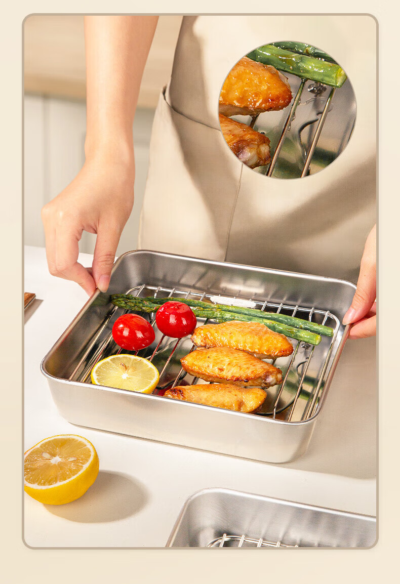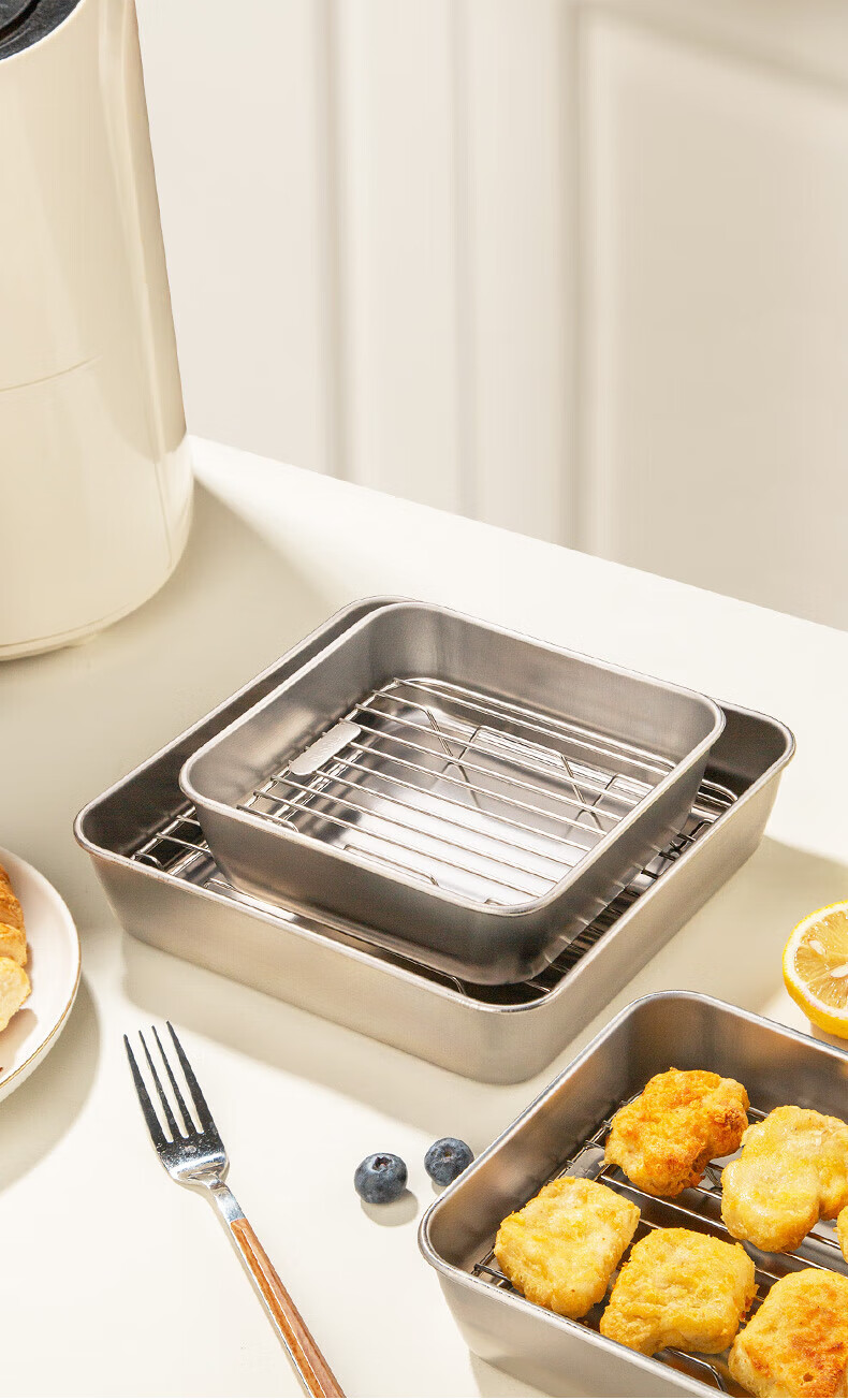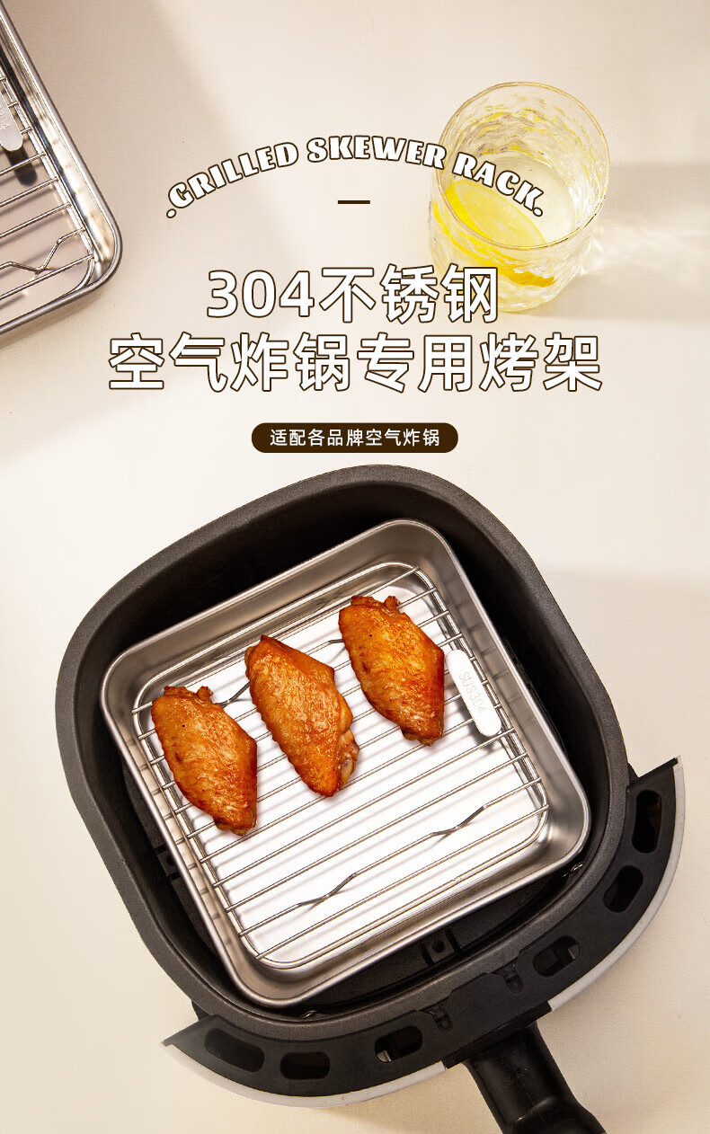 Newair (Newair) 304 stainless steel air fryer special barbecue grill barbecue grill layered drain bracket accessories square grill + grill pan suitable for fryers above 8L No Specifications
