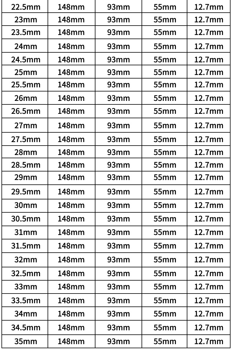 76.2 81.3 86.4 91.5 96.5 101.6 106.7 112 117 122 127 132 137 142