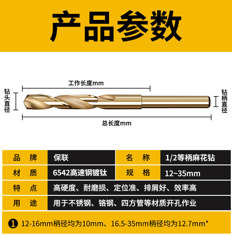 Baolian 1/2 small handle equal handle twist drill bit 6542 high-speed mesh stainless steel metal woodworking cobalt-containing drill drilling reamer 6542 high hardness 29.5mm