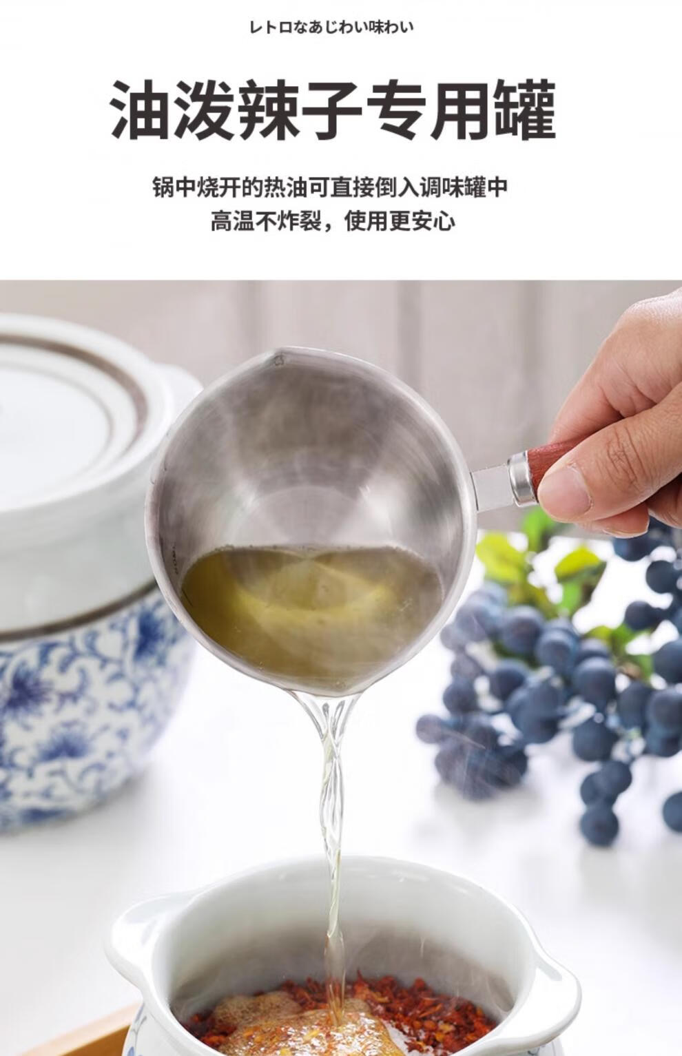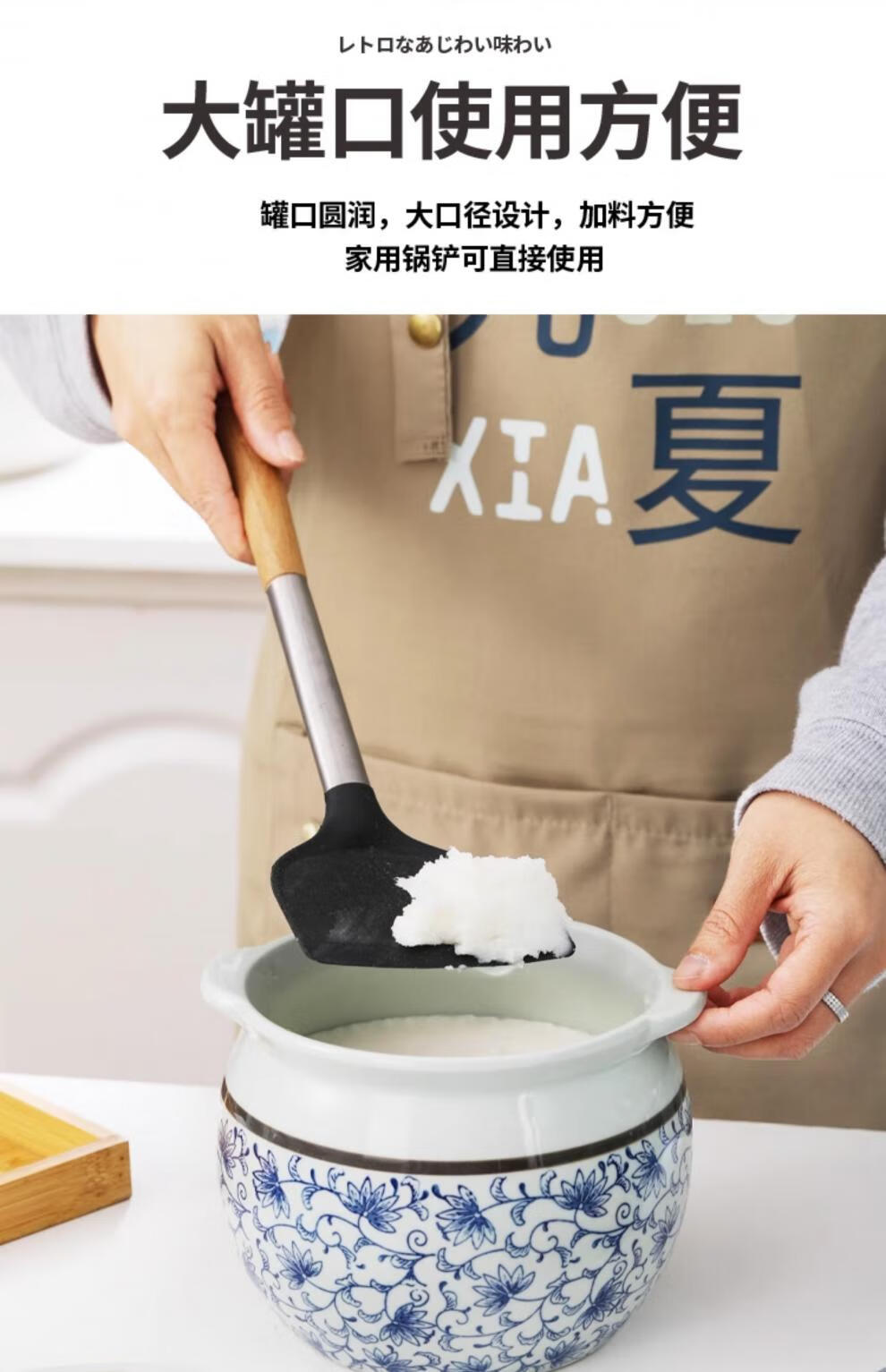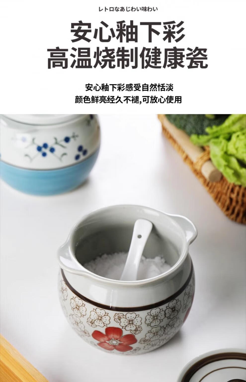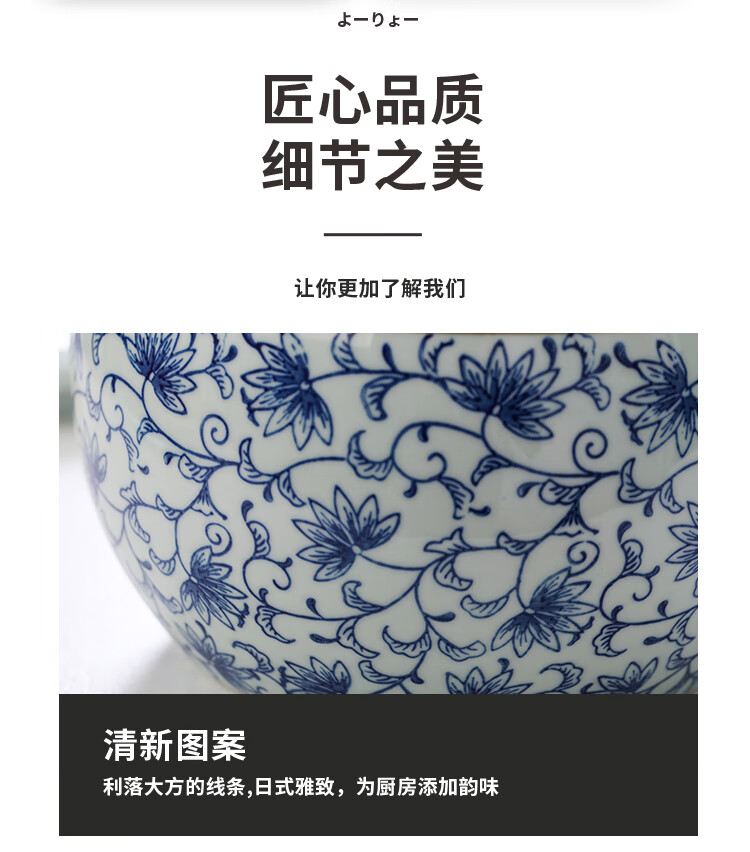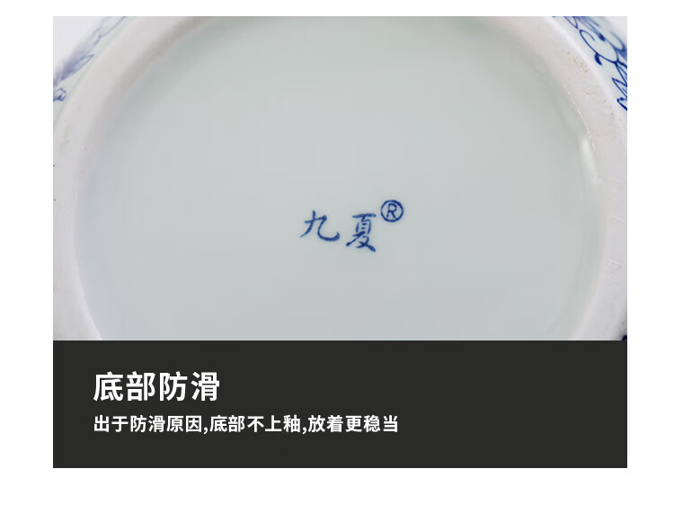 Jiuxia lard jar ceramic non-porous high temperature resistant kitchen household chili jar old-fashioned oil jar sealed salt jar chili jar non-porous double ears blue and white 1800ml