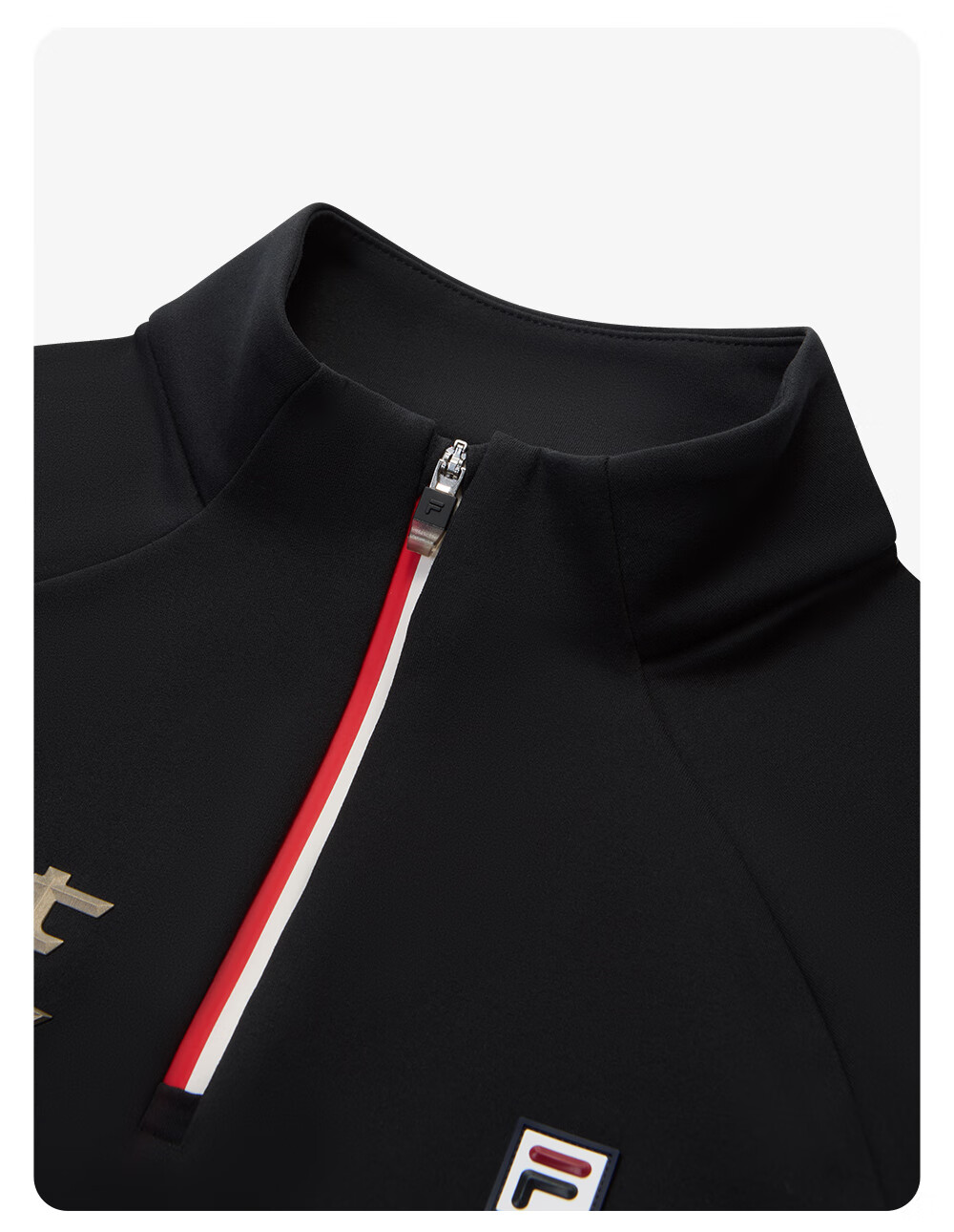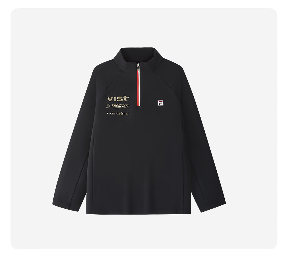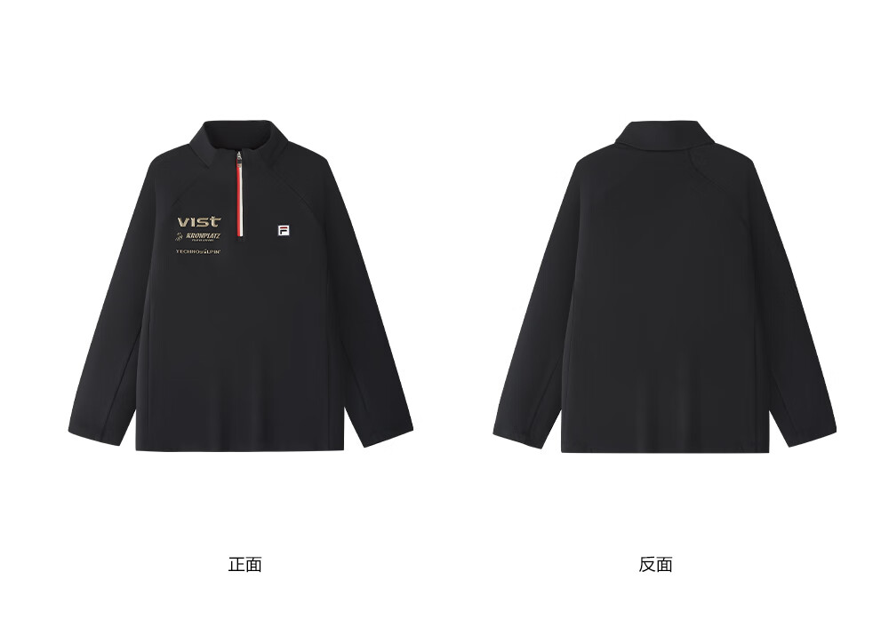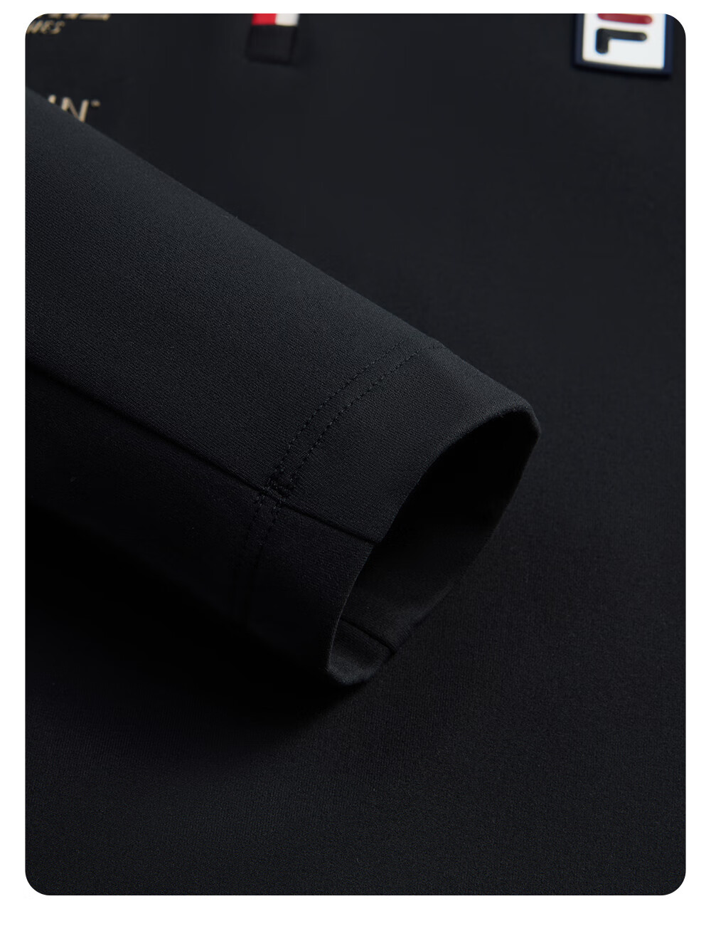 FILA children's clothing tops 2025 winter new style boys' plus velvet long-sleeved T-shirt dark black-BK 175