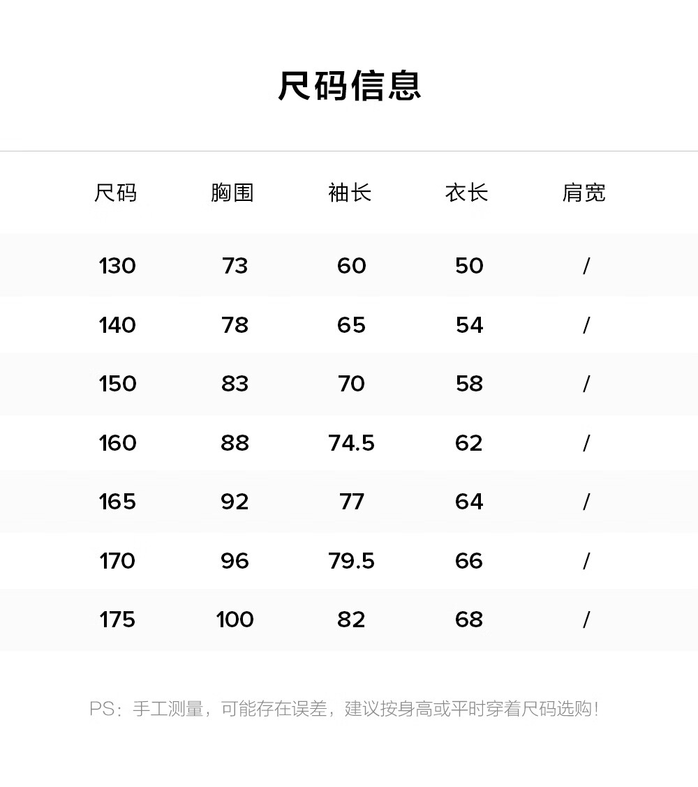 China(cm) 72-76 76-81 81-87 87-93 93-98