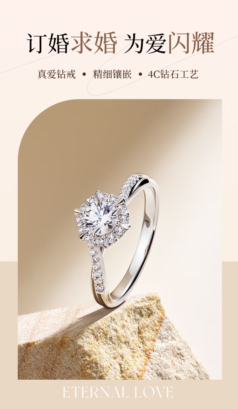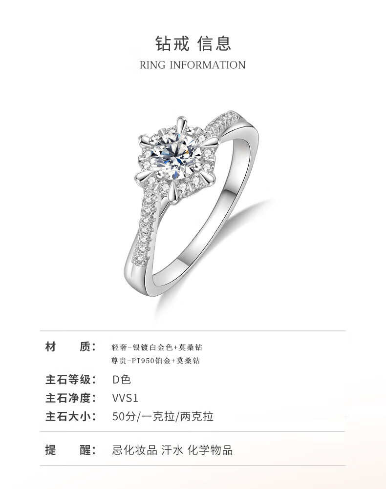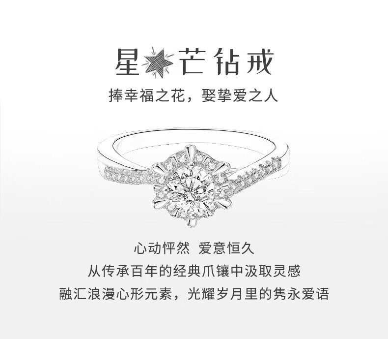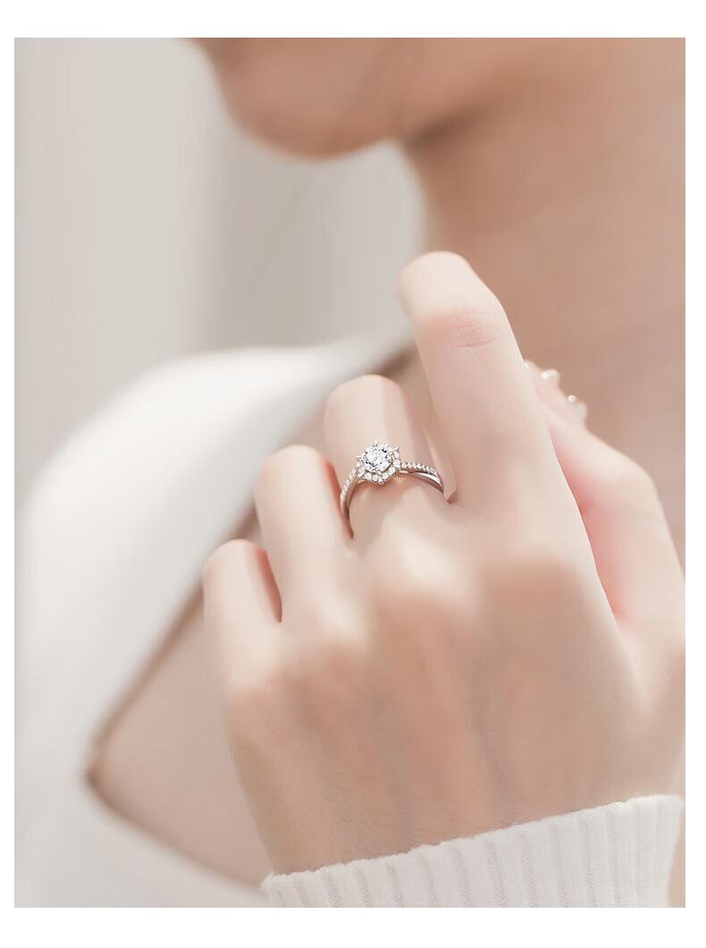 MZMZ platinum ring for women pt950 platinum engagement diamond ring versatile Valentine's Day birthday gift for girlfriend and wife when/next day delivery - light luxury six-pointed star diamond ring 50 points live mouth