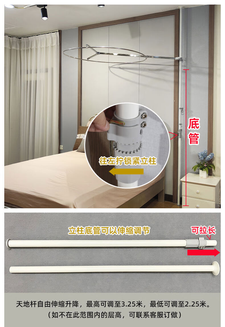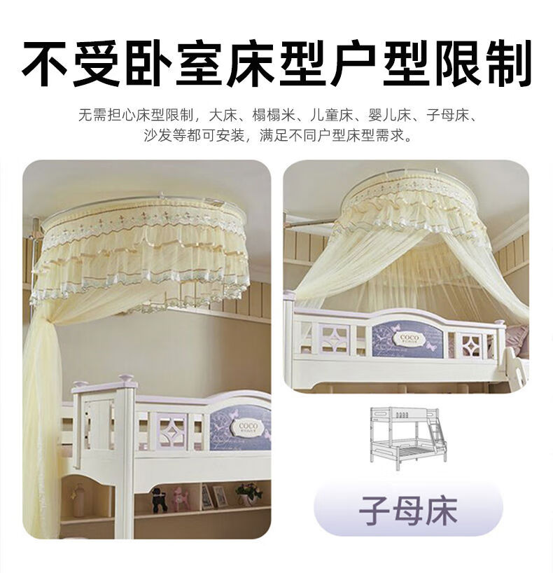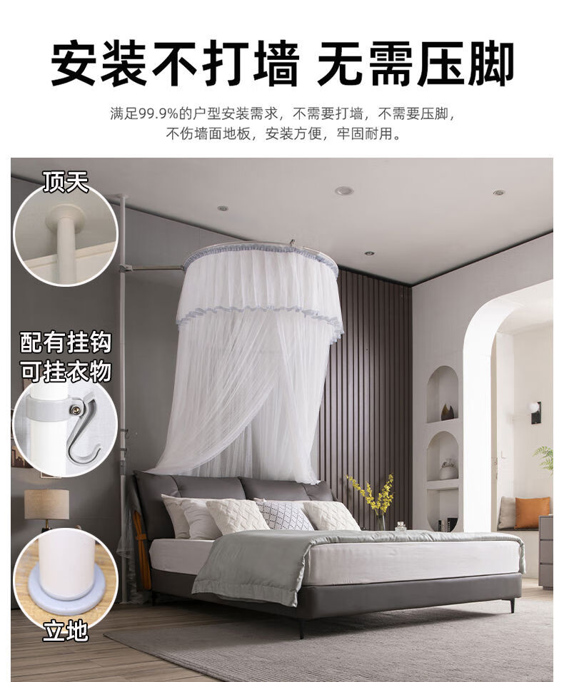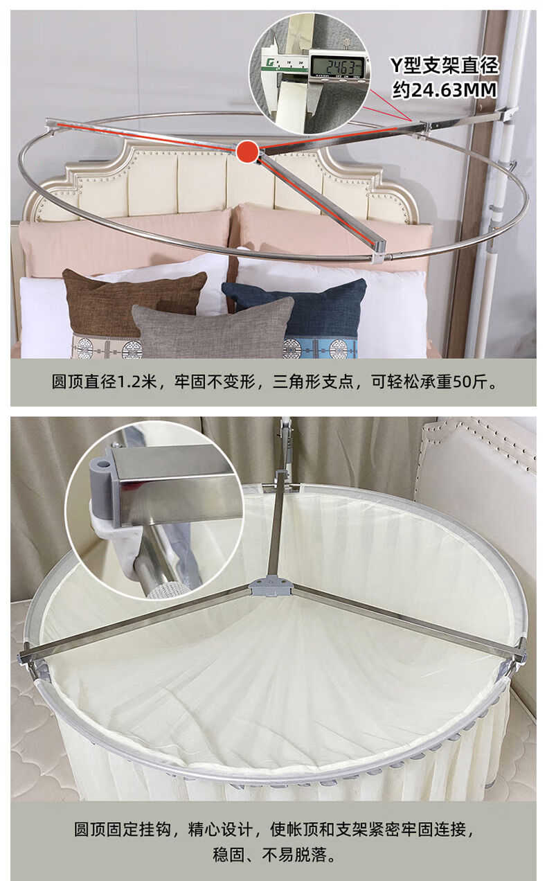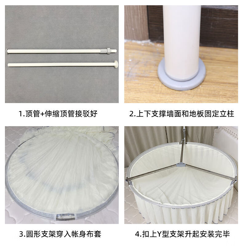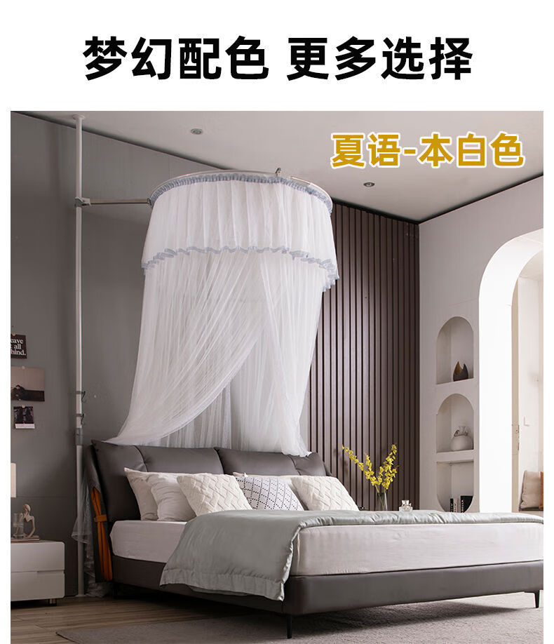 Yusenyi Tiandi Pole Mosquito Net Round Ceiling Princess 18m Bed Home Bedroom Telescopic Bracket 2 Meters The diameter of the mosquito net dome is 1.2 meters, one-size-fits-all, you can choose any size when placing an order. Width 0.9, length 2.0
