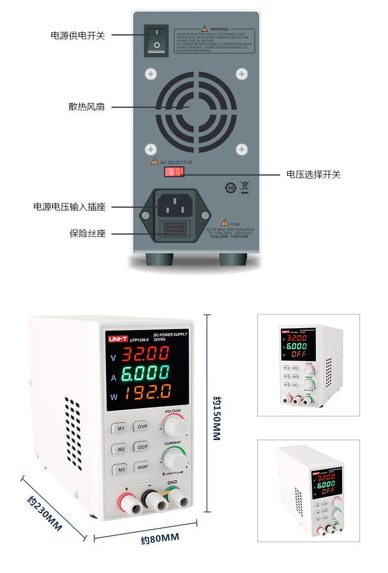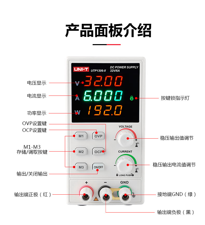 Unilide UTP1306-II high-precision DC regulated power supply 32V/6A mobile phone repair switching power supply UTP1306-II (32V_6A)