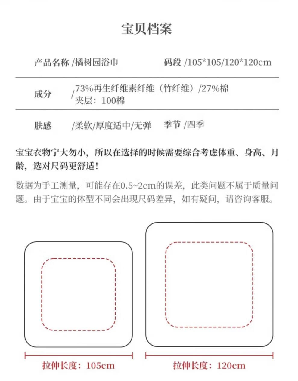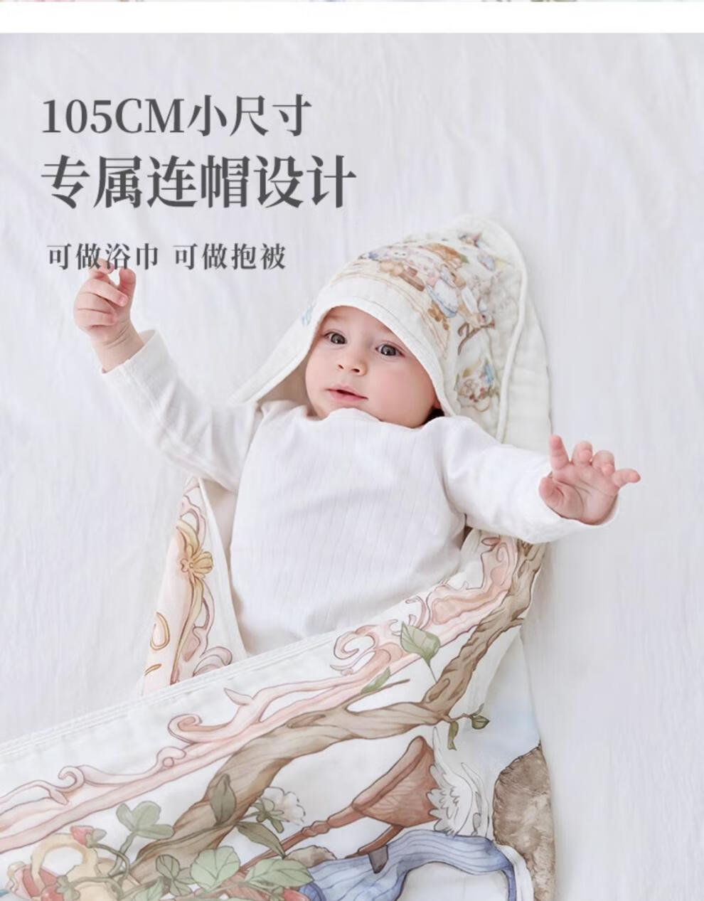 Hani Sky Baby Bamboo Cotton Bath Towel Newborn Baby Hooded Cloak Children's Bath Bag Wrap LeLeyun 105x105cm