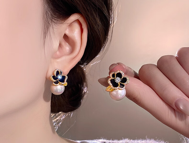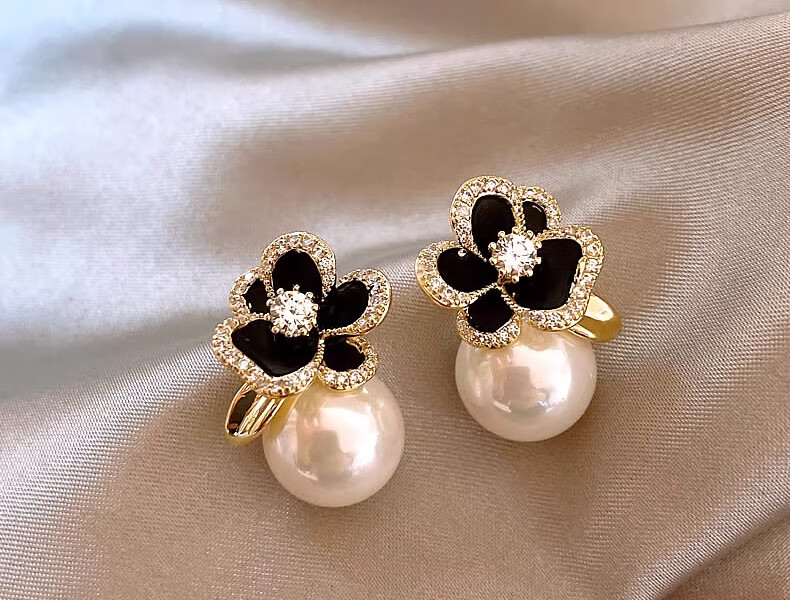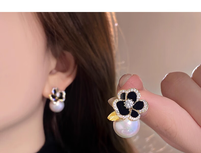 Idel Camellia Pearl 2025 New Earrings Women's High-end Sweet Petal Earrings Suitable for Round Face Earrings Gift E4122 Palace Style Camellia Earrings