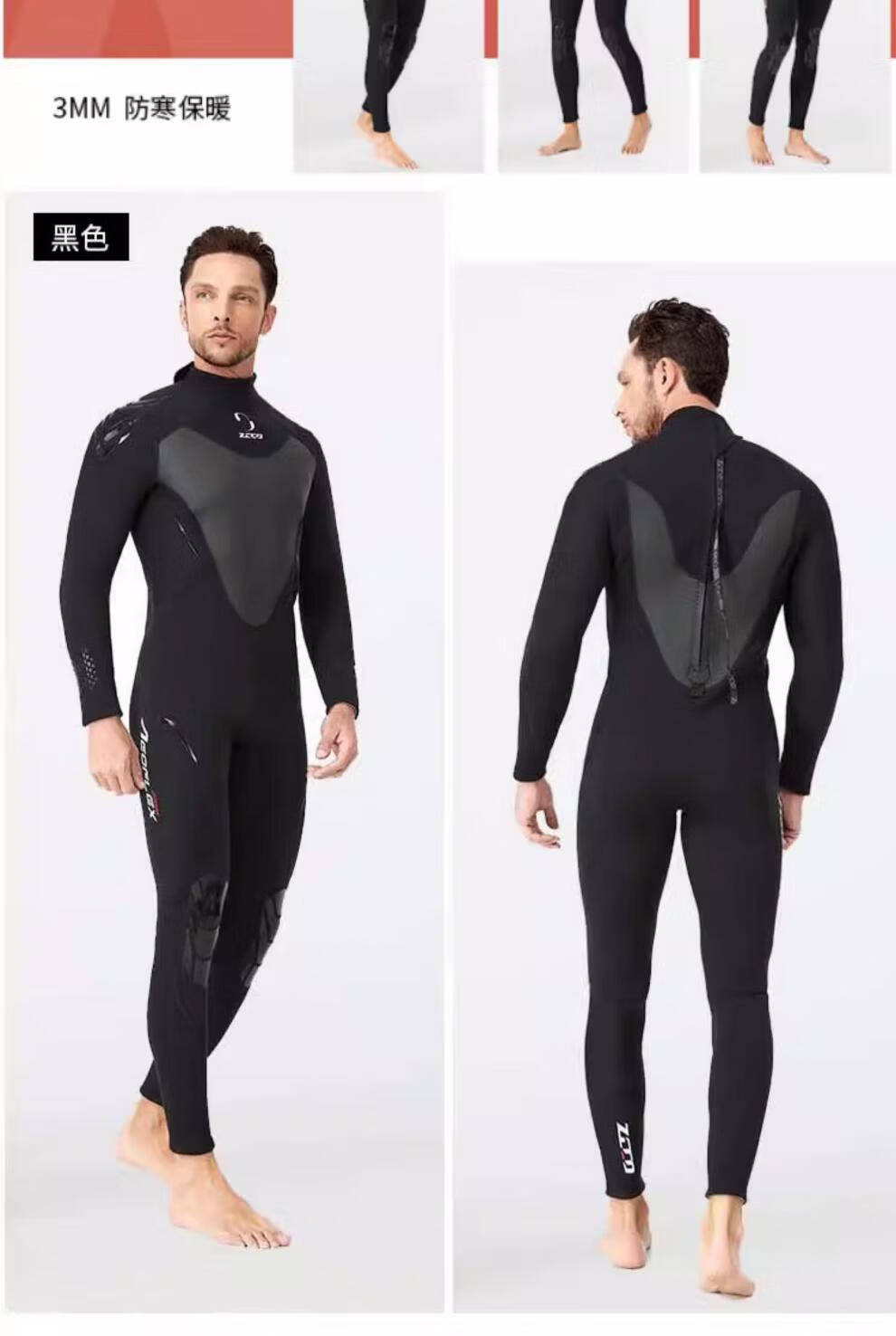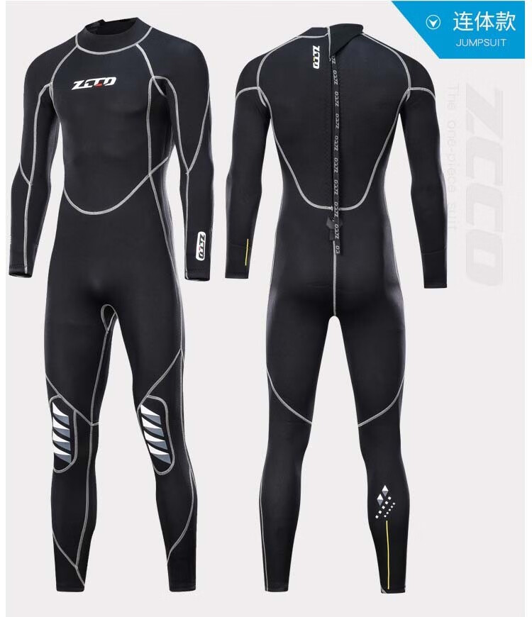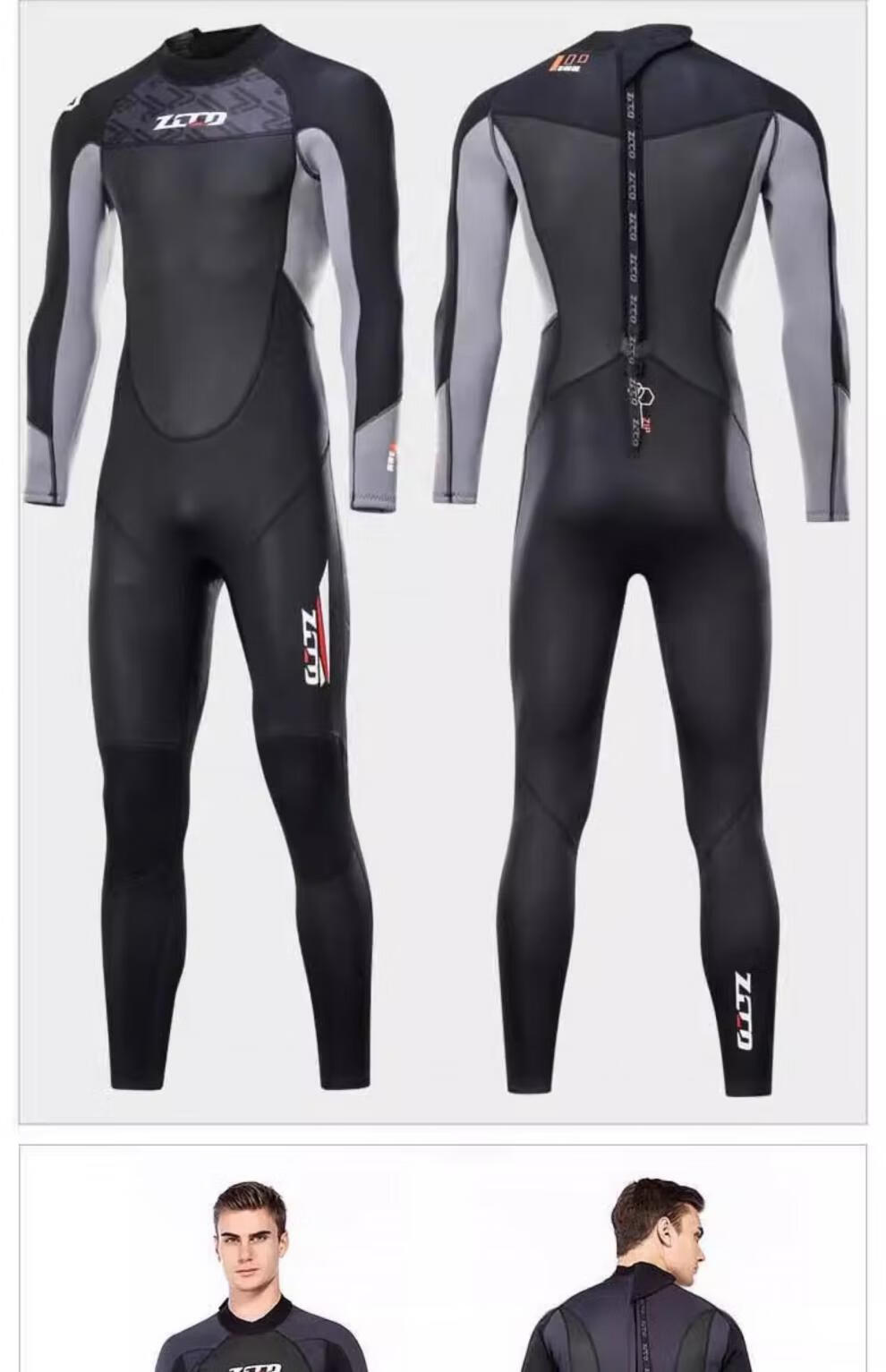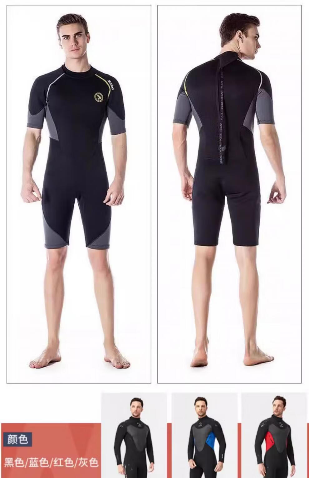ZCCO 3mm men's and women's swimwear, wetsuit, snorkeling and cold-proof clothing, men/3mm black and gray 2-one-piece back zipper, short-sleeved shorts S