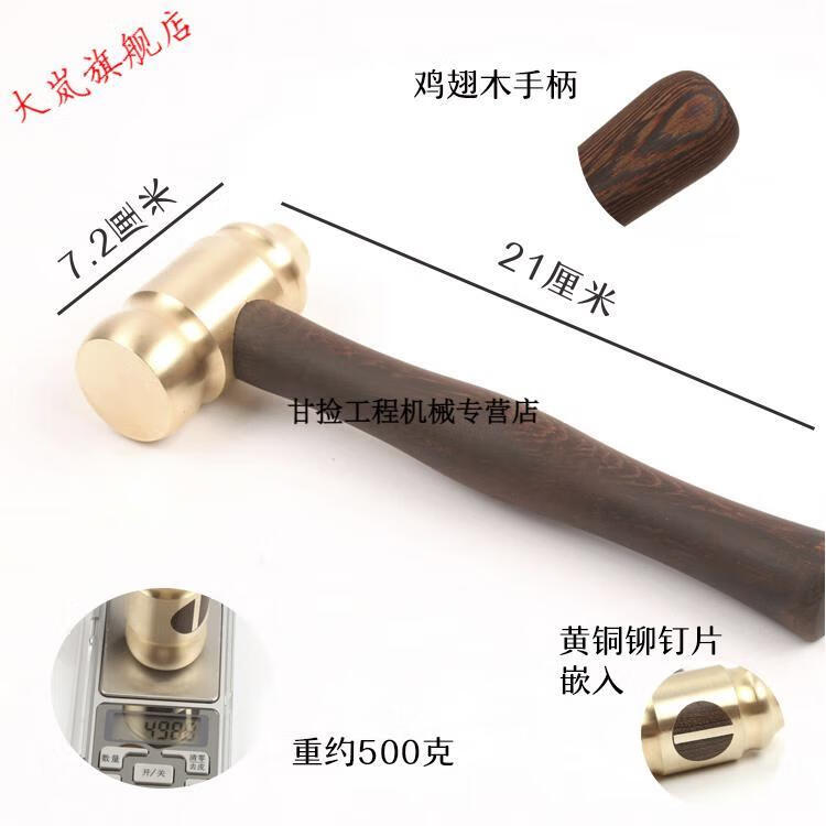Qiaobolai starting hammer, small brass hammer, hammer judge hammer, leather carving hammer, handmade hammer, copper hammer, No. 1 pattern, No. 1 copper hammer, large gold-plated version + gift box