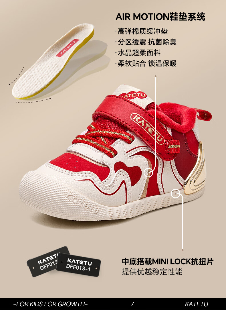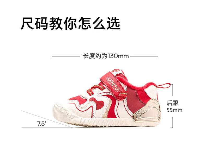 Carter Rabbit Infant Toddler Shoes 2025 Autumn and Winter New Soft Sole Non-Slip Shoes Functional Shoes Plus Velvet Cotton Shoes Red White Gold 27 Inner Length 16.5cm Foot Length 15.6-16.2