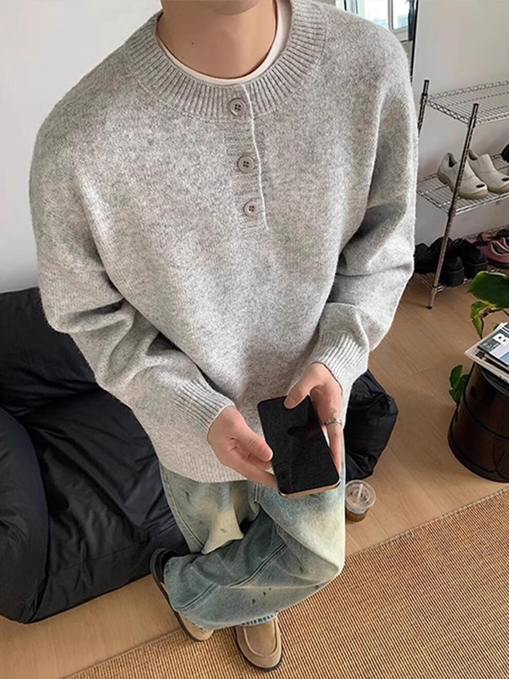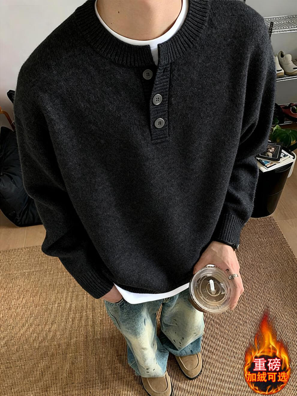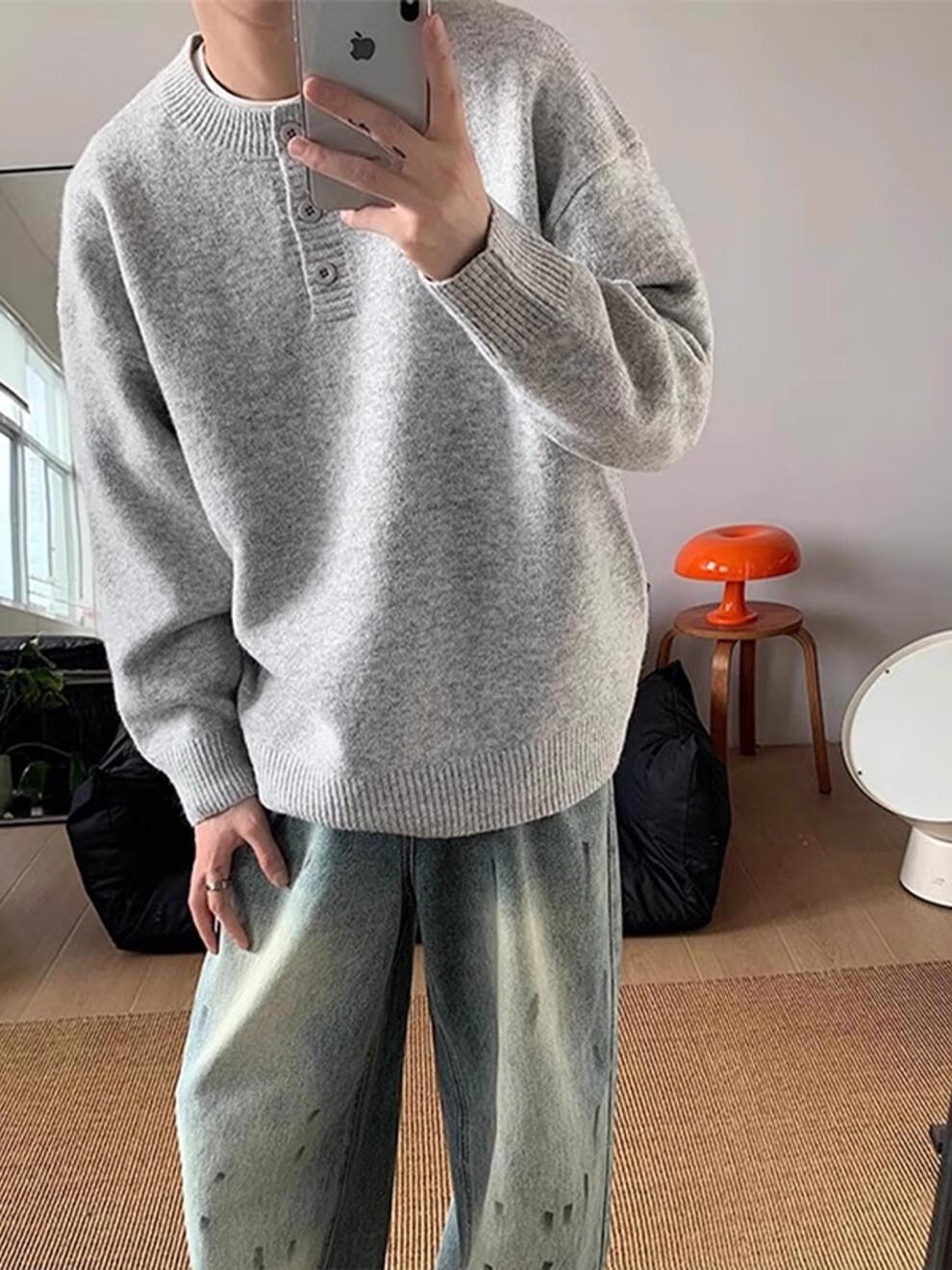 Yuyong American retro Henry collar sweater, lazy and high-end men's shoulder sweater jacket, cleanfit bottoming shirt, light gray XL