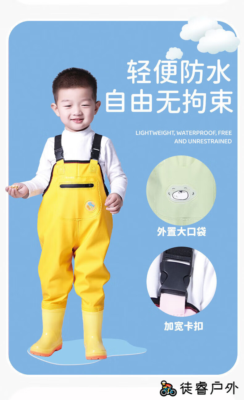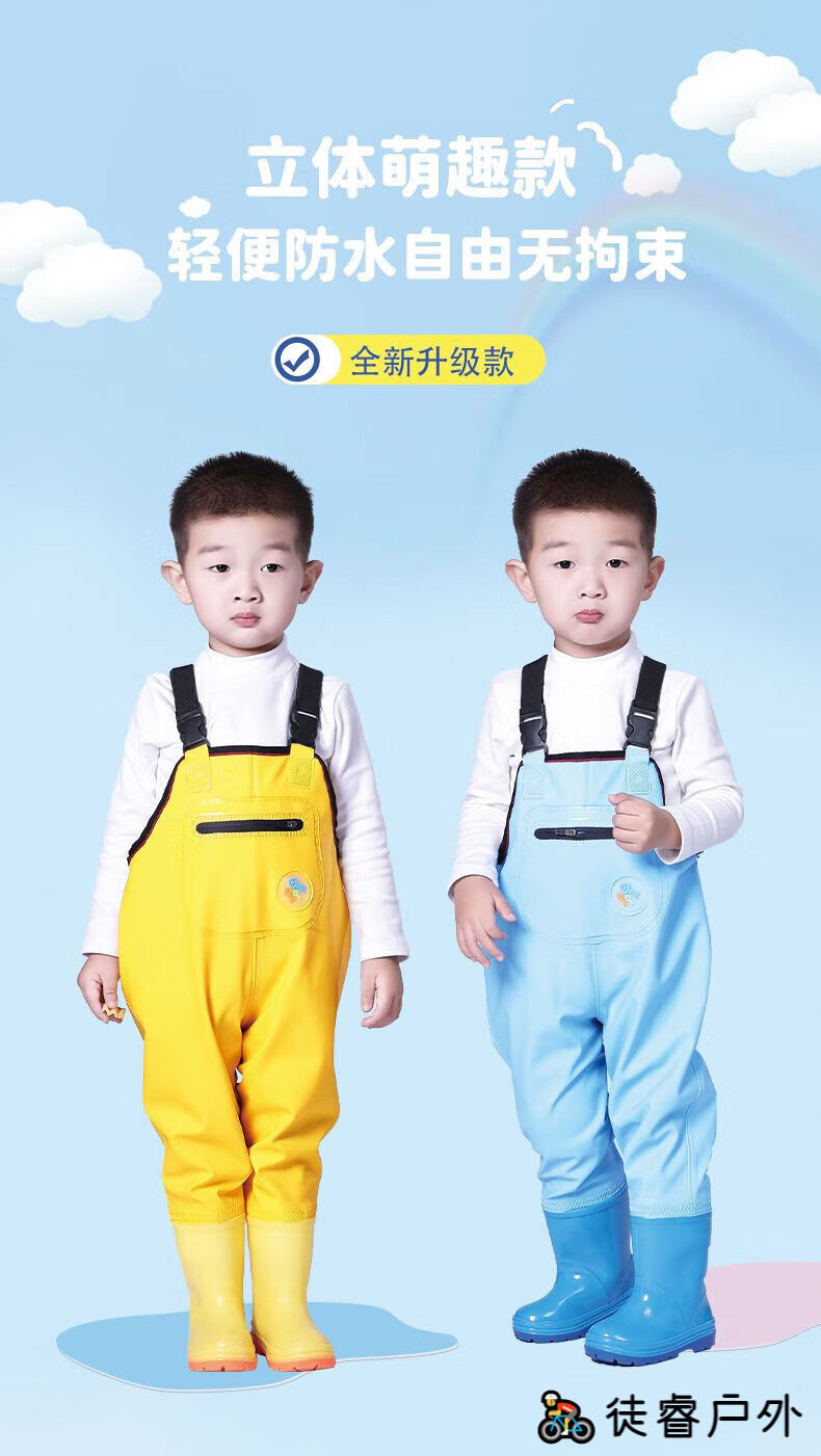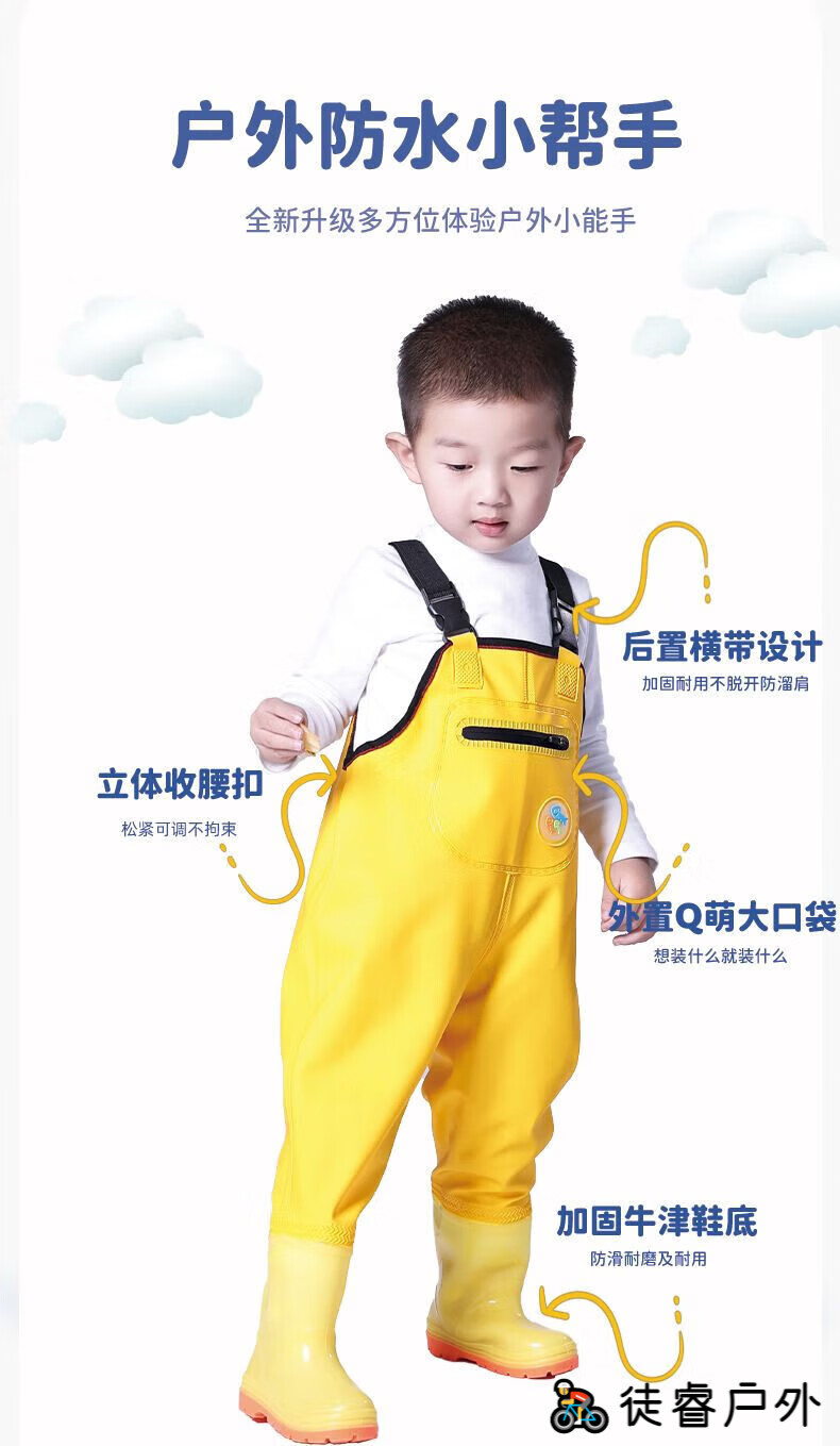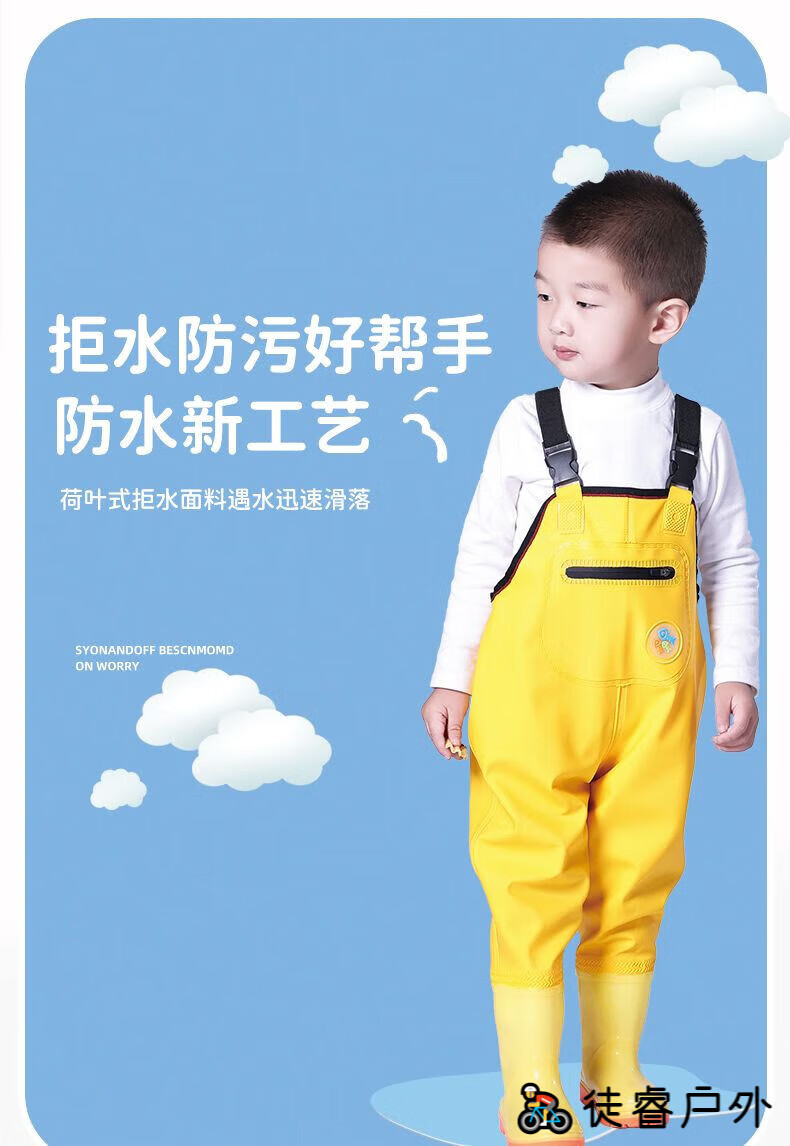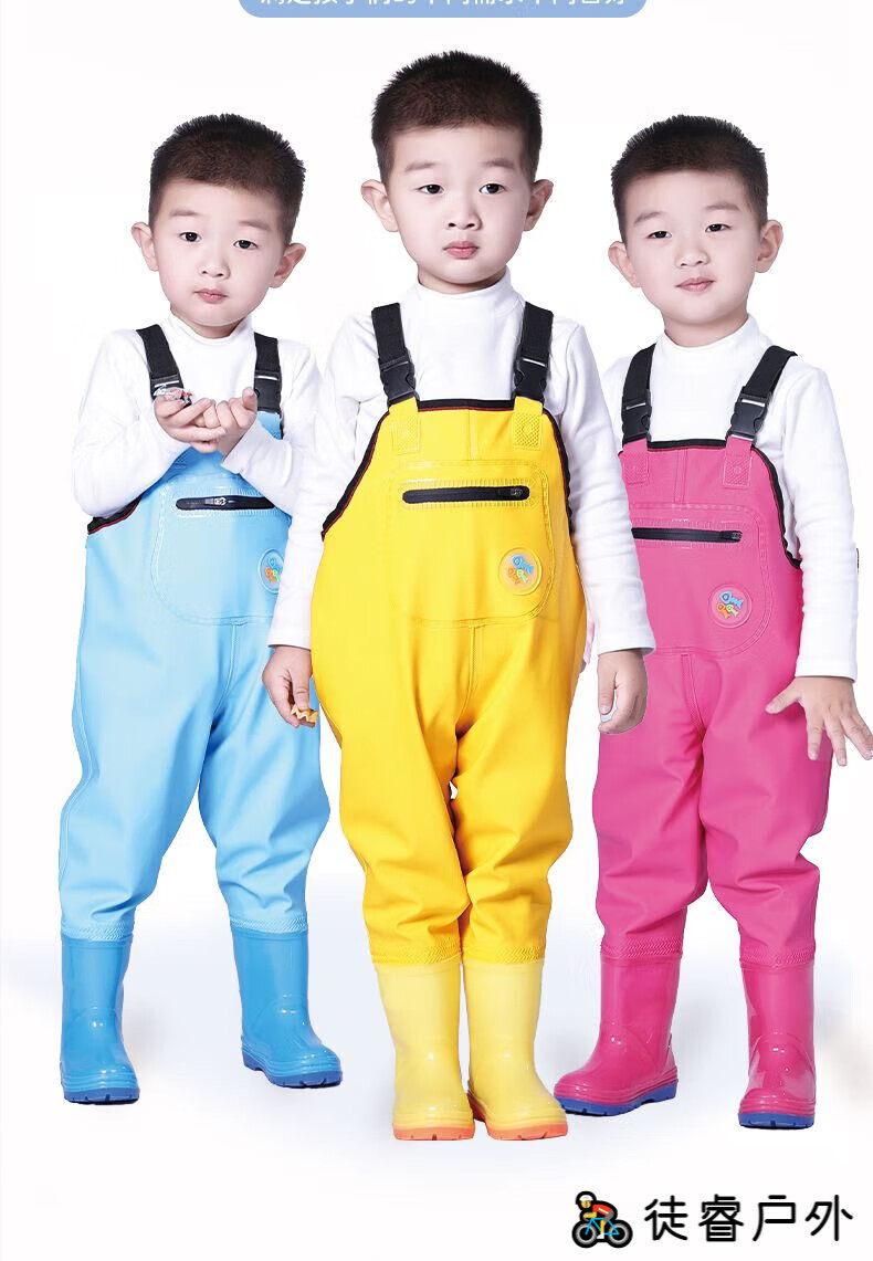 SMVP children's water play one-piece waders, kindergarten waterproof clothes, children's rain boots for children, men's and women's fishing rain pants, beach green - children's overalls zipper pockets 24 (shoe inner length 15CM)