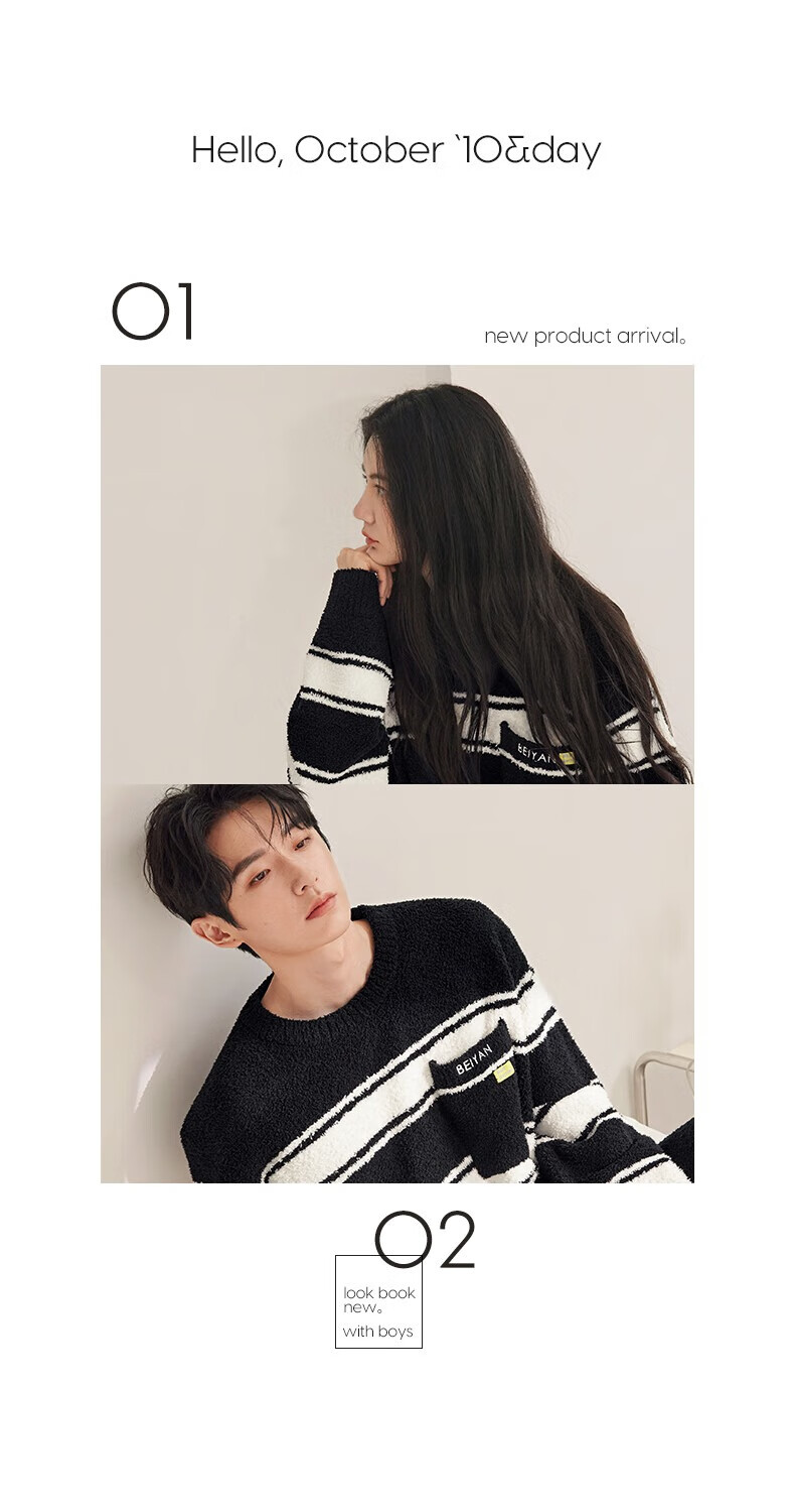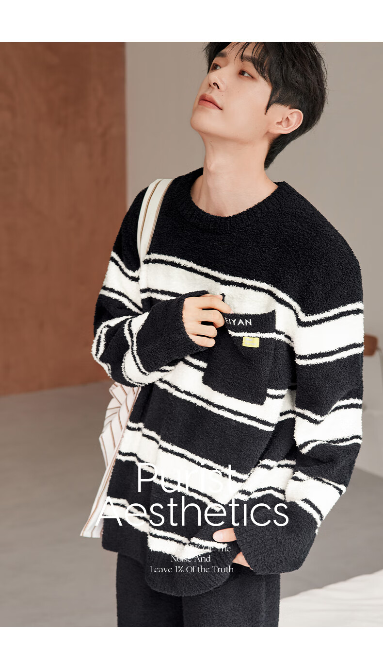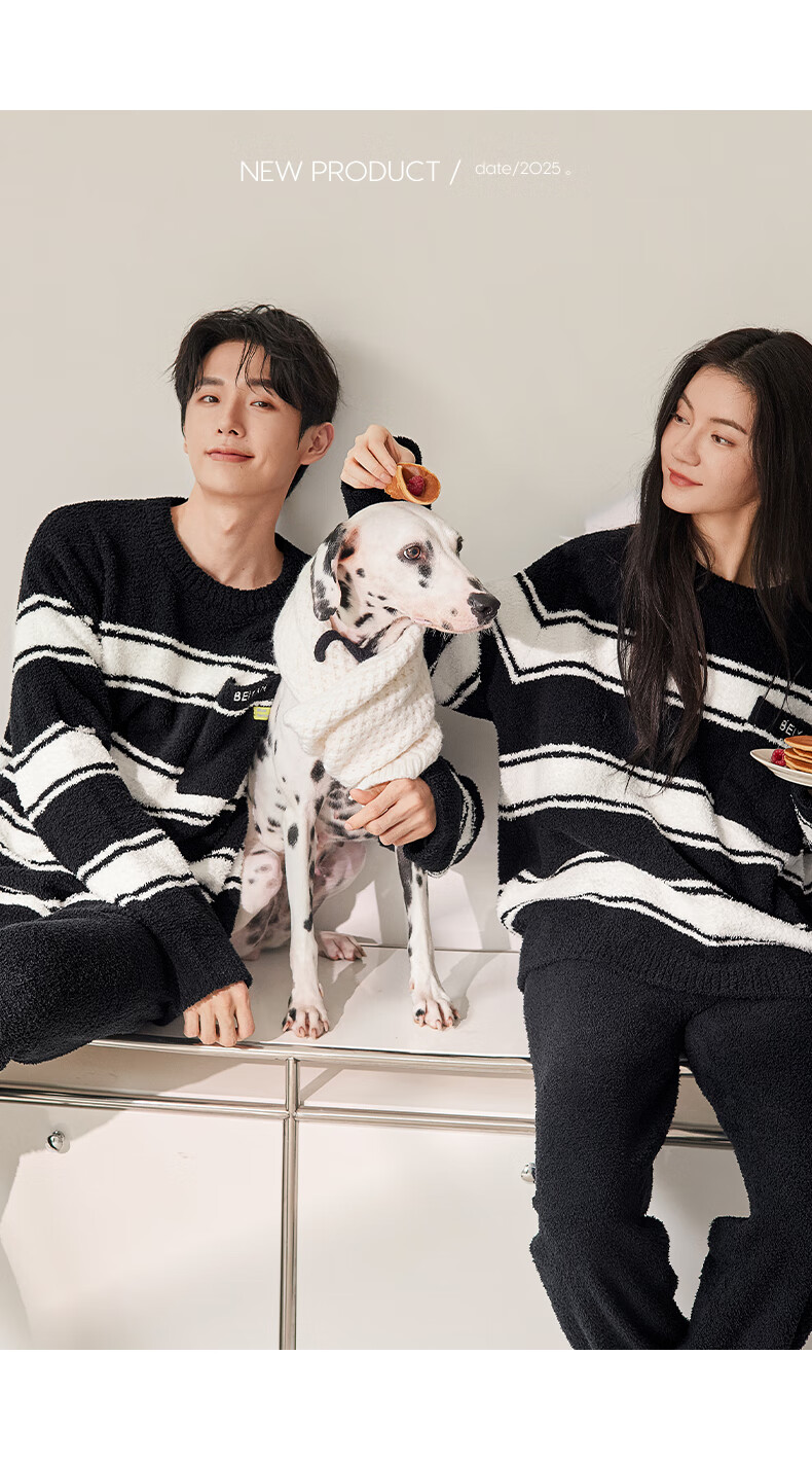 Beiyan Half Velvet Couple Pajamas for Men and Women New Autumn and Winter Striped Coral Velvet Warm Home Clothing Casual Outerwear Suit F60621 Men's L