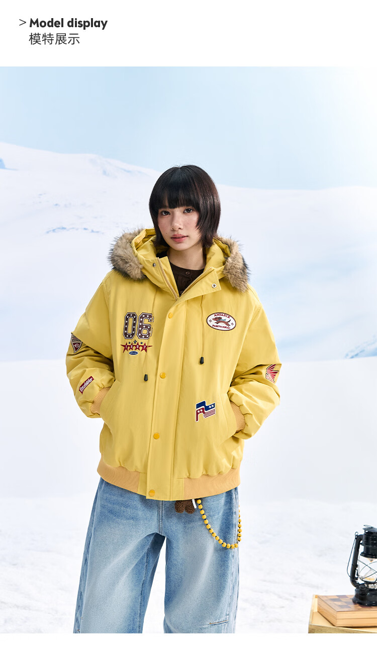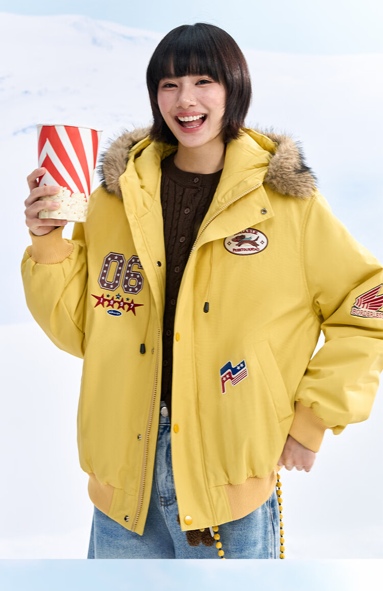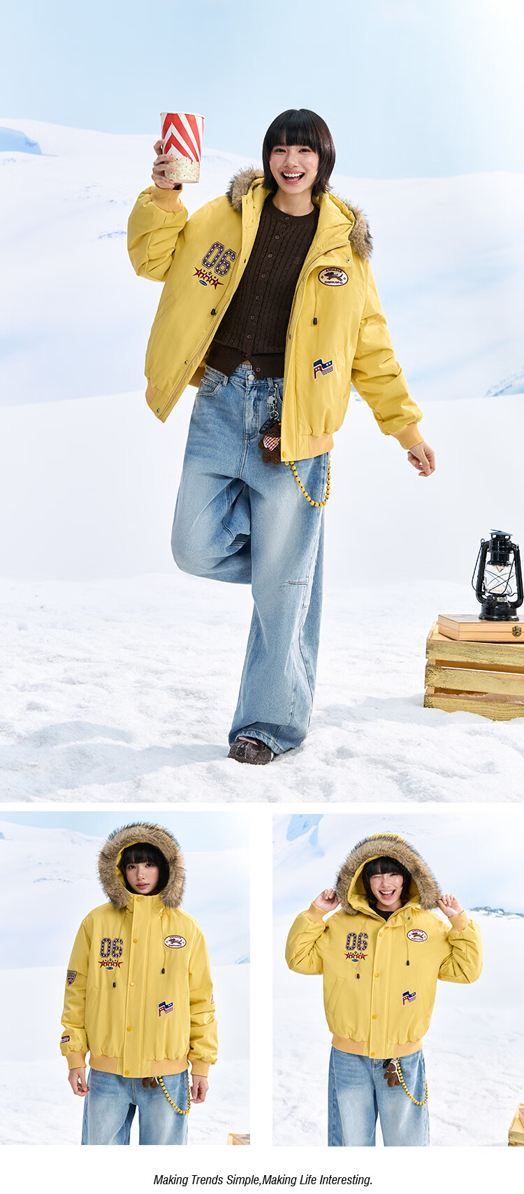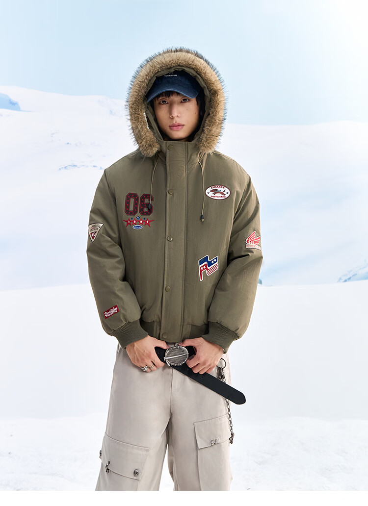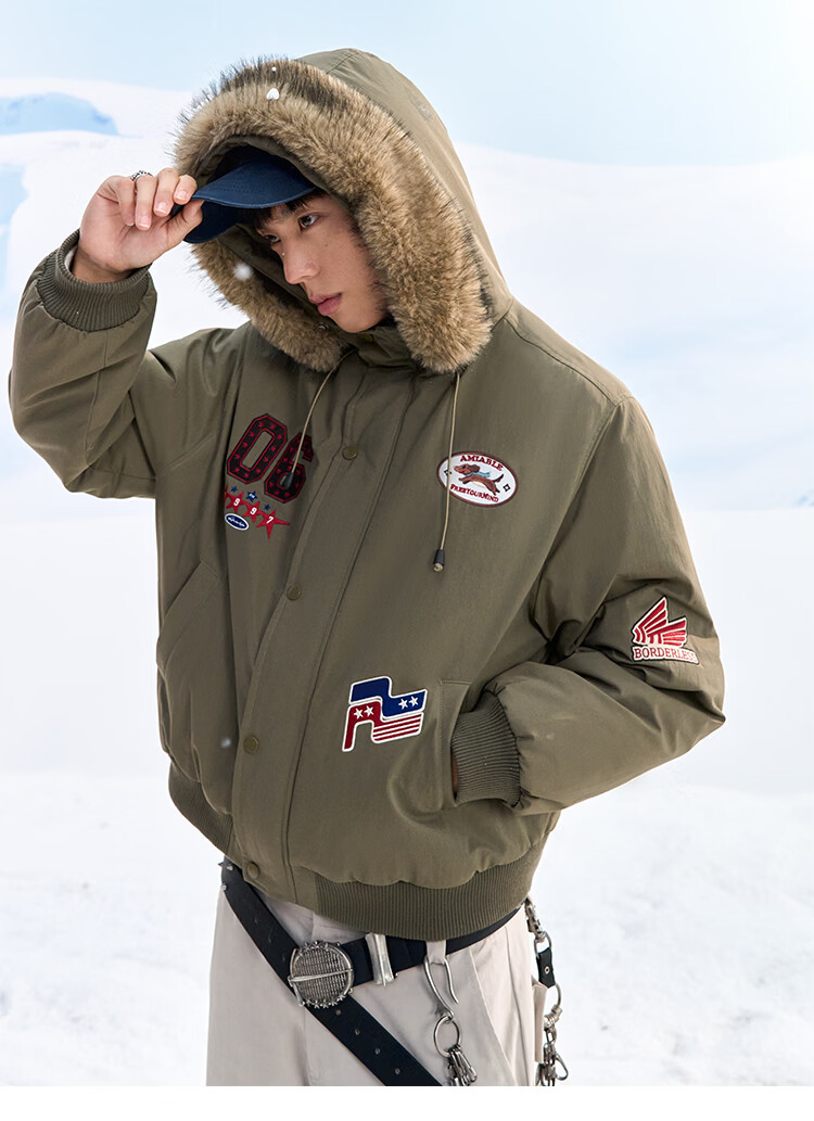 F426 Zhao Lusi's same style winter new American retro hooded fur collar parka cotton jacket military green S