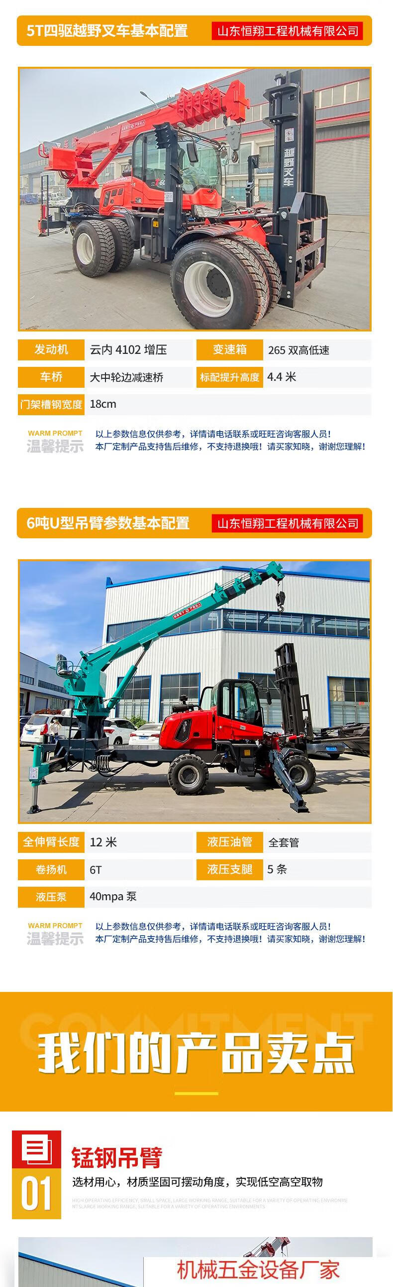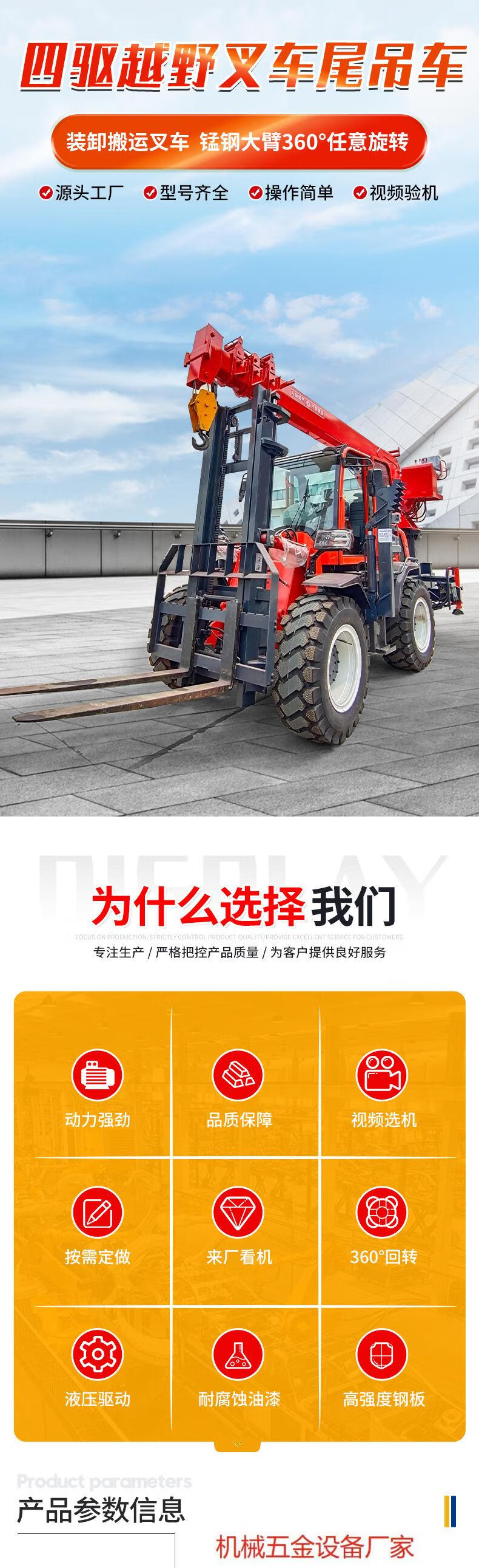 Four-wheel drive off-road forklift tail boom crane rotating and lifting machine accessories
