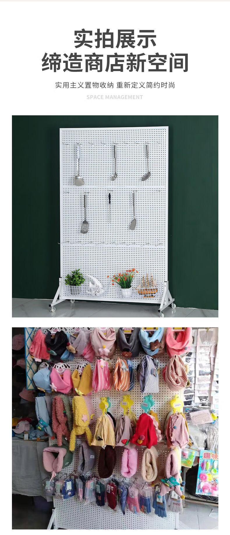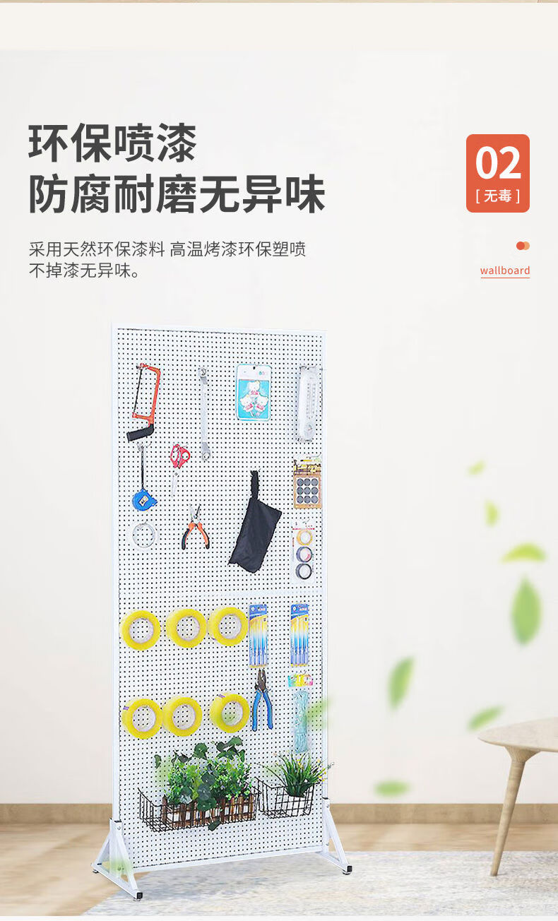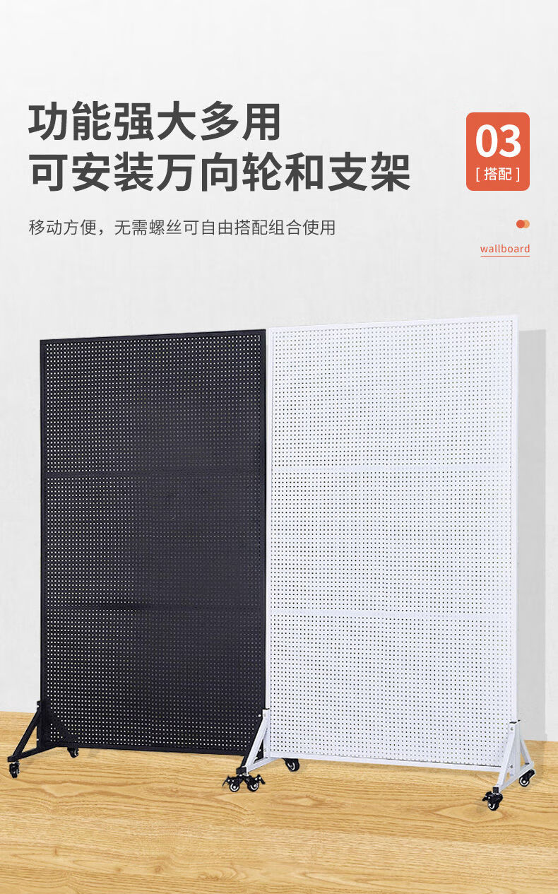 Perforated board shelf mobile phone accessories jewelry rack vertical floor display rack hardware tools hanging board supermarket storage rack 120200c white bracket and universal wheel come with 50 10 cm hooks