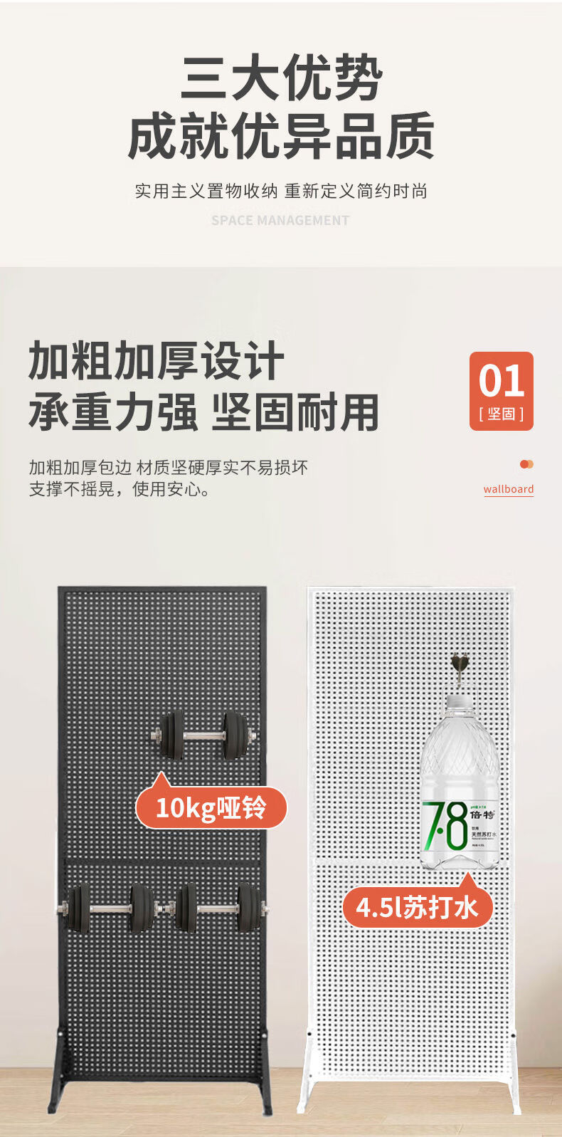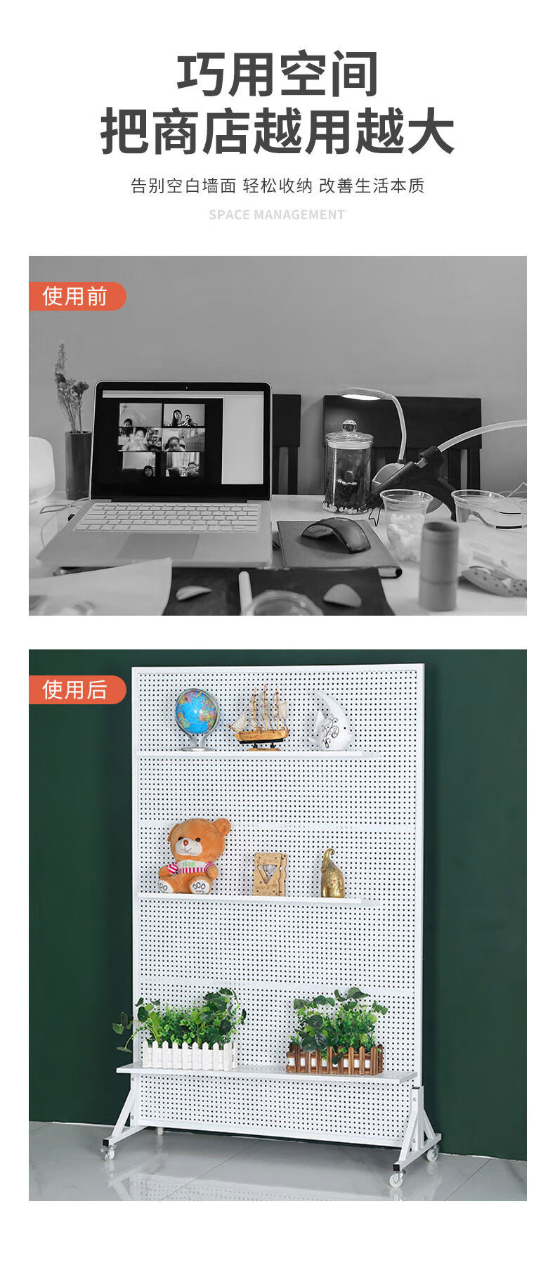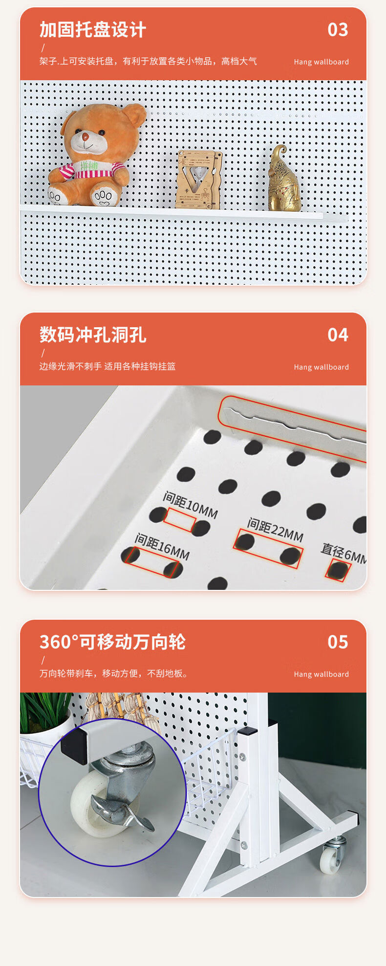 Perforated board shelf mobile phone accessories jewelry rack vertical floor display rack hardware tools hanging board supermarket storage rack 120200c white bracket and universal wheel come with 50 10 cm hooks