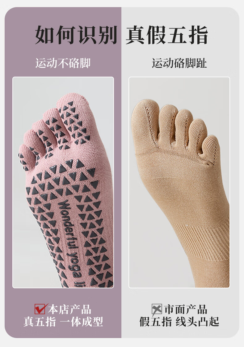 German quality yoga socks five-finger non-slip women's Pilates indoor sports fitness dance floor socks 2 pairs of pink + purple