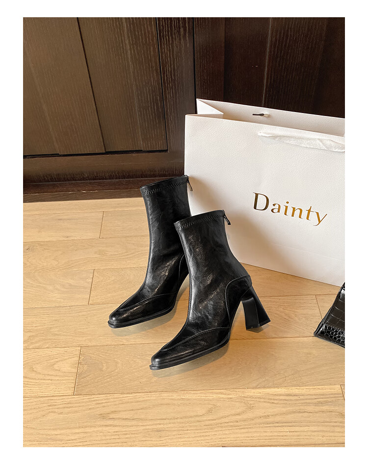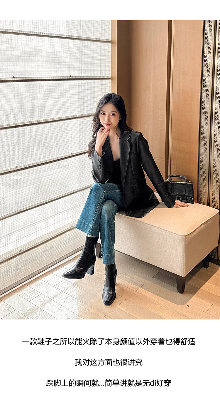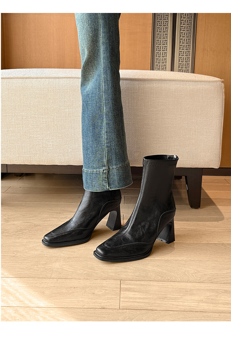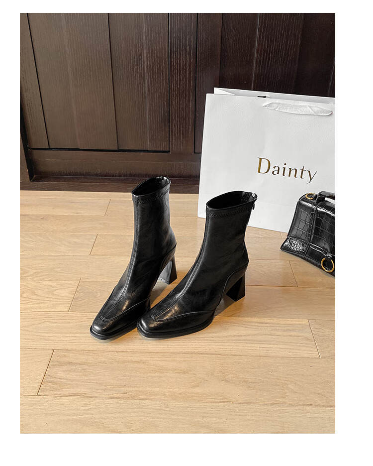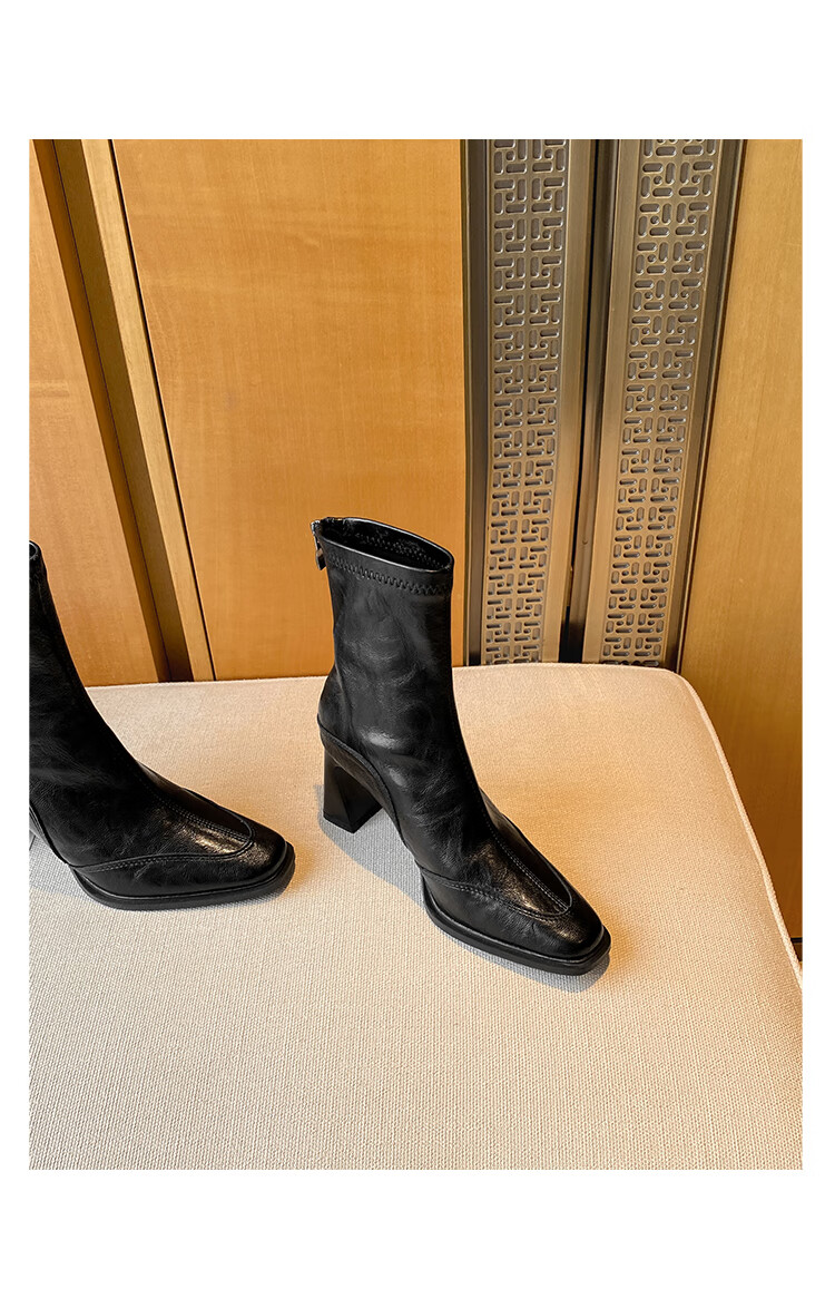 Fan Shengyu Korean style high-heeled square toe slim boots short boots women's thick heel retro Martin boots British style short boots high heel short boots - black 37