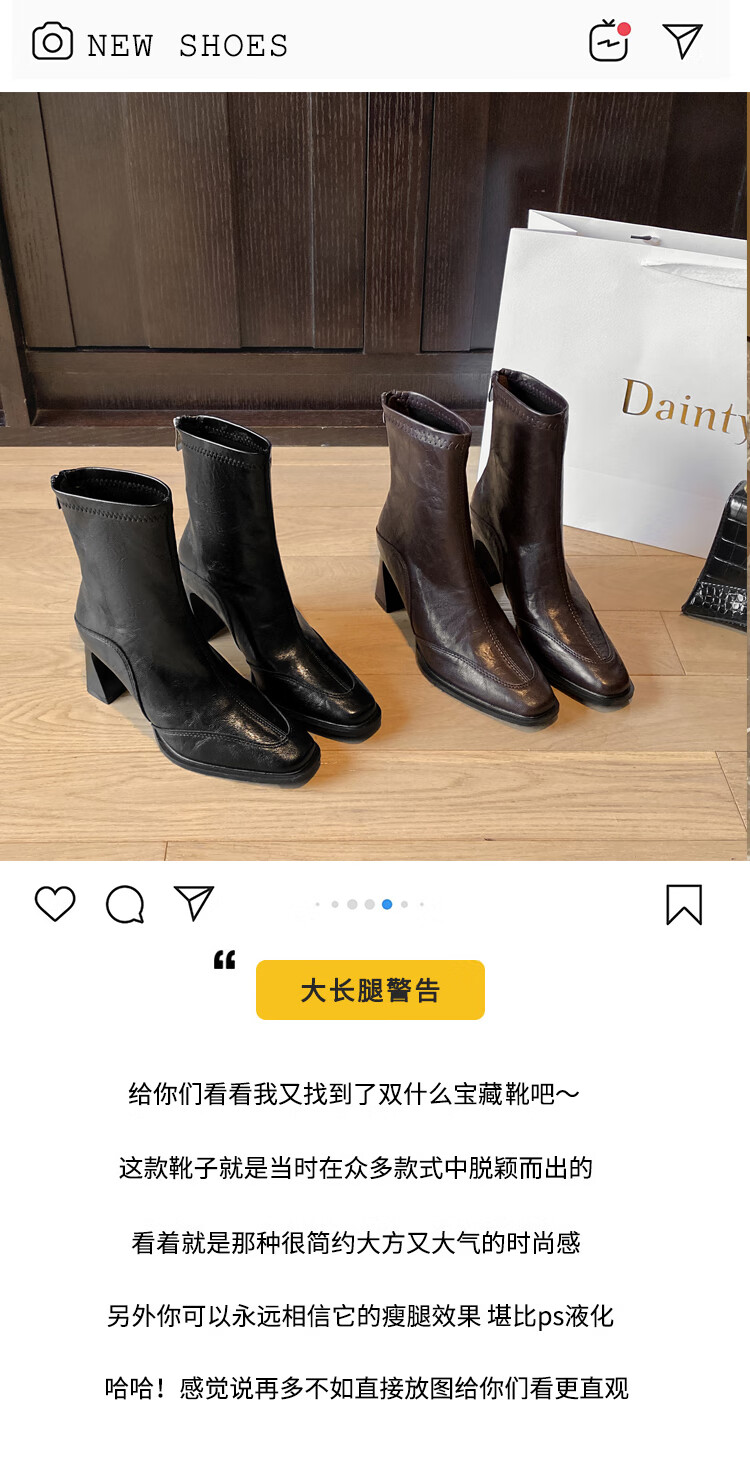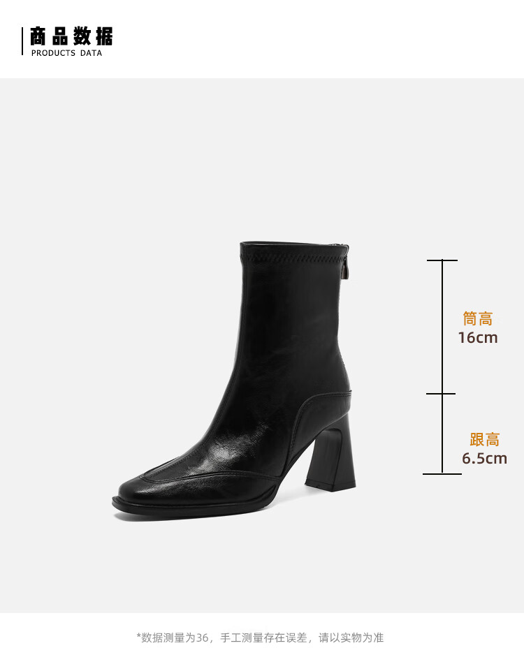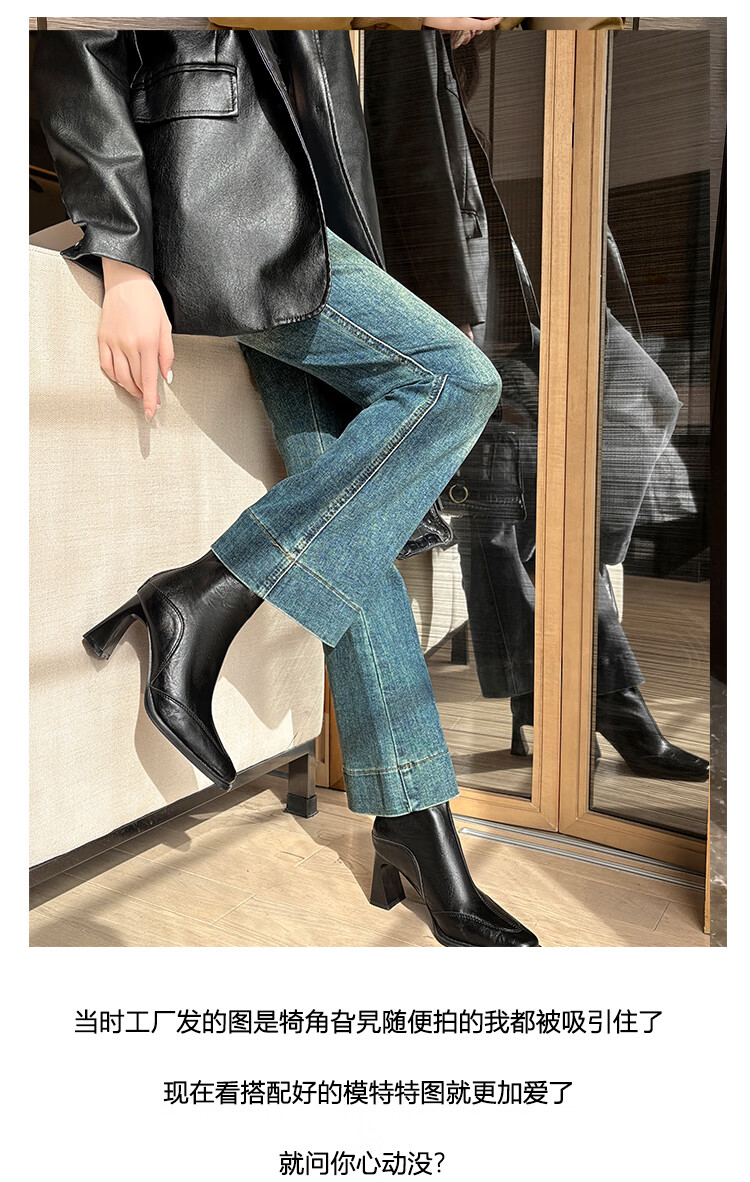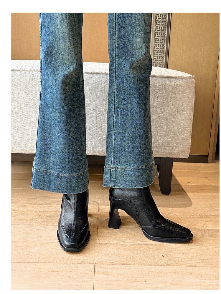 Fan Shengyu Korean style high-heeled square toe slim boots short boots women's thick heel retro Martin boots British style short boots high heel short boots - black 37