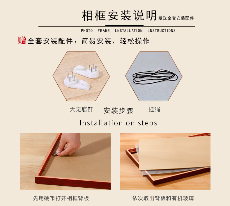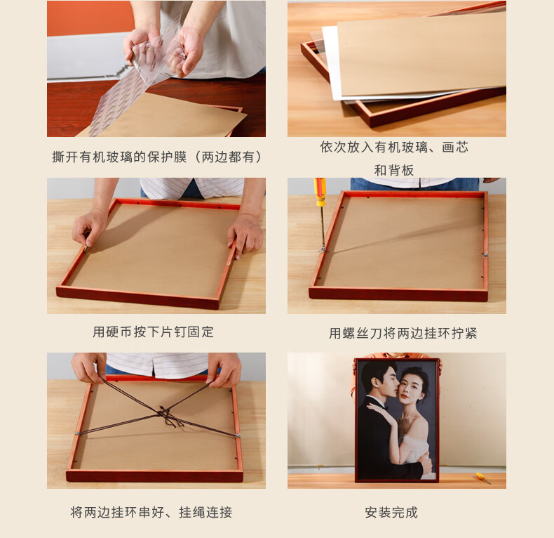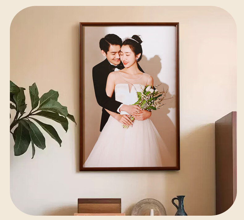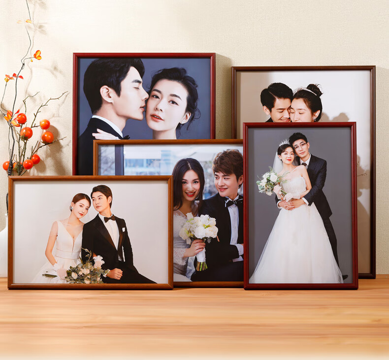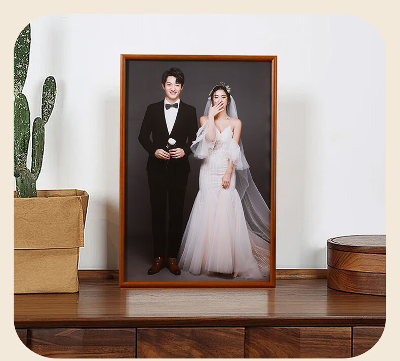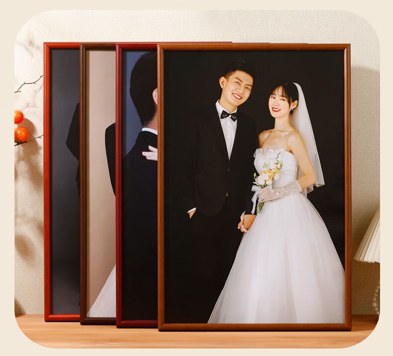 Hong Kong-Vietnam Chinese-style round solid wood wedding photo frame for wall hanging, high-end developed photos made into family portraits, empty frame customization, 1530 red rosewood color (right angle), 20 inches, inner frame 40.6*50.8 cm, wall hanging