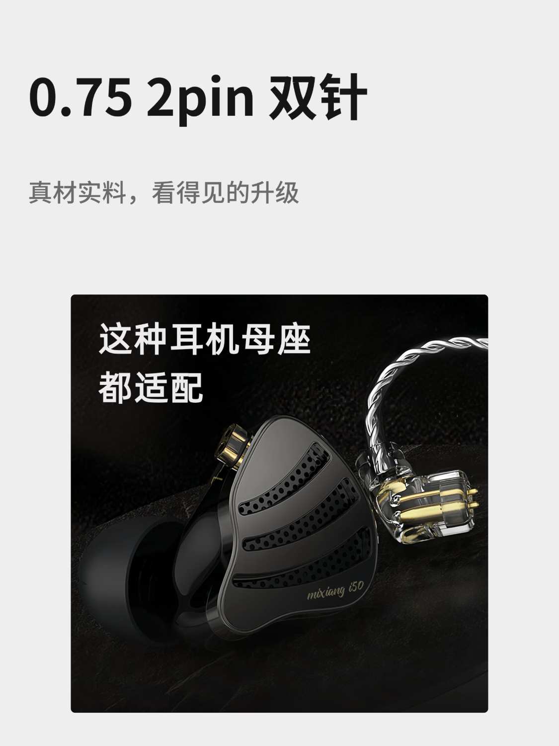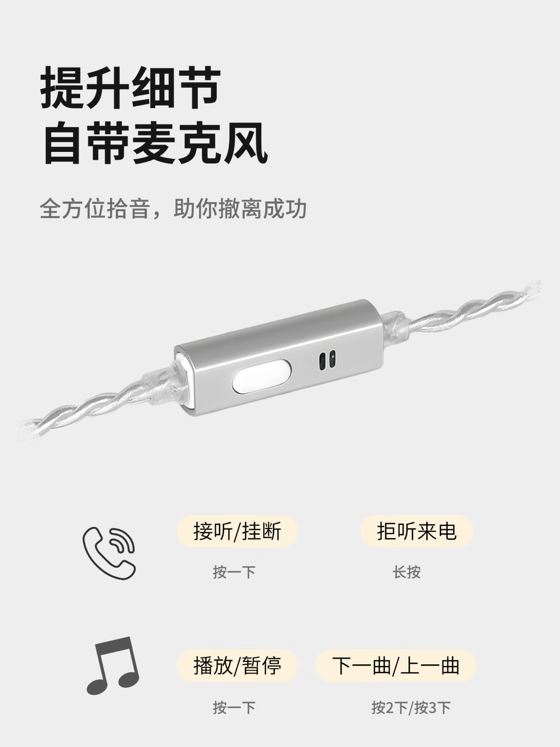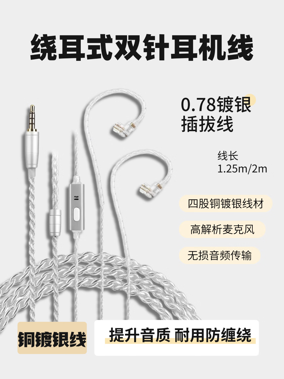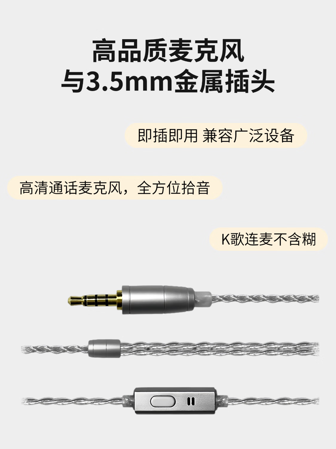 Mixiang around-ear headphone cable 3.5mm round hole oxygen-free copper silver-plated wire 0.75 2pin double needle 2m cable length 3.5mm round hole with mic (extended version)