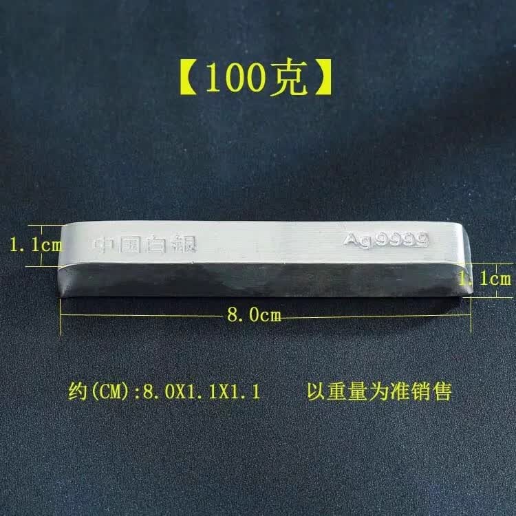 Silver bar 9999 sterling silver raw material investment small silver bar silver pure silver broken silver nugget silver plate struck silver bracelet with certificate 100 grams (10 compensation for fake ones)