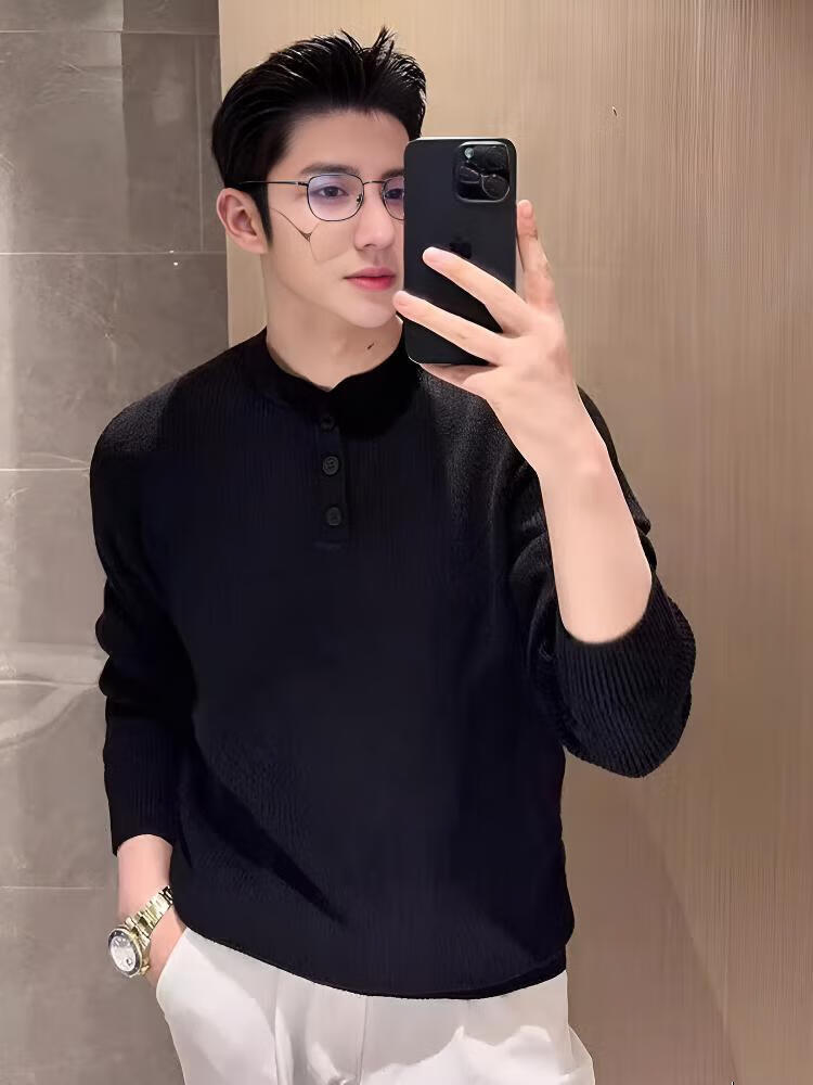 KAZUKI KURAISHI Kazuki Kuraishi business high-end stand-up collar sweater for men 2025 autumn new casual bottoming sweater gray M