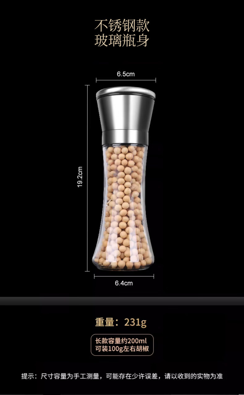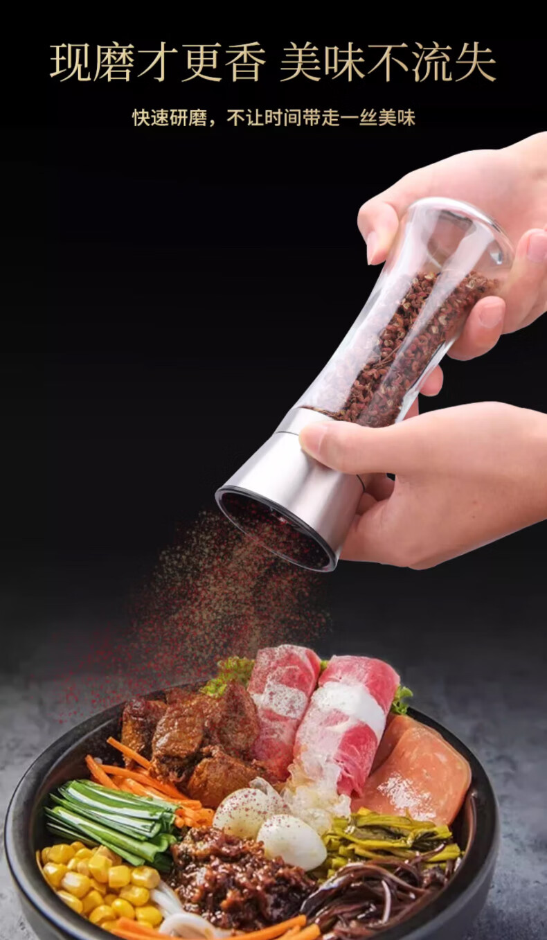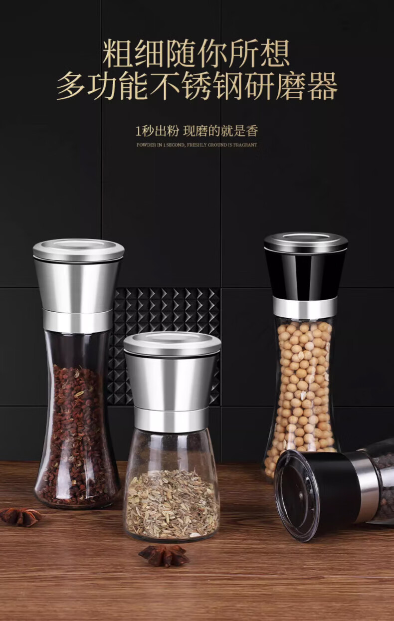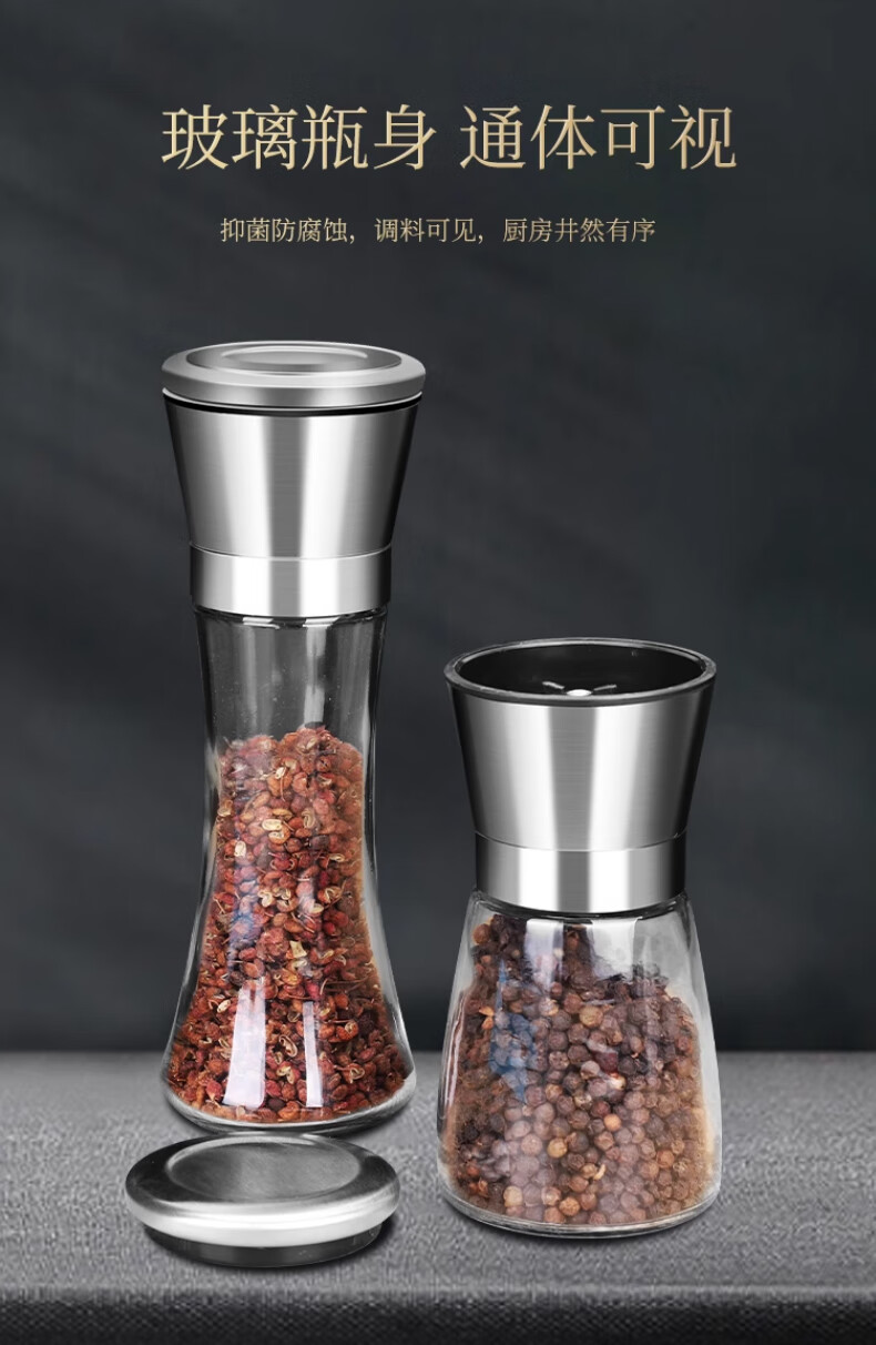 Four Seasons Muge (MICOE) kitchen grinder 304 stainless steel high borosilicate glass bottle peppercorn pepper freshly ground household seasoning artifact stainless steel grinder high one pack