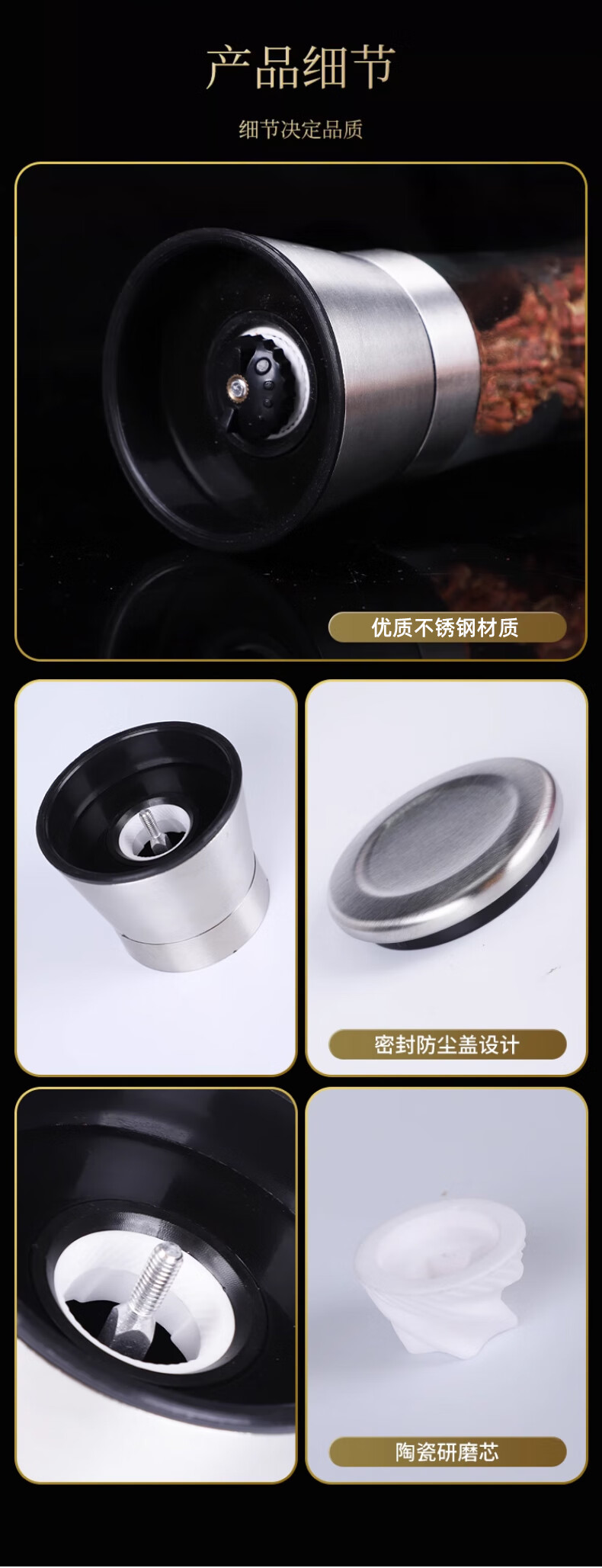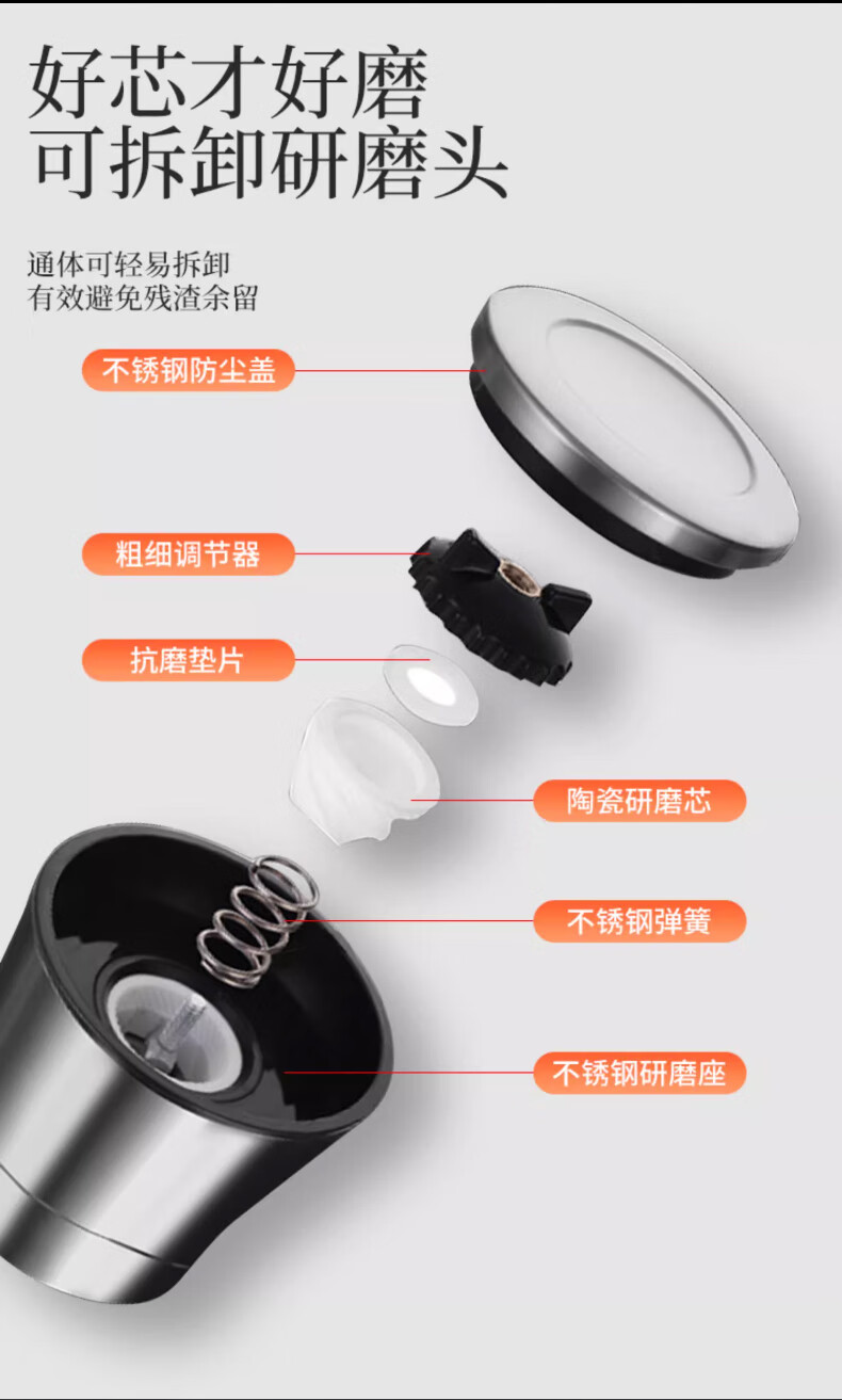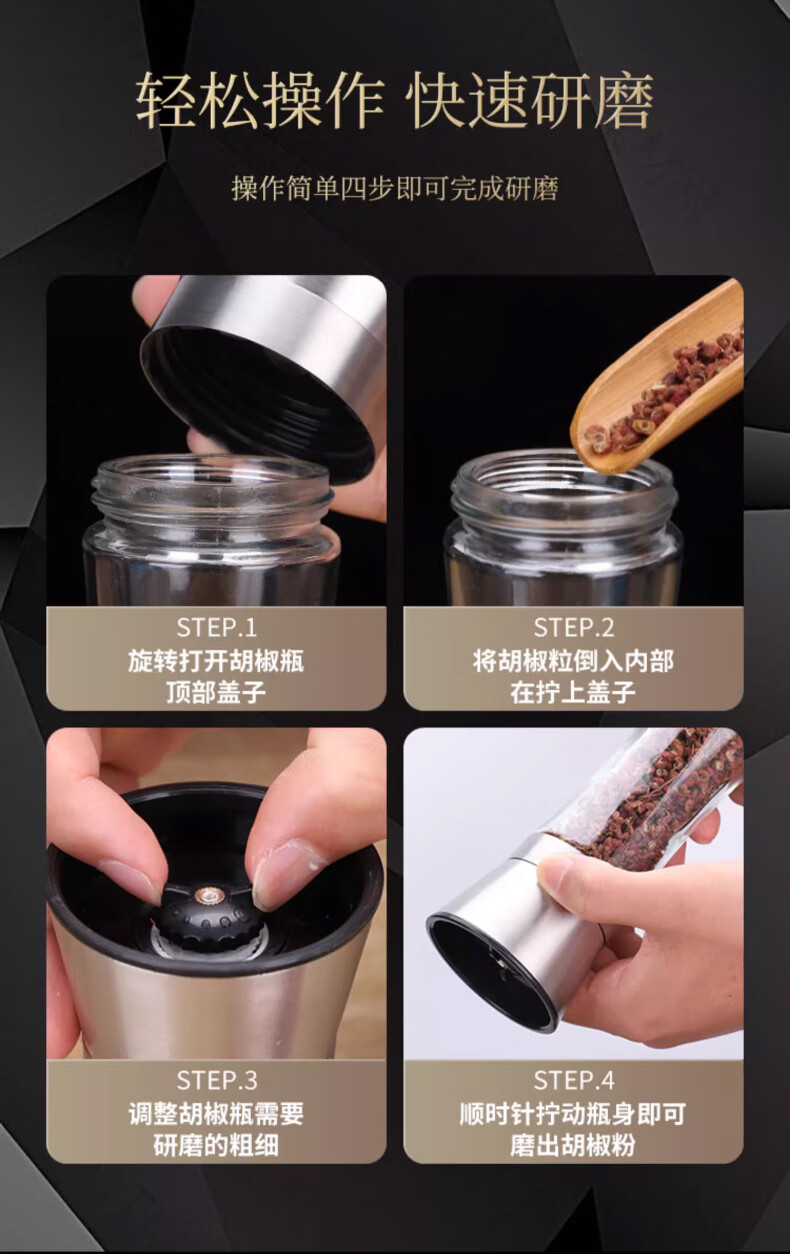 Four Seasons Muge (MICOE) kitchen grinder 304 stainless steel high borosilicate glass bottle peppercorn pepper freshly ground household seasoning artifact stainless steel grinder high one pack