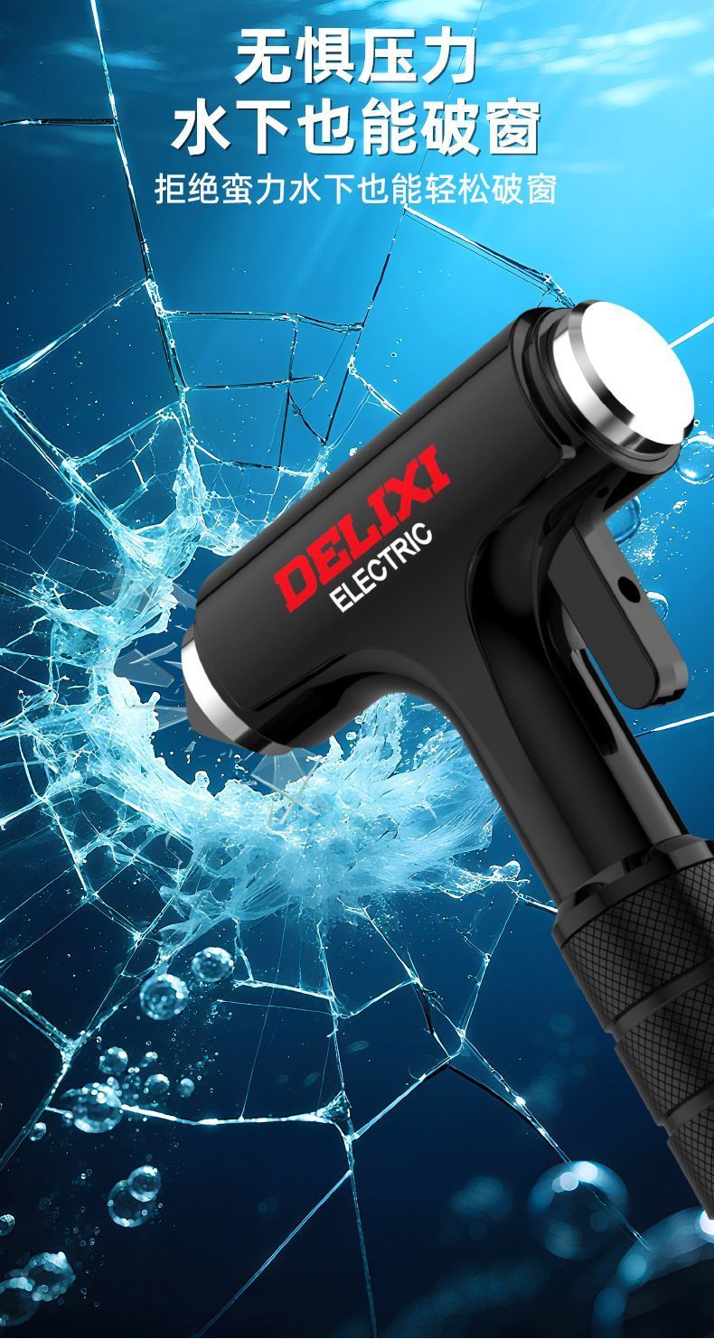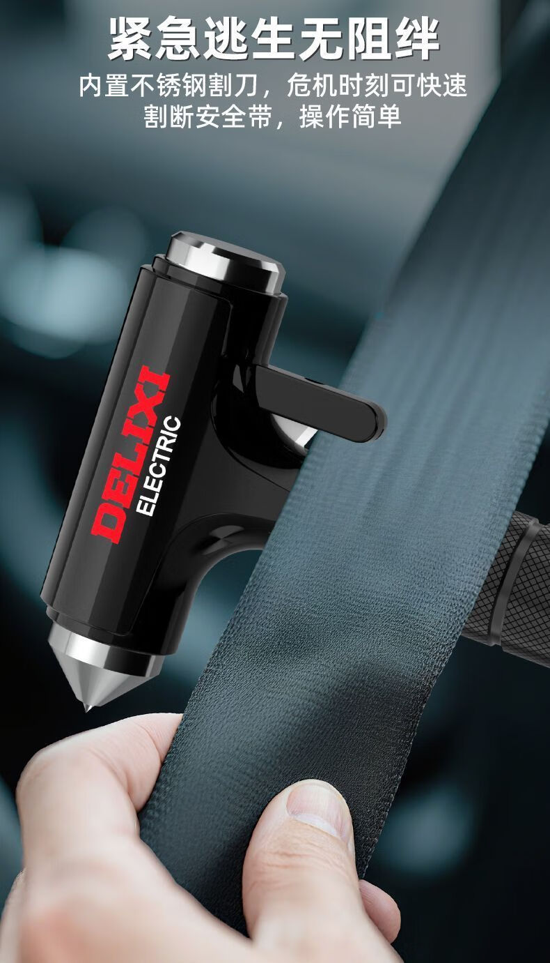 Delixi Electric Car Safety Hammer Broken Window Car Lifesaving Artifact Emergency Vehicle Mounted Multi-Function Escape Special Tungsten Steel Four-in-One Safety Hammer with Storage Gift Bag Delixi Electric