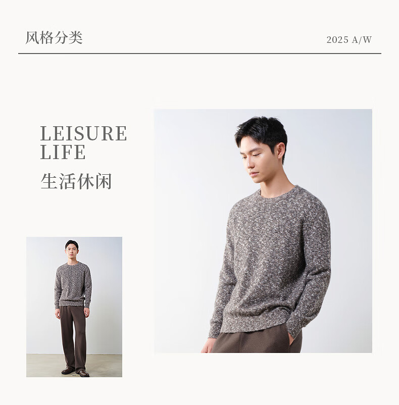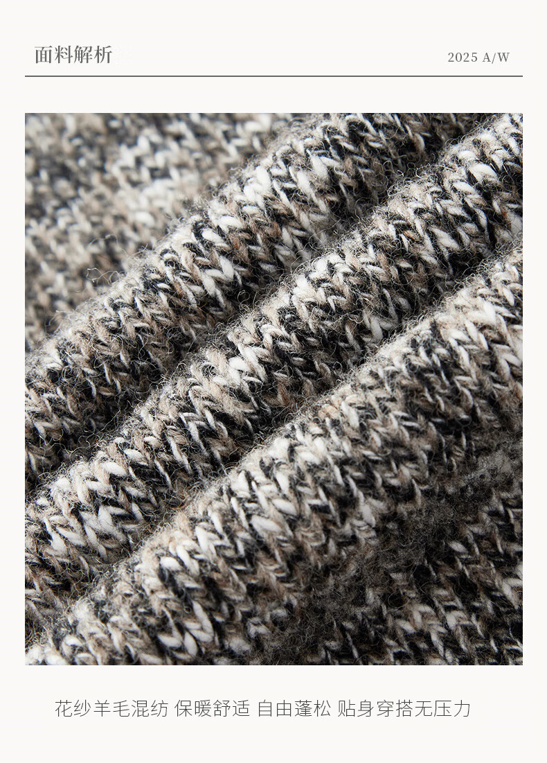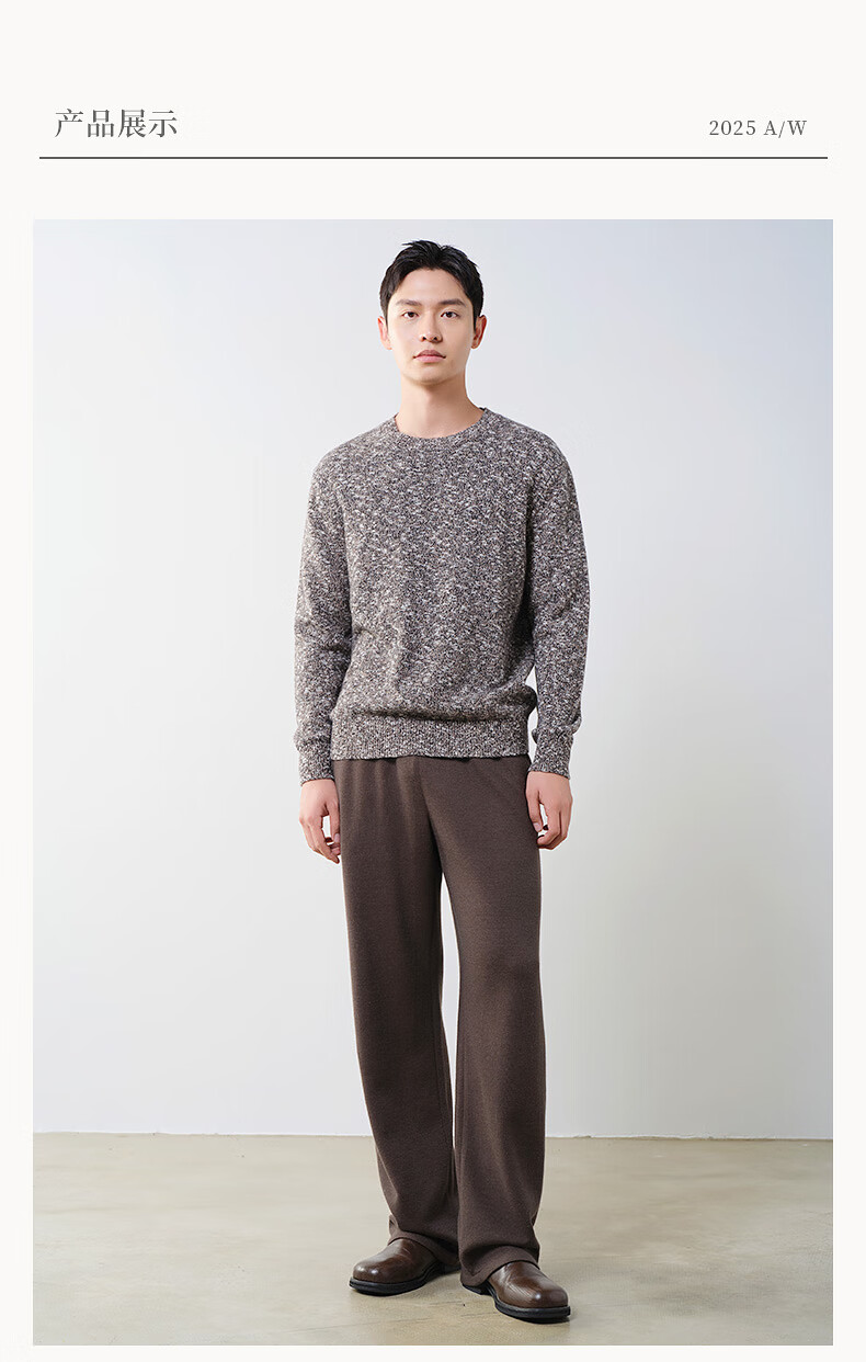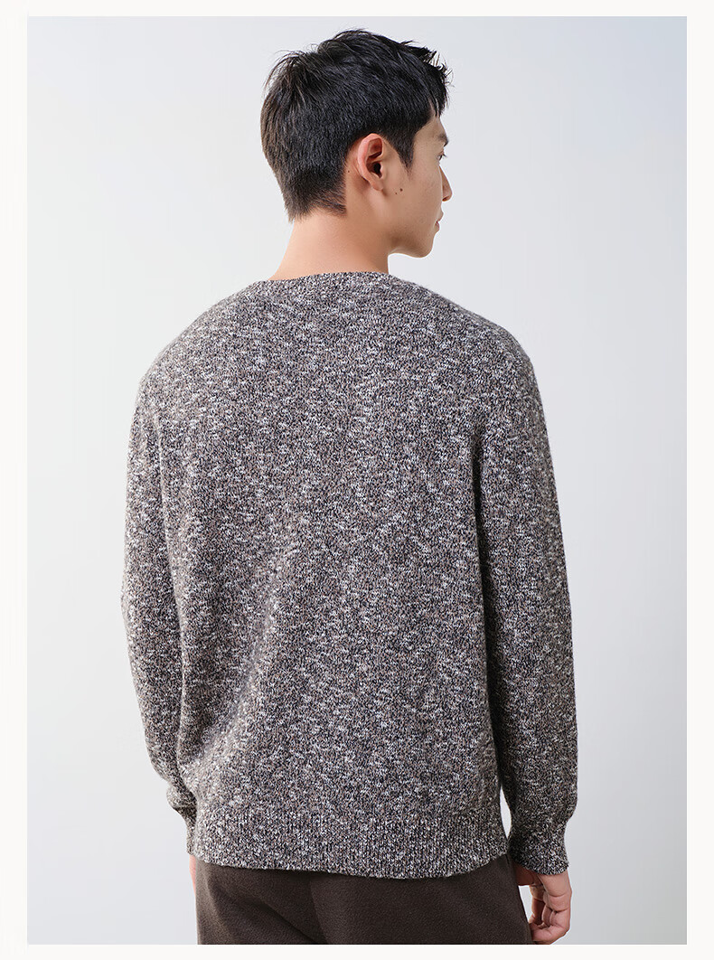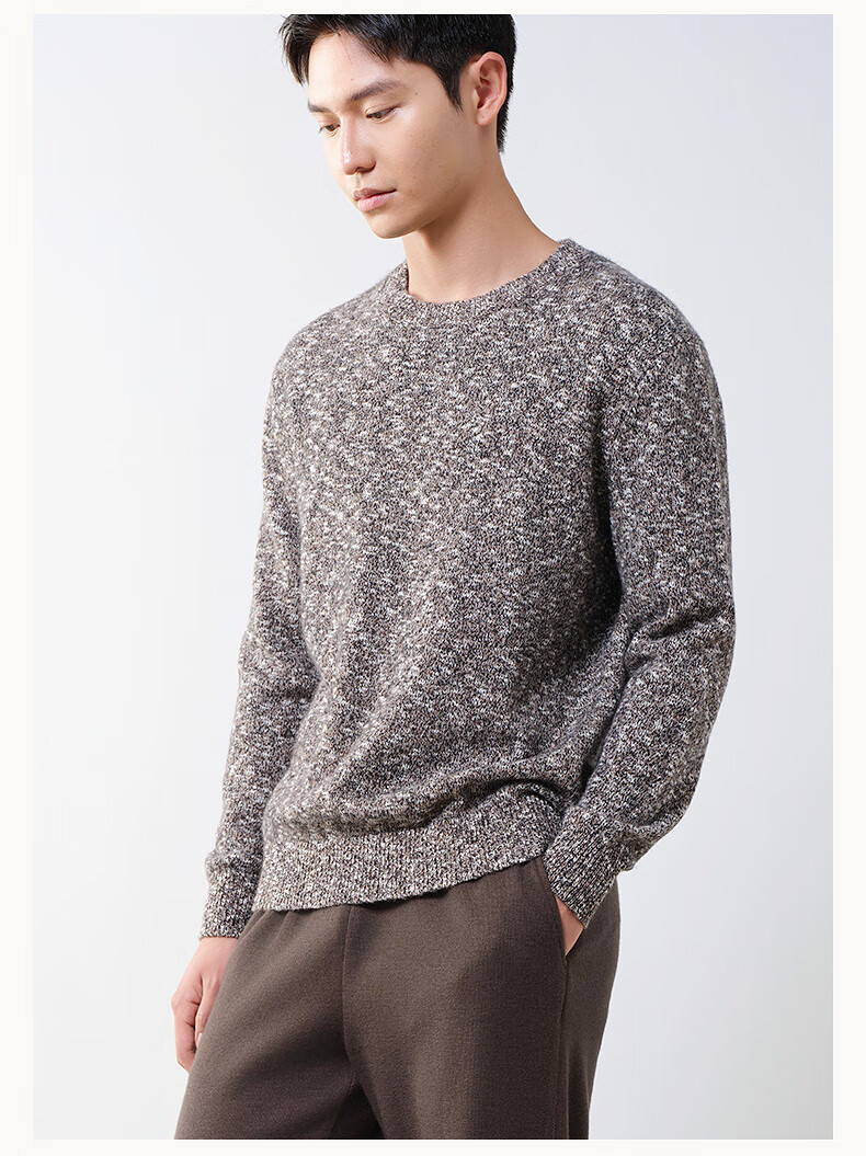 Brloote Shopping Mall Same Style Men's Sweater Contains Sheep Wool Warm, Fluffy, Fashionable Floral Feel Slightly Off-Shoulder Wool Sweater for Men Camel S (165/88A)