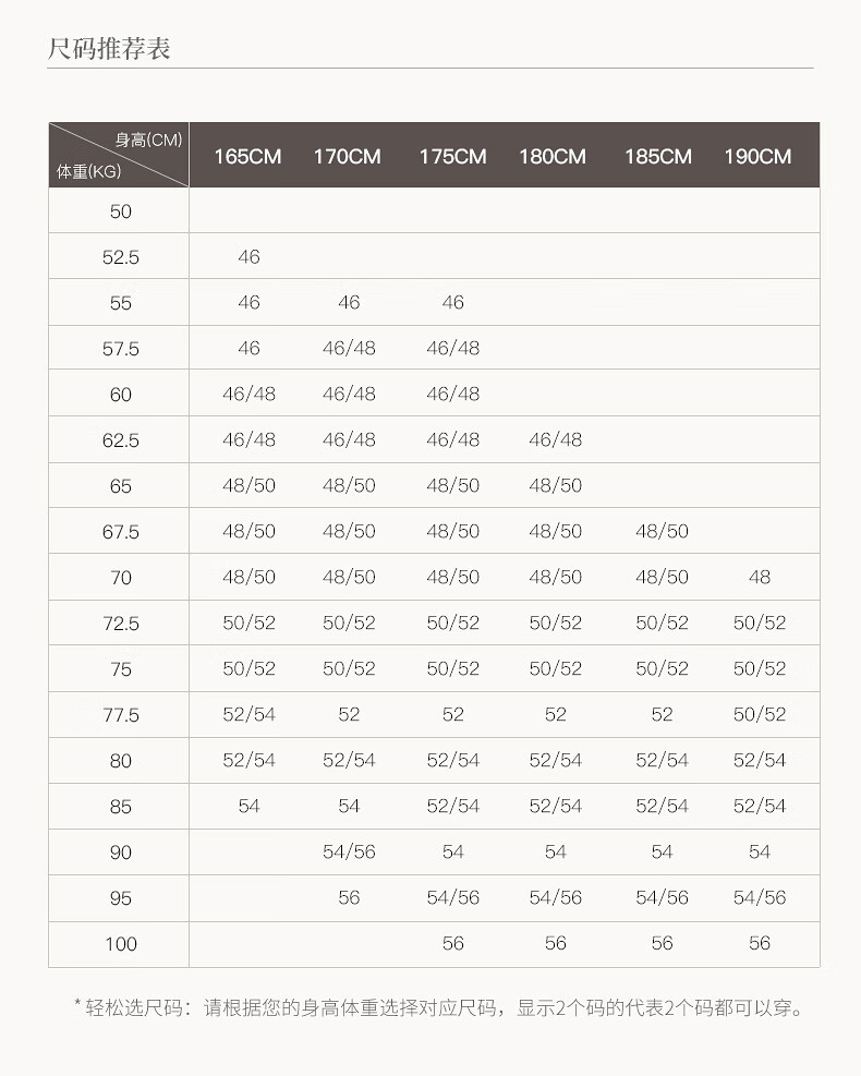 China (cm) 160-165/84-86 165-170 / 88-90 167-172 / 92-96 168-173 / 98-102 170-176 / 106-110