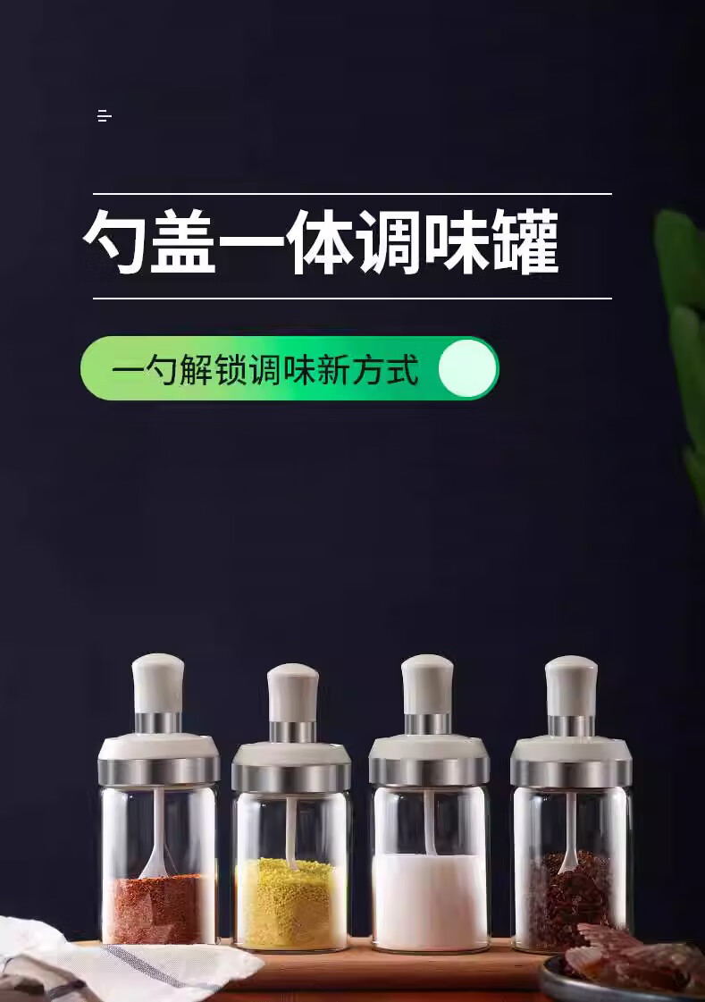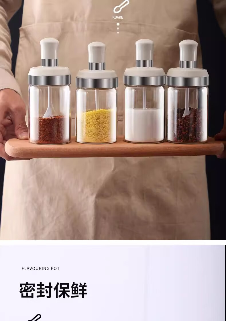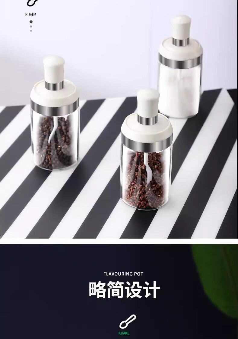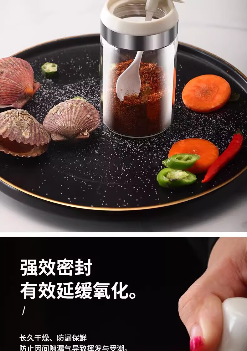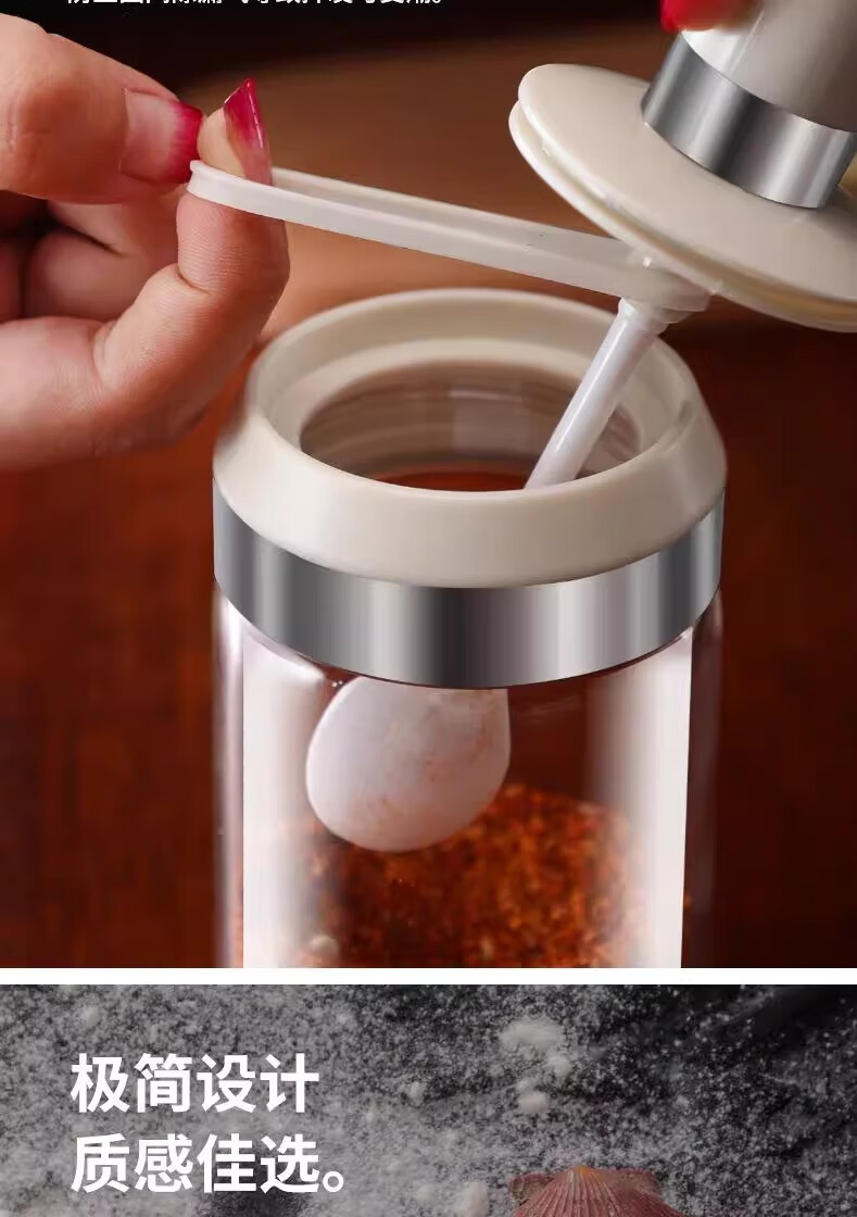 Four Seasons Muge (MICOE) food-grade condiment glass jar, stainless steel lid, sealed kitchen household small glass jar condiment jar, condiment jar, two pack