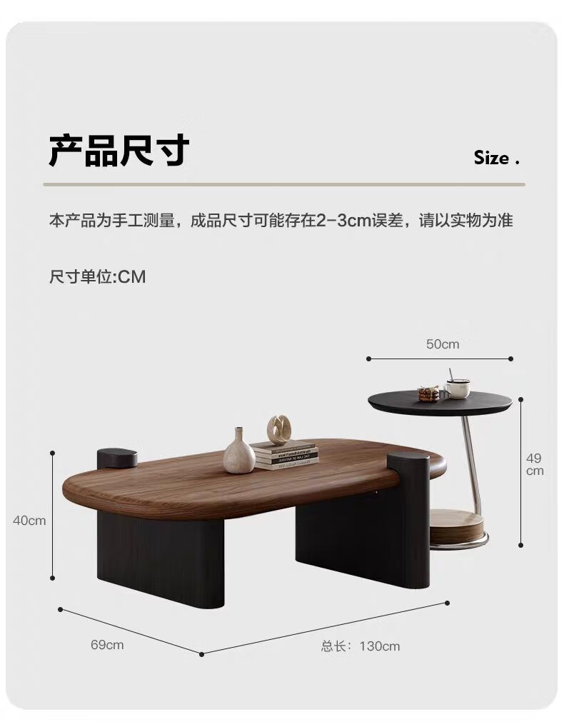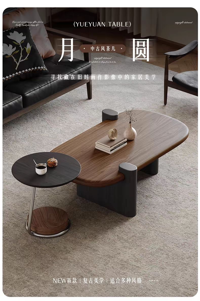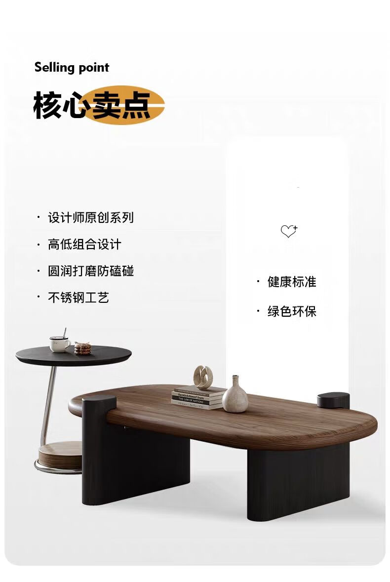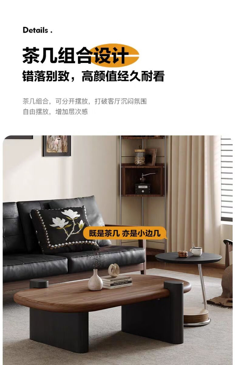 Qingziyou mid-century style minimalist coffee table living room home small apartment high-end 2026 new oval high-end tea table combination 130CM mid-century style coffee table + side table