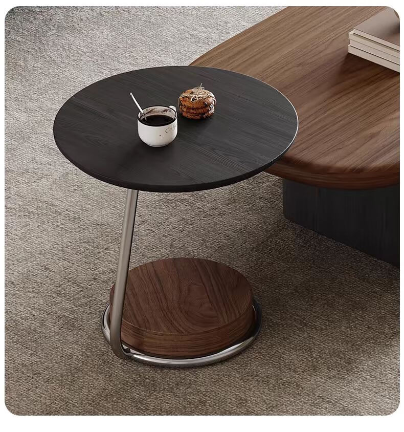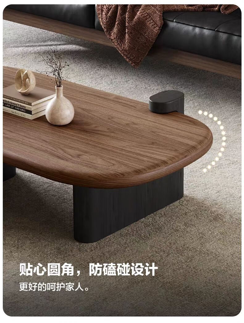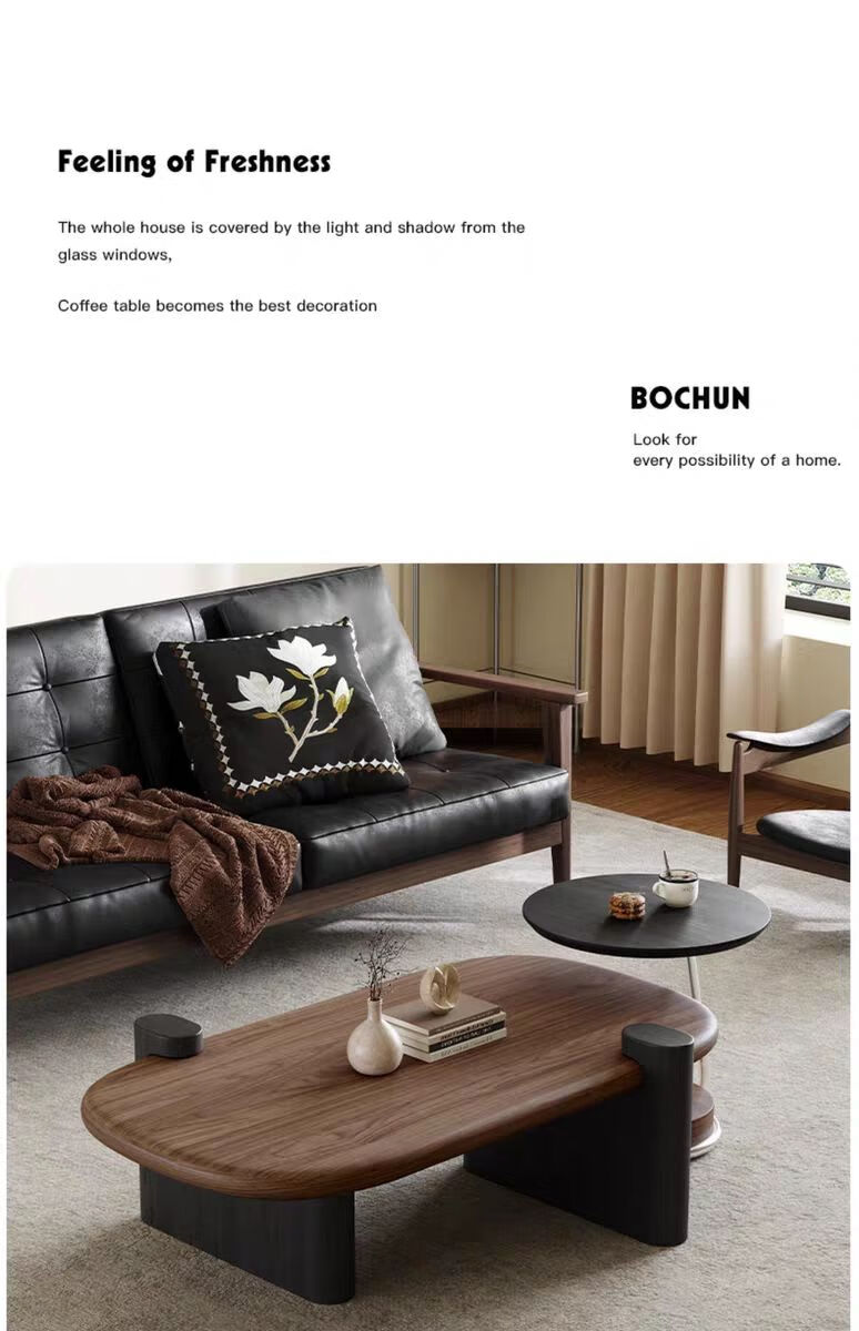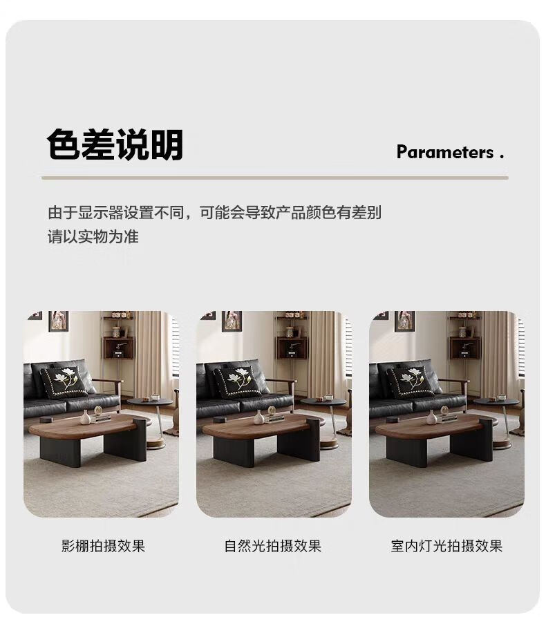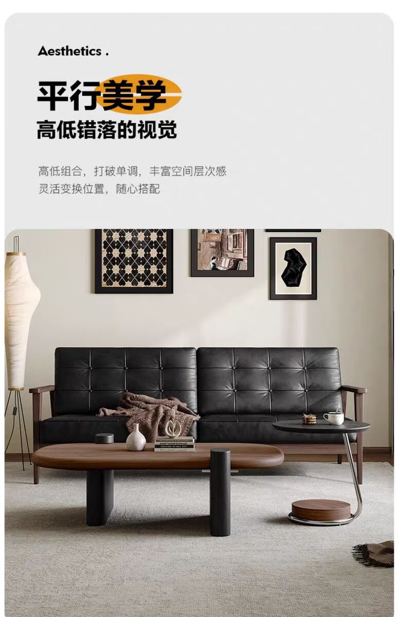 Qingziyou mid-century style minimalist coffee table living room home small apartment high-end 2026 new oval high-end tea table combination 130CM mid-century style coffee table + side table
