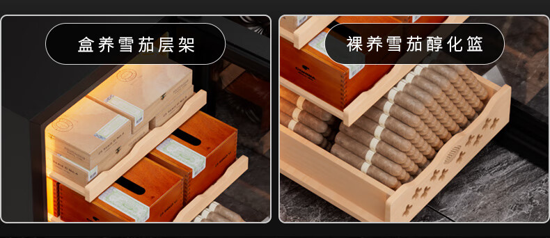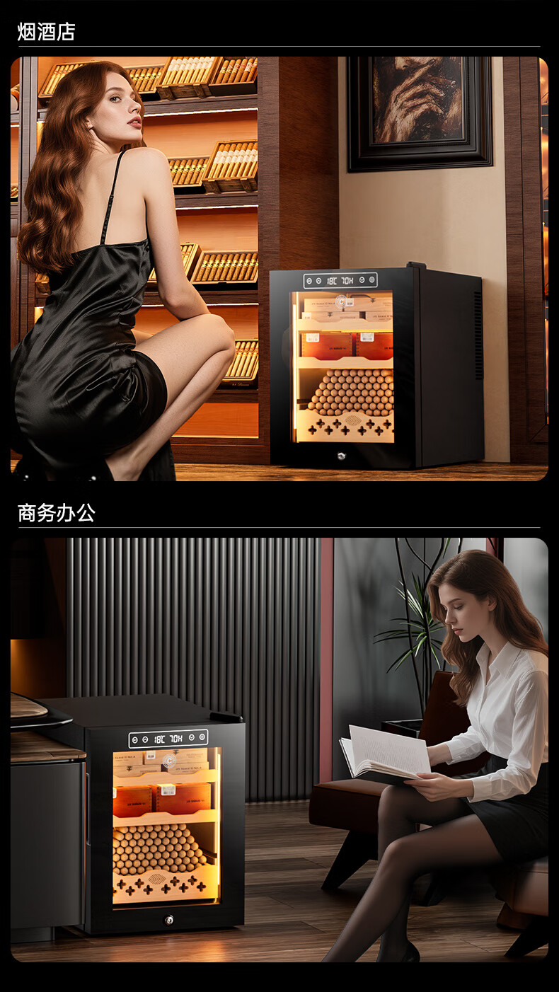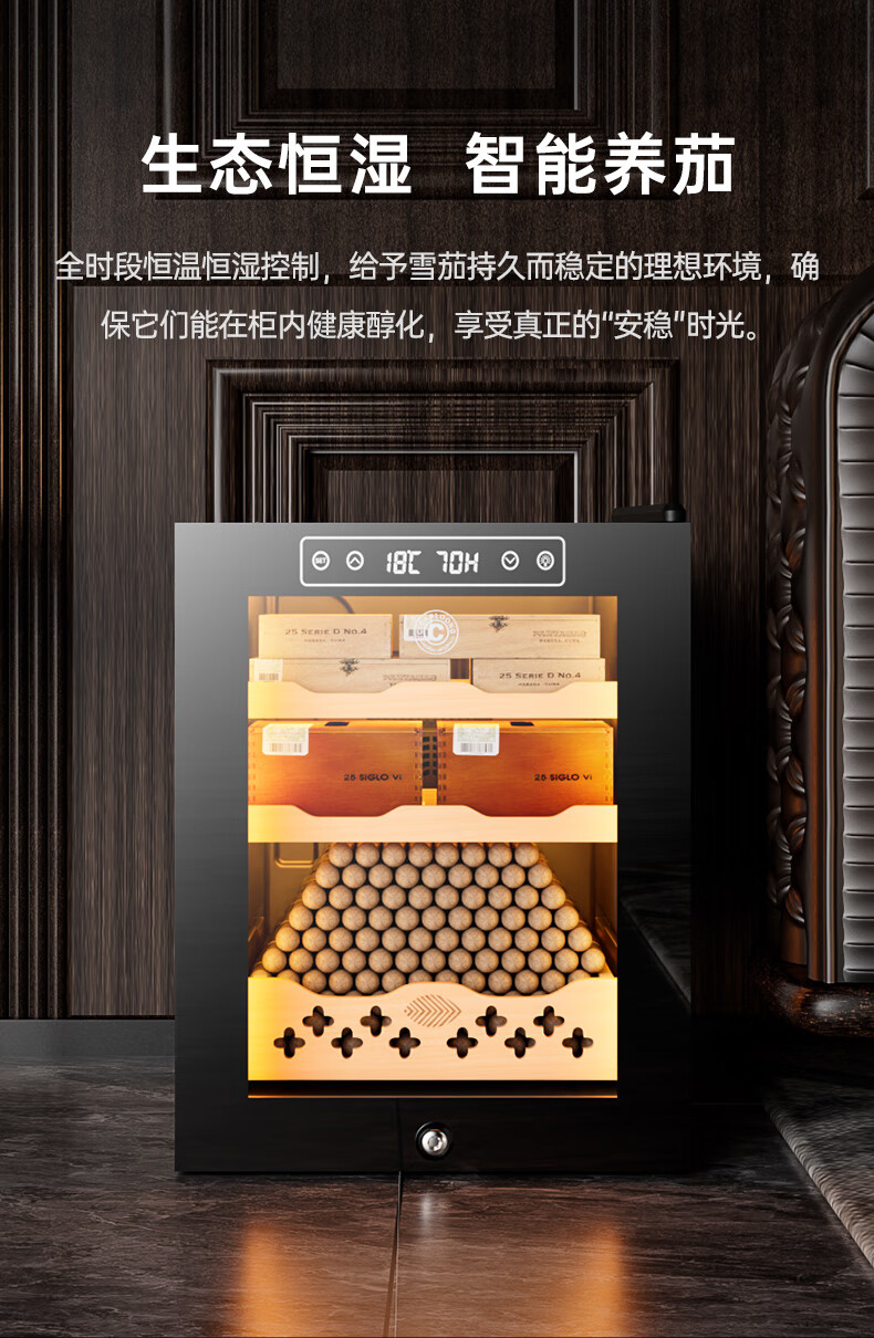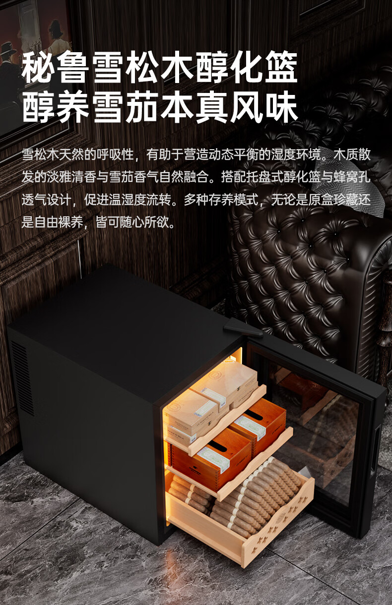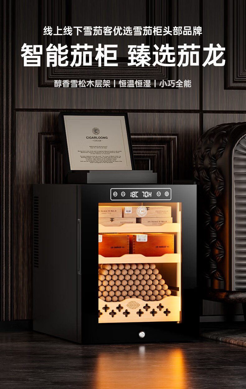 CIGARLOONG 32C Cigar Cabinet Constant Temperature and Humidity Semiconductor Air-cooled Cedar Wood Shelves Office Household Small Energy-Saving Silent Electronic Cabinet Cigar Cabinet Smoke Cabinet 46C Box Cooling Bar + Constant Temperature and Humidity + Cedar Wood Shelves + Side Light Strips