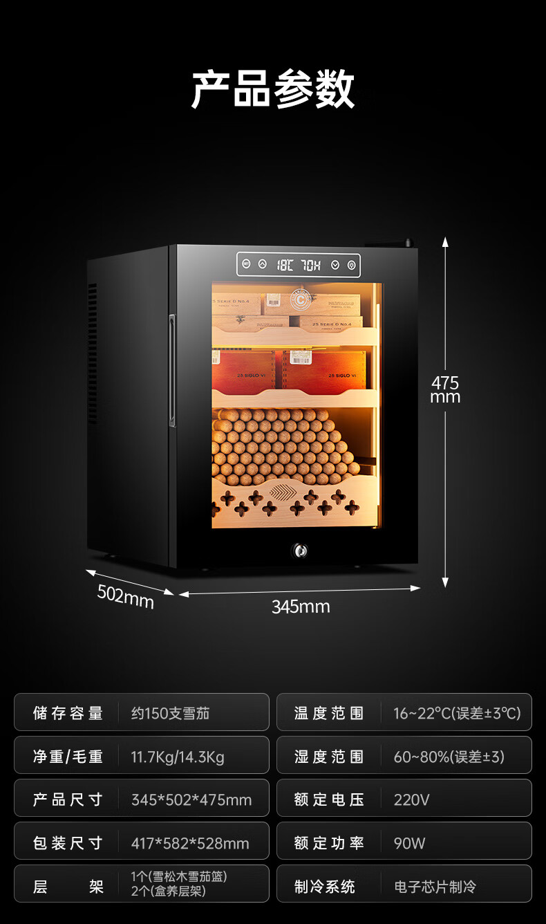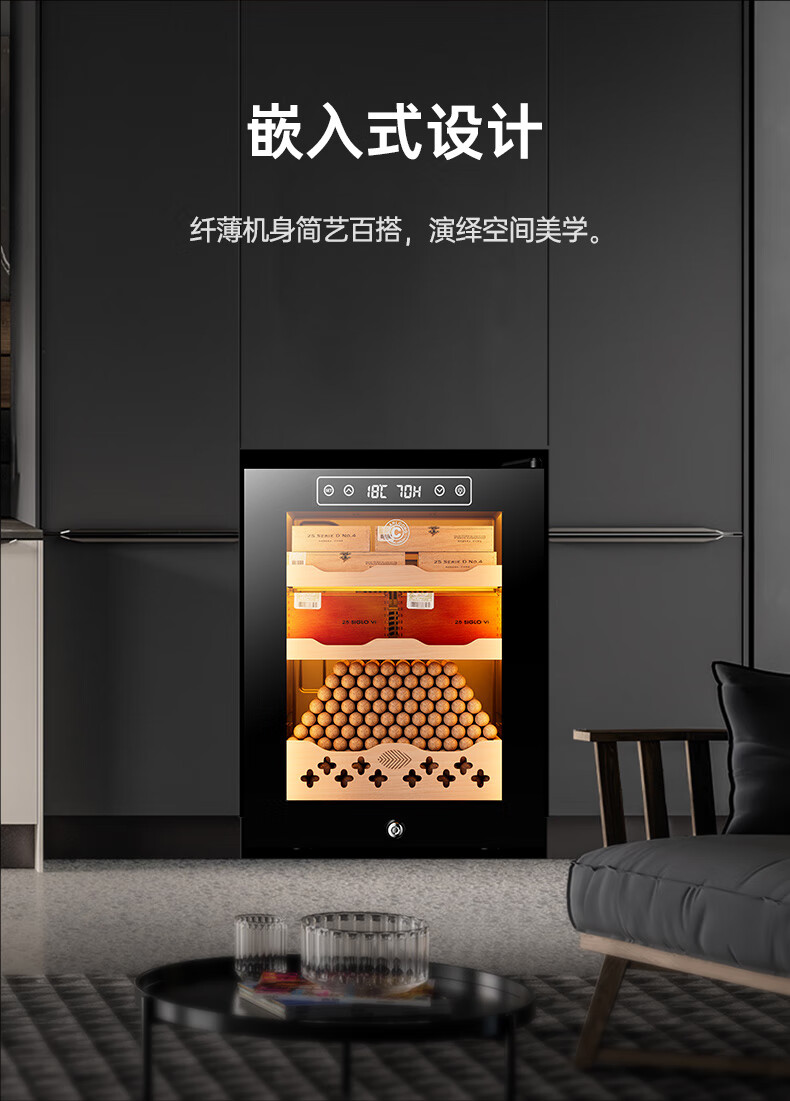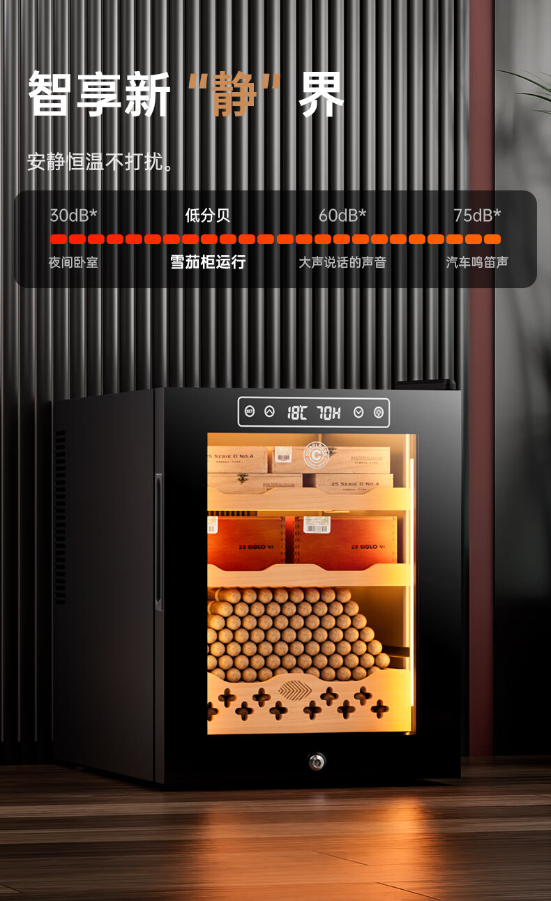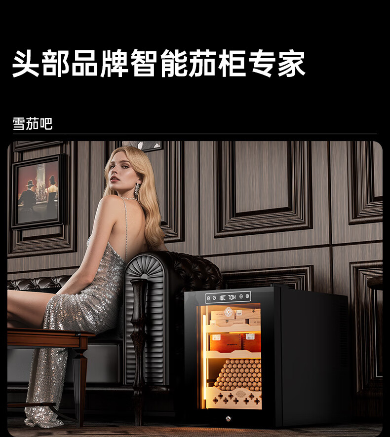 CIGARLOONG 32C Cigar Cabinet Constant Temperature and Humidity Semiconductor Air-cooled Cedar Wood Shelves Office Household Small Energy-Saving Silent Electronic Cabinet Cigar Cabinet Smoke Cabinet 46C Box Cooling Bar + Constant Temperature and Humidity + Cedar Wood Shelves + Side Light Strips