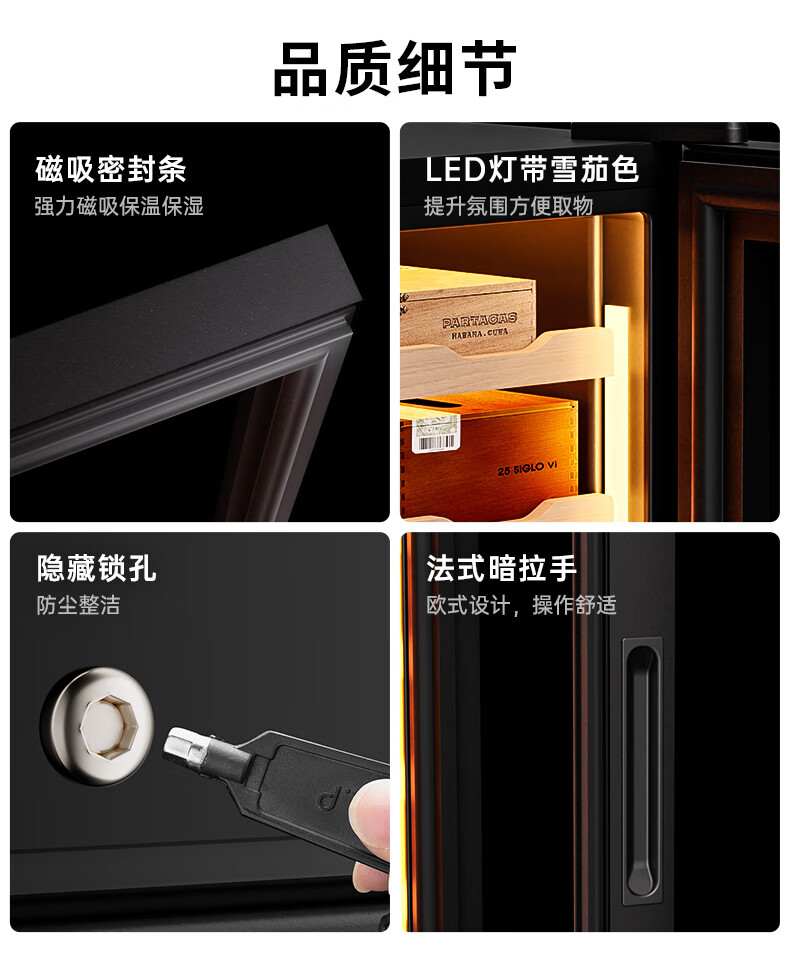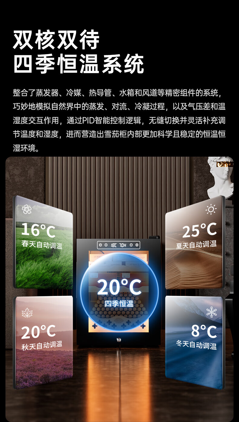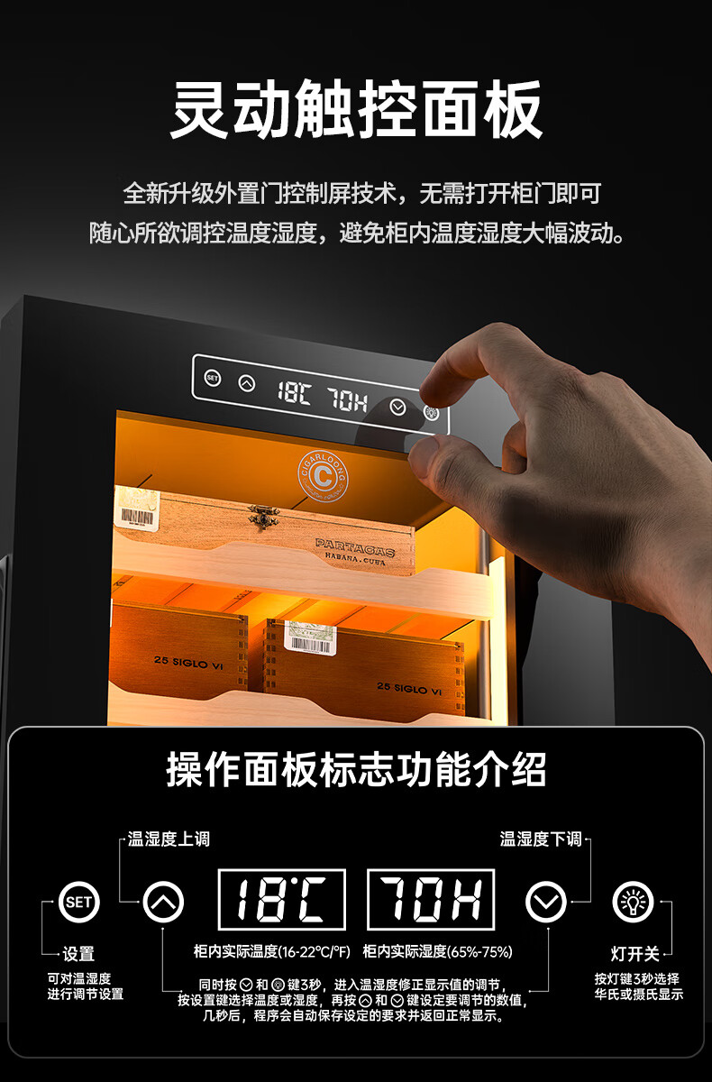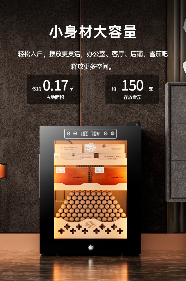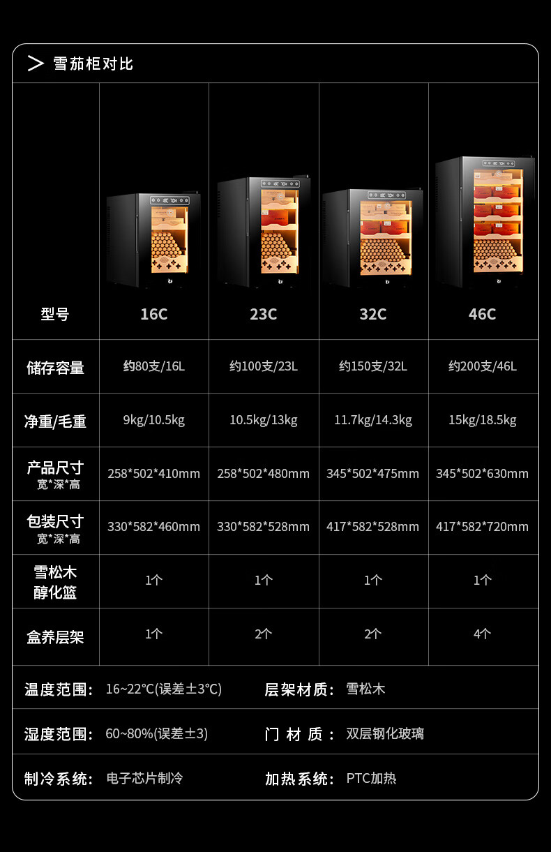 CIGARLOONG 32C Cigar Cabinet Constant Temperature and Humidity Semiconductor Air-cooled Cedar Wood Shelves Office Household Small Energy-Saving Silent Electronic Cabinet Cigar Cabinet Smoke Cabinet 46C Box Cooling Bar + Constant Temperature and Humidity + Cedar Wood Shelves + Side Light Strips