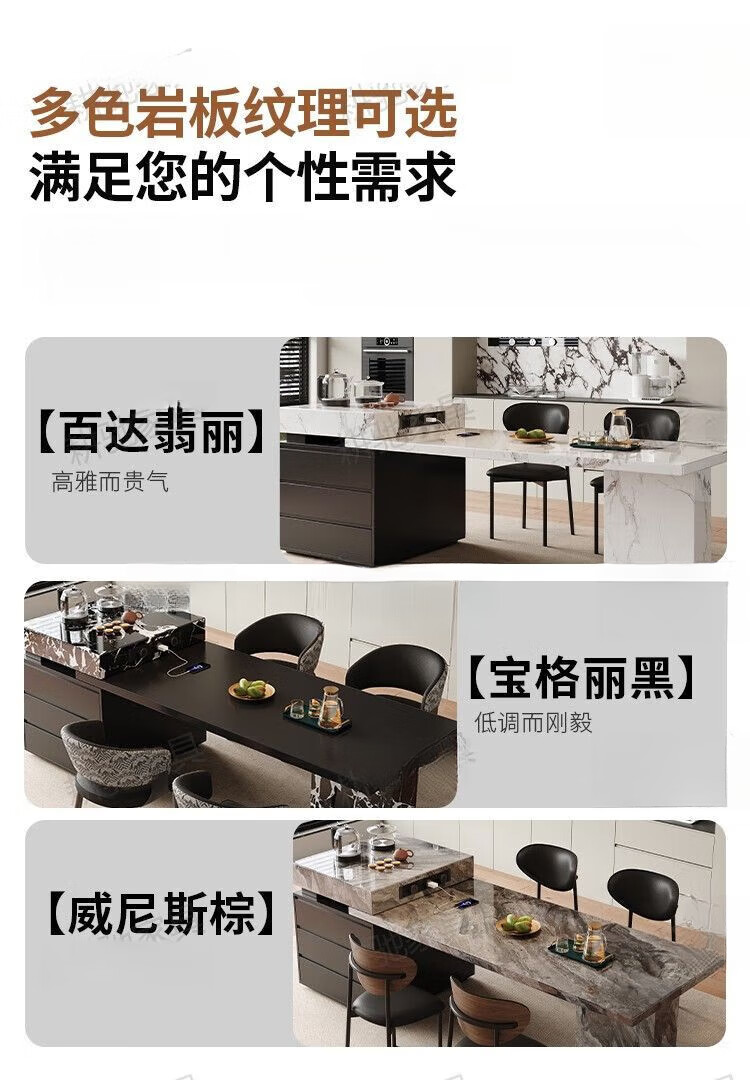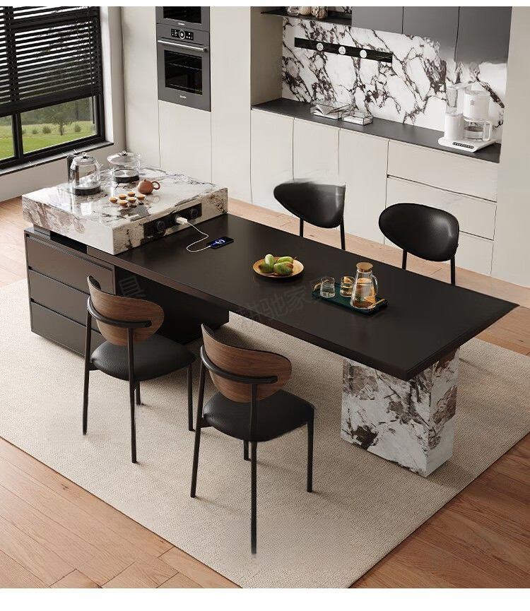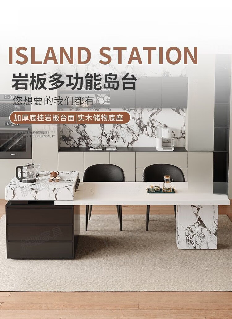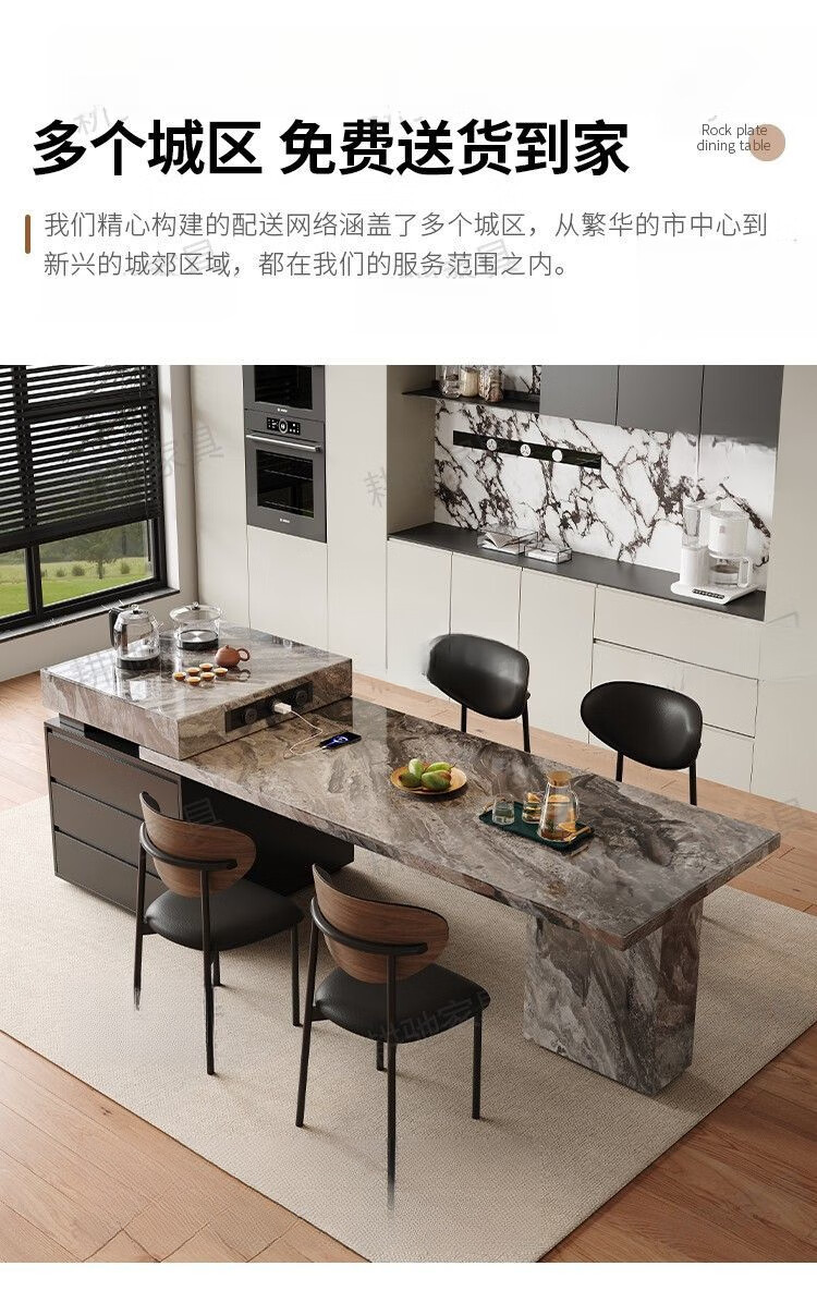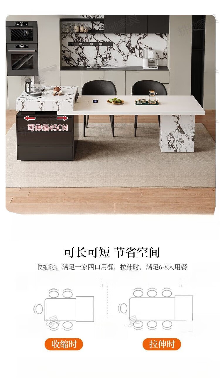 Pupan's new high-end Italian-style island dining table with wood grain integrated household retractable slate modern multi-functional kitchen guide table. Total length 1.95-2.4 meters 80*80 dominant rail socket basic slate flat island table